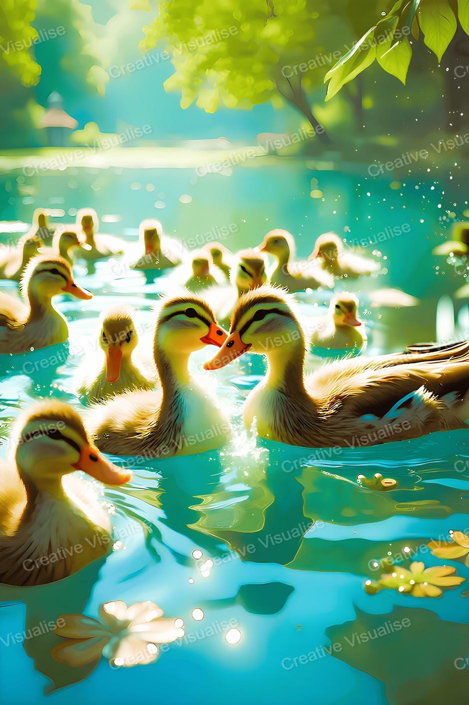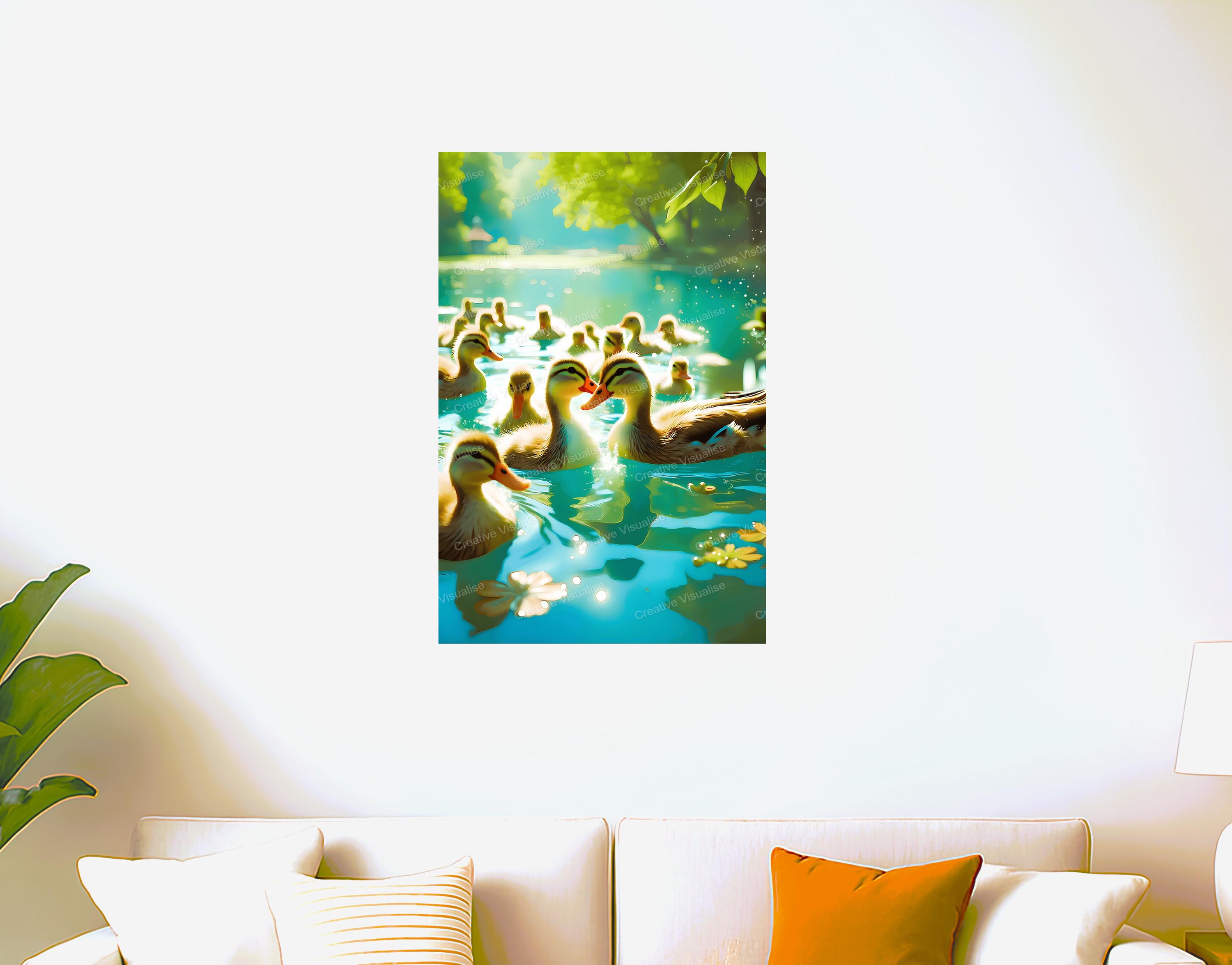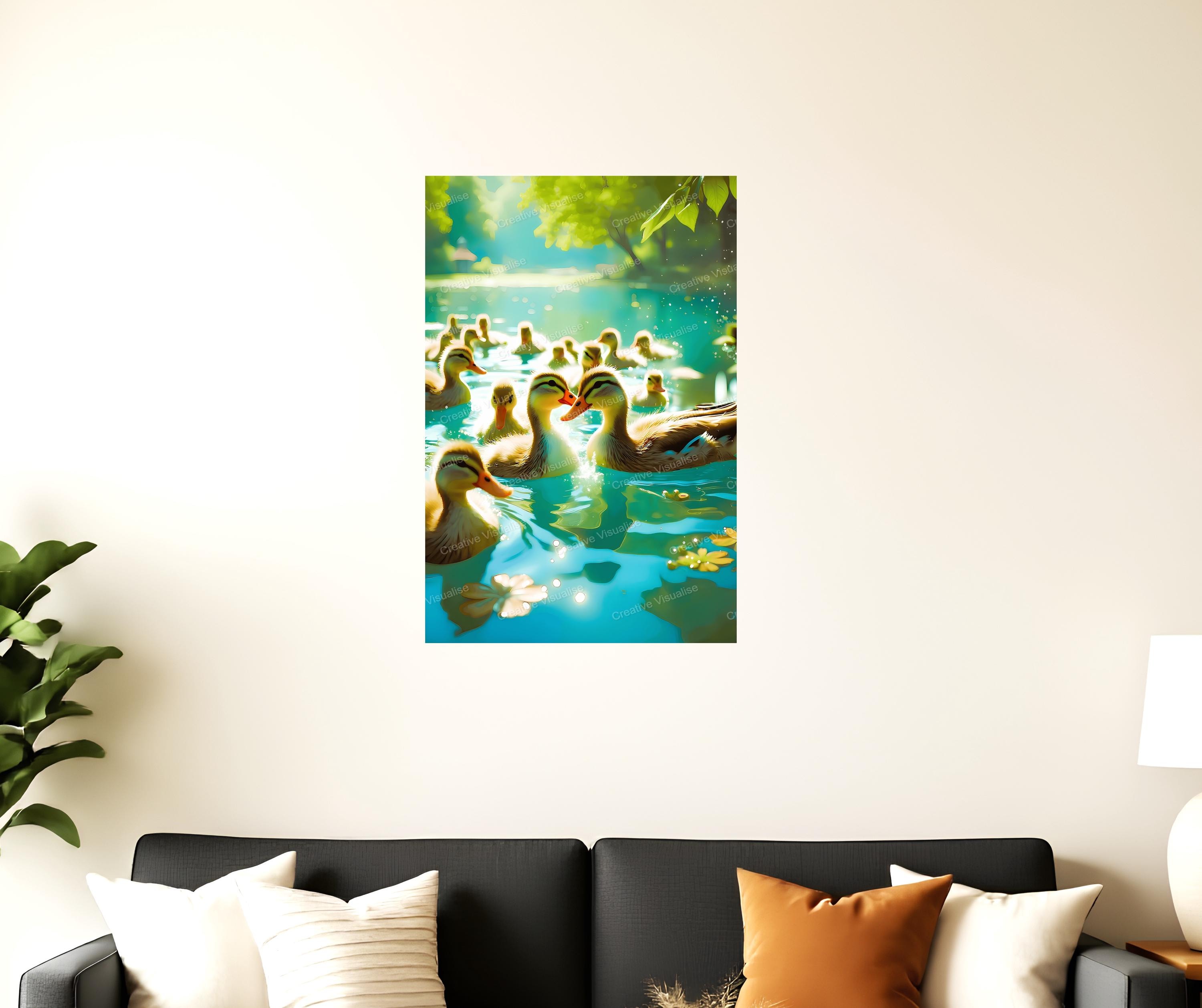 A digital photo of a duck in a lake that can be easily downloaded and printed. It is large enough for professional posters, canvas prints, and wall decor. The sizes of received digital files: 1. PNG file, 4700×7000 pixels 2. PDF file, 18×24 inches 3. PDF file, 16×20 inches (8×10 inches) 4. PDF file, A2 (16.5×23.4 inches) 5. PDF file, 16×16 inches "All files are high-resolution 300 DPI professional quality, ensuring crisp and clear prints at every size."