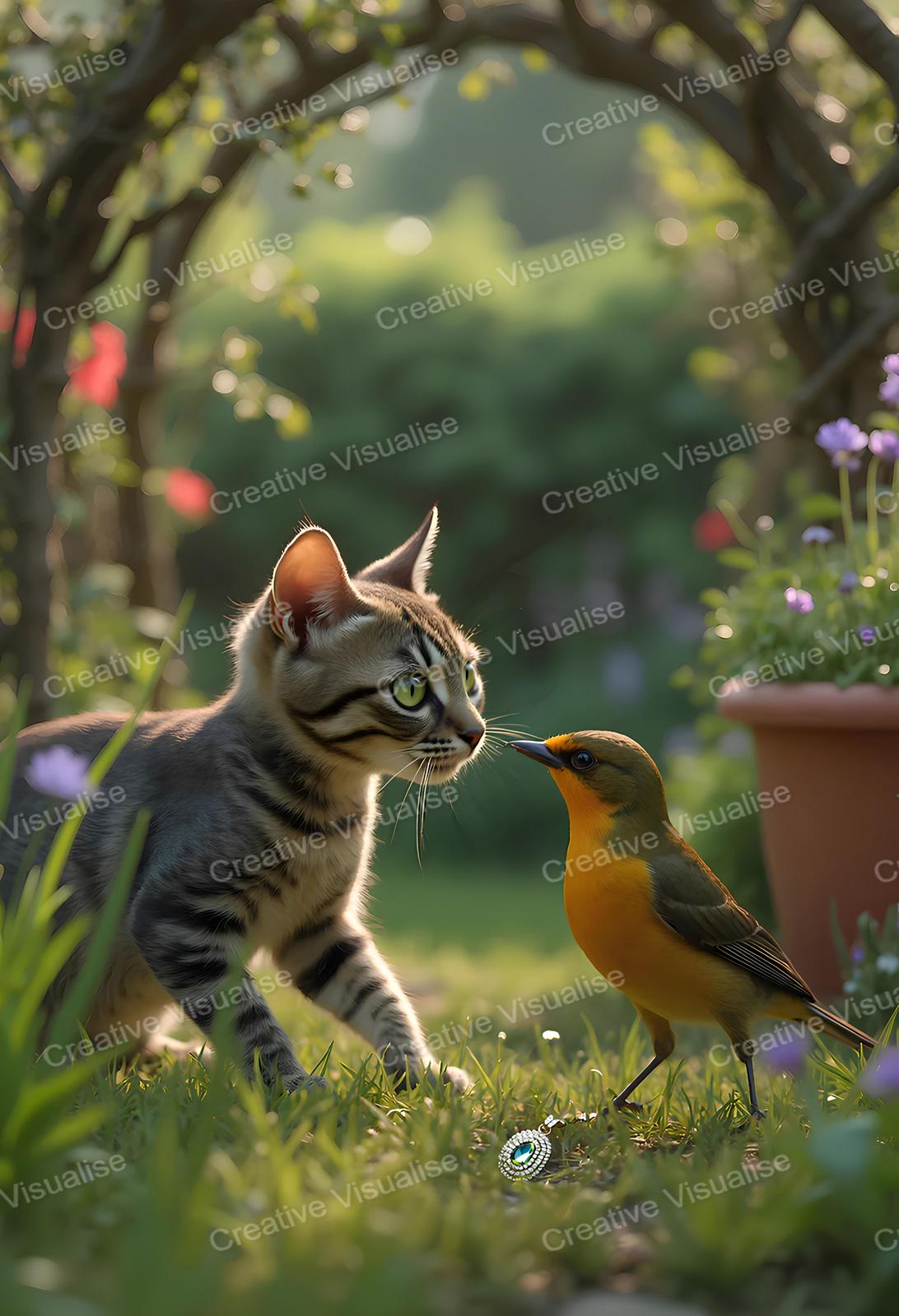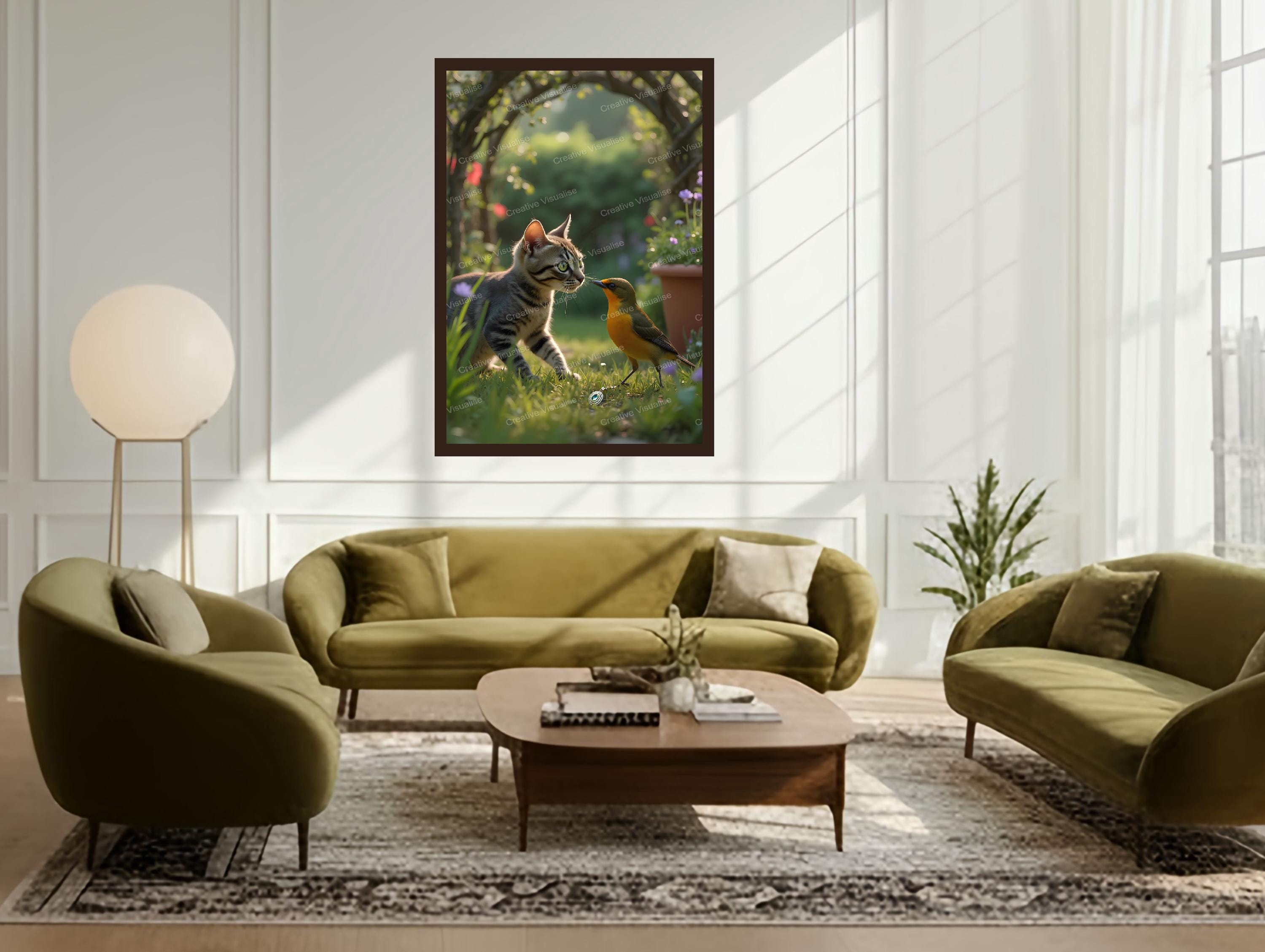 A digital photo of a brown kitten ears with cute bird artwork that can be easily downloaded and printed (not a physical item for delivery). The details of the digitally received image are about 11000 × 16000 pixels, 300 DPI, JPEG and PDF formats, AI artwork, very high resolution without a watermark, and large enough for professional posters, canvas prints, and wall decor. Please send me a message if you need another file format after the original files' delivery. This price is for personal use! For commercial use, please send me a message.
