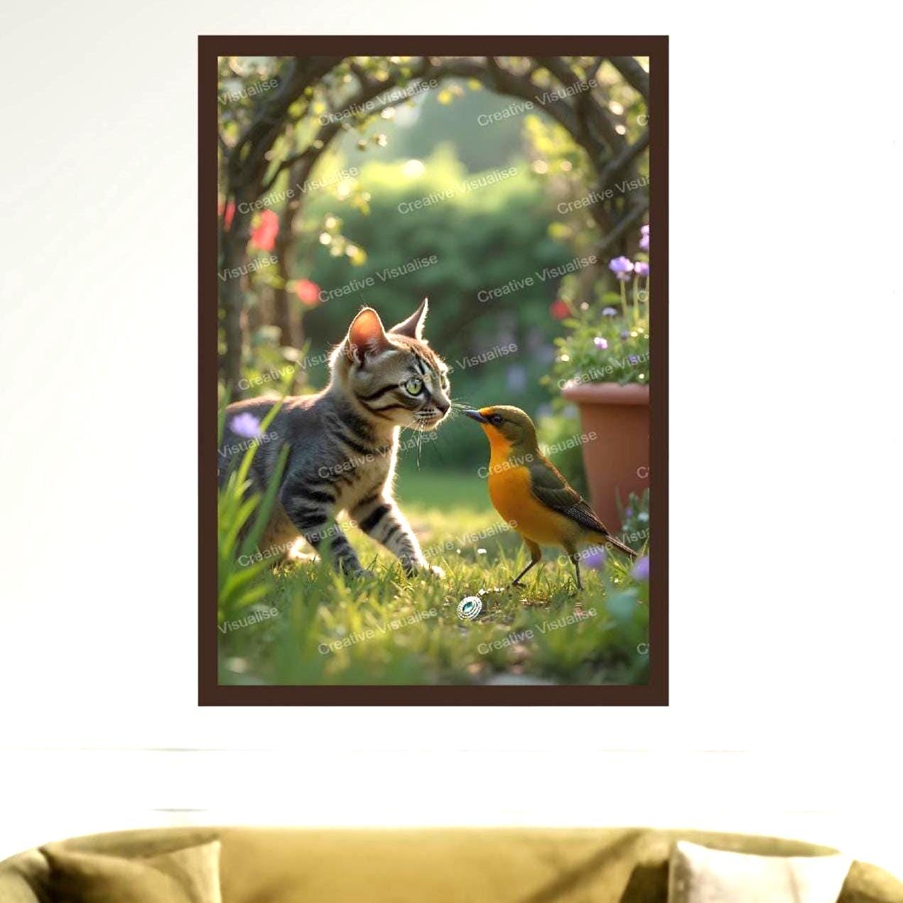 A digital photo of a brown kitten ears with cute bird artwork that can be easily downloaded and printed (not a physical item for delivery). The details of the digitally received image are about 11000 × 16000 pixels, 300 DPI, JPEG and PDF formats, AI artwork, very high resolution without a watermark, and large enough for professional posters, canvas prints, and wall decor. Please send me a message if you need another file format after the original files' delivery. This price is for personal use! For commercial use, please send me a message.