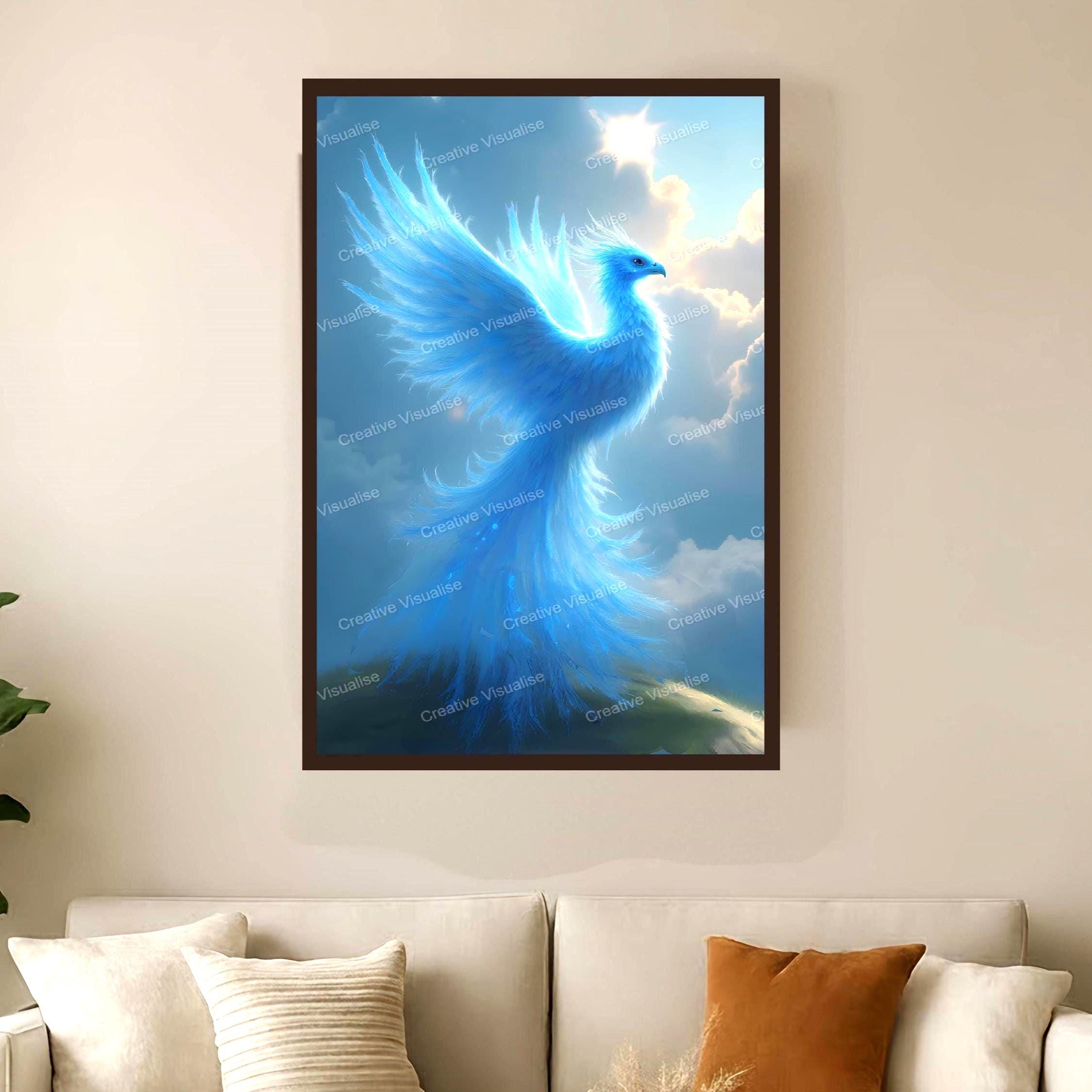 A phoenix wallpaper digital photo that can be easily downloaded and printed (not a physical item for delivery). The details of the digitally received image are about 11000 × 16000 pixels, 300 DPI, JPEG and PDF formats, AI artwork, very high resolution without a watermark, and large enough for professional posters, canvas prints, and wall decor. Please send me a message if you need another file format after the original files' delivery. This price is for personal use! For commercial use, please send me a message.