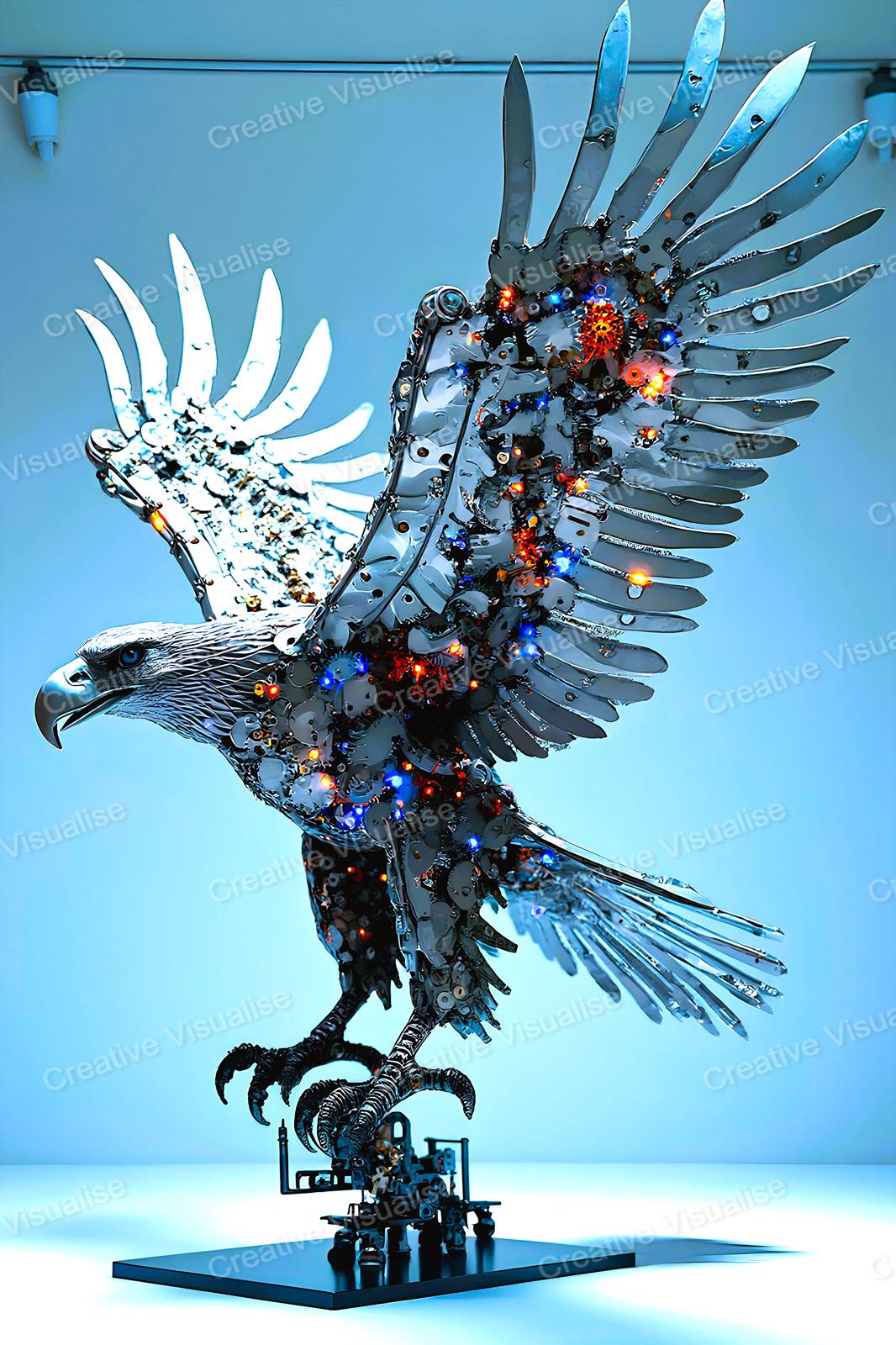 Set of 5 robot birds digital photos that can be easily downloaded and printed (not a physical item for delivery). The details of the digitally received images are about 11000 × 16000 pixels, 300 DPI, JPEG and PDF formats, AI artwork, very high resolution without a watermark, and large enough for professional posters, canvas prints, and wall decor. Please send me a message if you need another file format after the original files' delivery. This price is for personal use! For commercial use, please send me a message.
