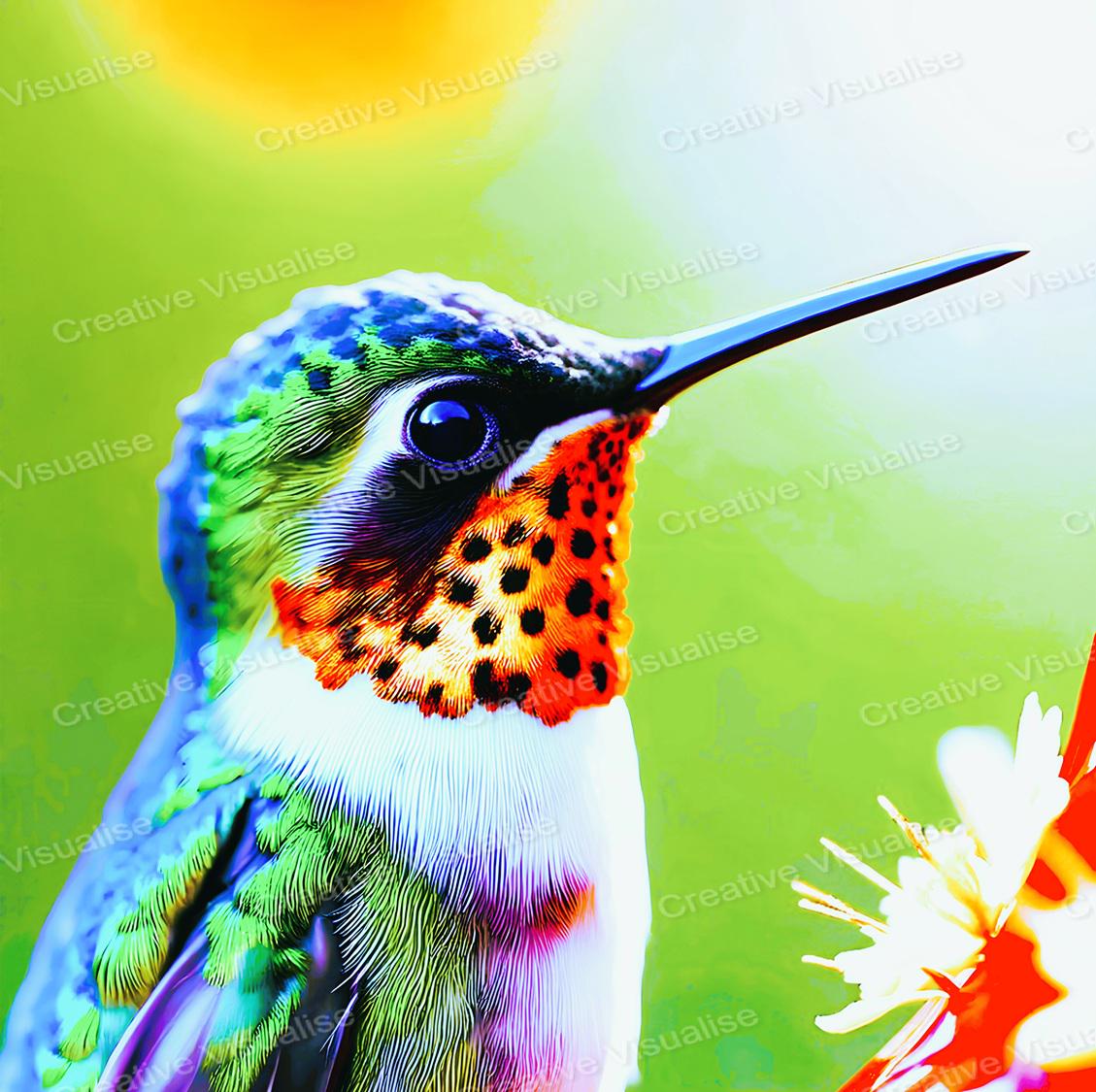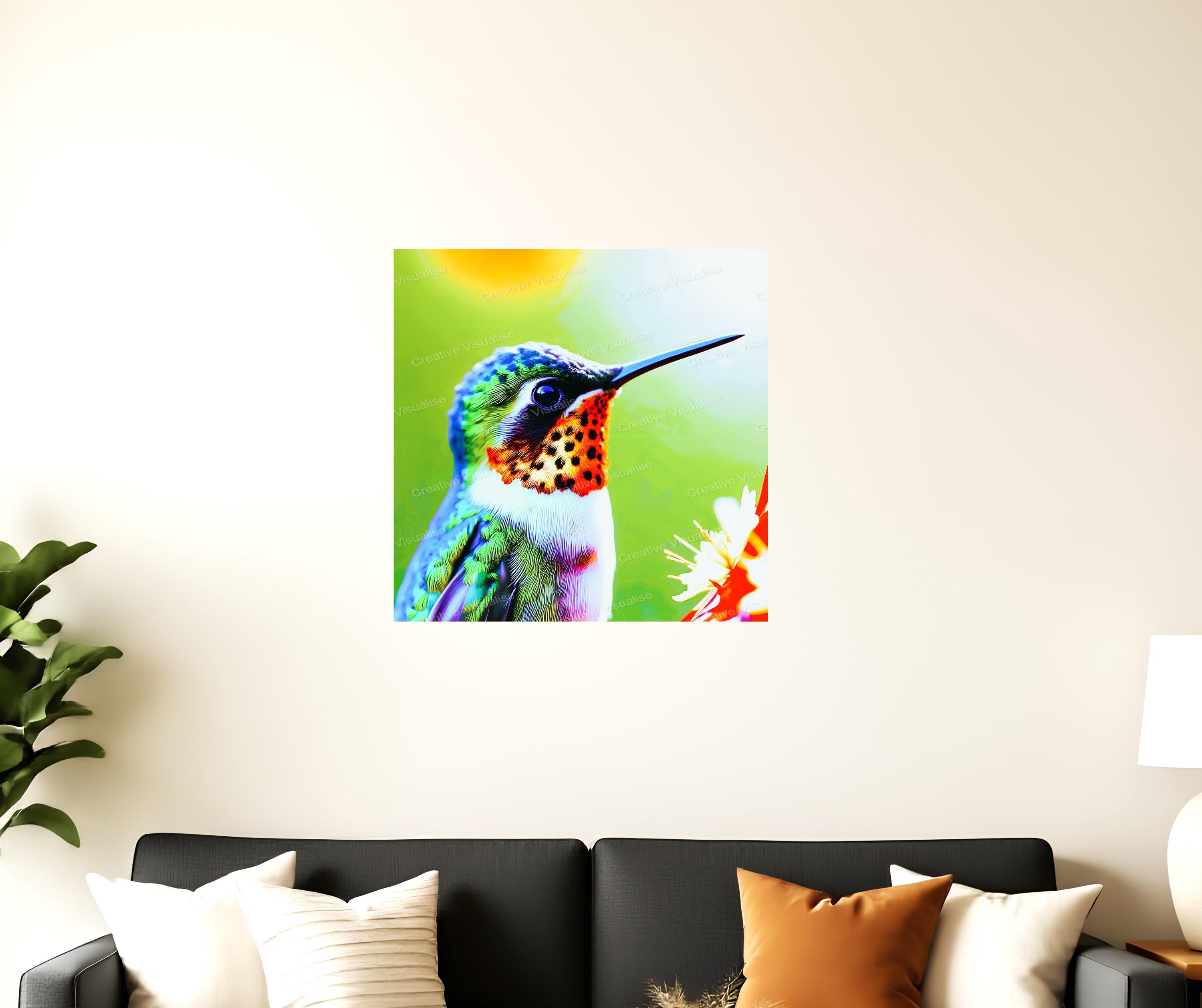 A digital photo of a hummingbird wallpaper that can be easily downloaded and printed. It is large enough for professional posters, canvas prints, and wall decor. The sizes of received digital files: 1. PNG file, 5700×5700 pixels, 300 dpi 2. PDF file, 19×19 inches in 300 dpi