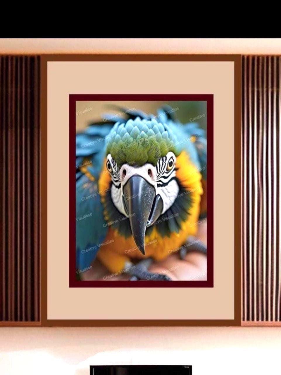 A macaw print and parrot wallpaper digital photo that can be easily downloaded and printed (not a physical item for delivery). The details of the digitally received image are about 11000 × 16000 pixels, 300 DPI, JPEG and PDF formats, AI artwork, very high resolution without a watermark, and large enough for professional posters, canvas prints, and wall decor. Please send me a message if you need another file format after the original files' delivery. This price is for personal use! For commercial use, please send me a message.