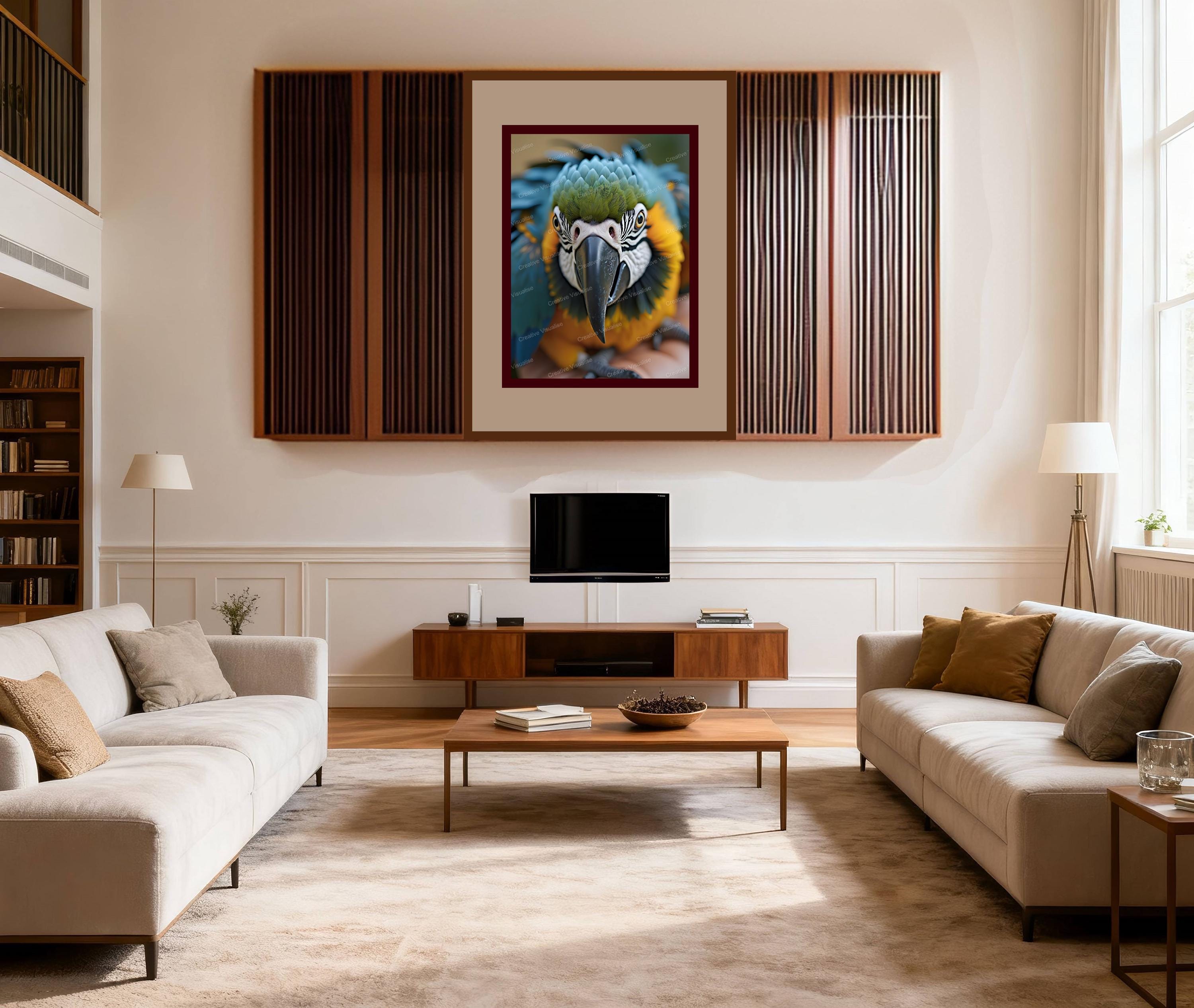 A macaw print and parrot wallpaper digital photo that can be easily downloaded and printed (not a physical item for delivery). The details of the digitally received image are about 11000 × 16000 pixels, 300 DPI, JPEG and PDF formats, AI artwork, very high resolution without a watermark, and large enough for professional posters, canvas prints, and wall decor. Please send me a message if you need another file format after the original files' delivery. This price is for personal use! For commercial use, please send me a message.