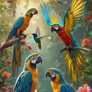 A hummingbird artwork and peacock wallpaper digital photo that can be easily downloaded and printed (not physical items for delivery). The details of the digitally received image are about 11000 × 16000 pixels, 300 DPI, JPEG and PDF formats, AI artwork, very high resolution without a watermark, and large enough for professional posters, canvas prints, and wall decor. Please send me a message if you need another file format after the original files' delivery. This price is for personal use! For commercial use, please send me a message.