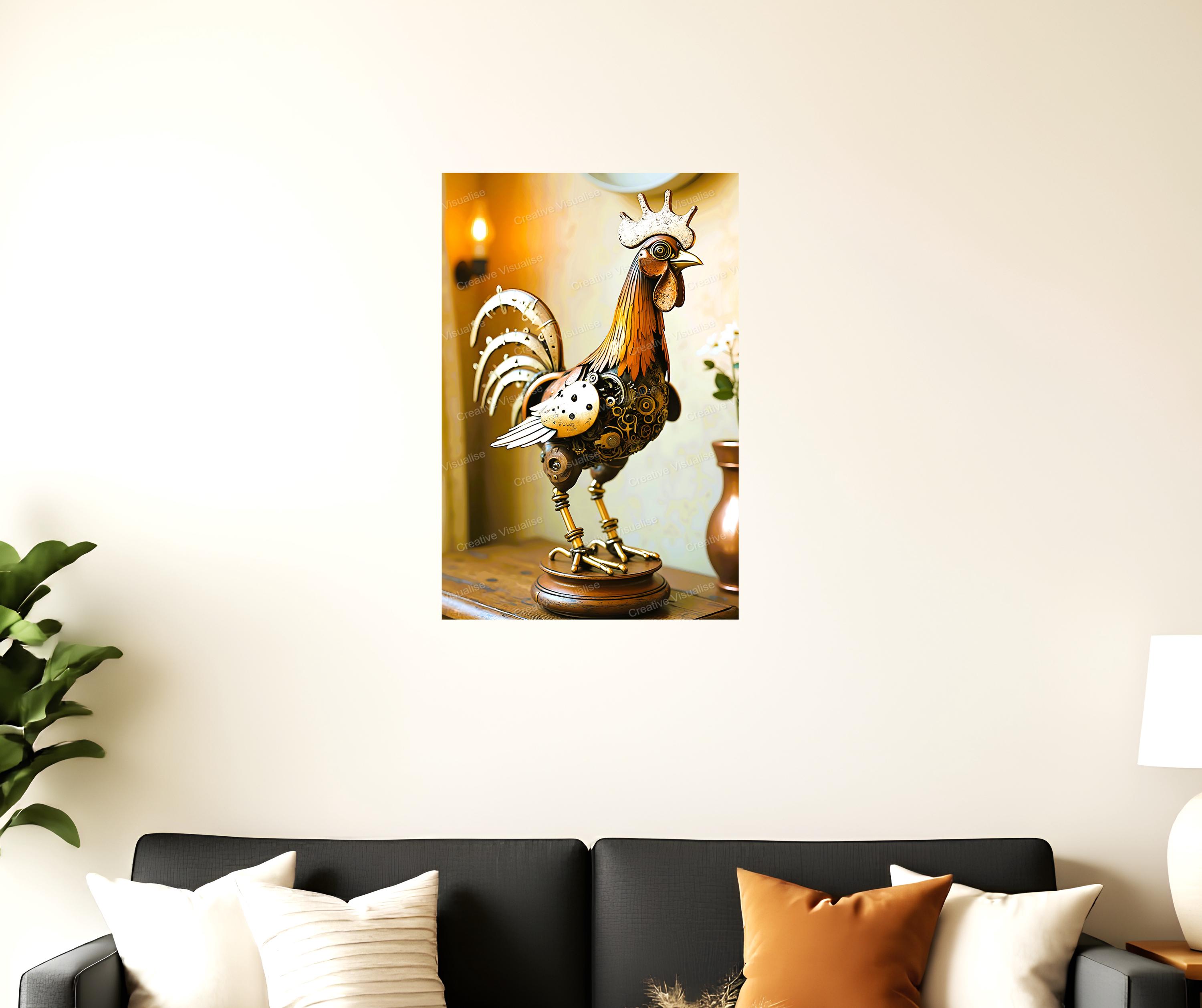 A robotic rooster digital photo that can be easily downloaded and printed. It is large enough for professional posters, canvas prints, and wall décor. The sizes of received digital files: 1. JPG file, 6000×9000 pixels, 300 dpi 2. PDF file, 18×24 inches 3. PDF file, 16×20 inches (8×10 inches) 4. PDF file, A2 (16.5×23.4 inches) "All files are high-resolution 300 DPI professional quality, ensuring crisp and clear prints at every size."