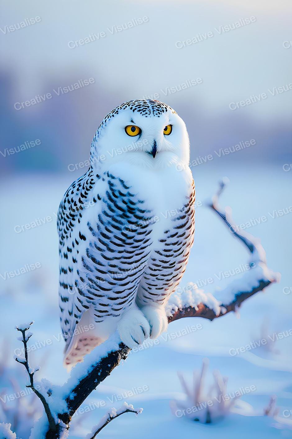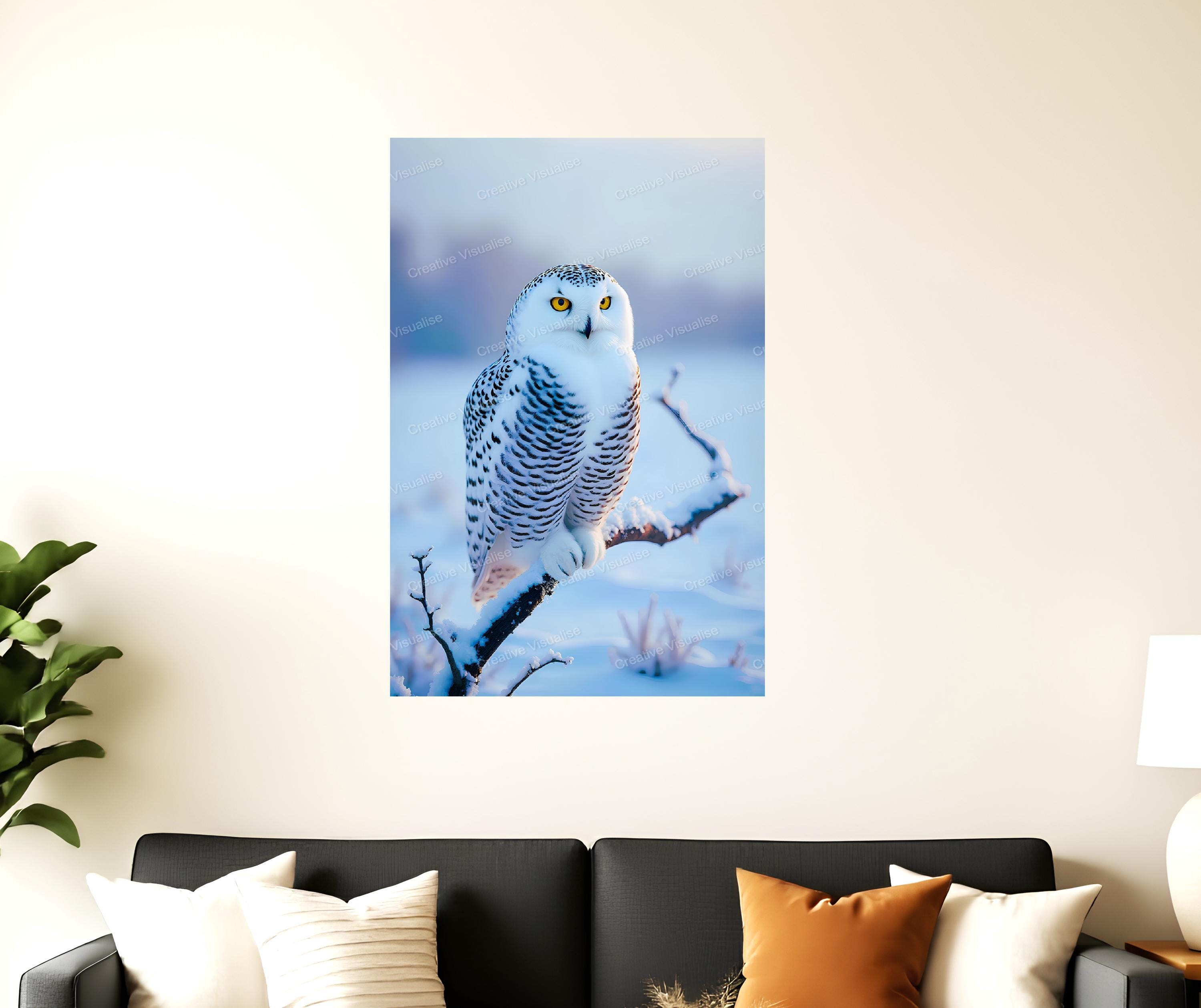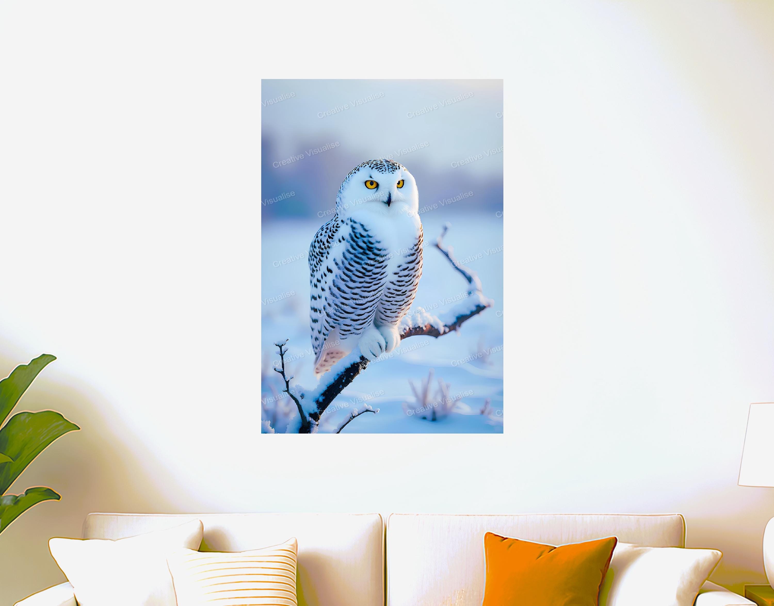 A snowy owl wallpaper digital photo that can be easily downloaded and printed (not a physical item for delivery). The details of the digitally received image are about 4700×7000 pixels, 300 DPI, PNG and PDF formats, AI artwork, very high resolution without a watermark, and large enough for professional posters, canvas prints, and wall decor. Please send me a message if you need another file format after the original files' delivery. This price is for personal use! For commercial use, please send me a message.
