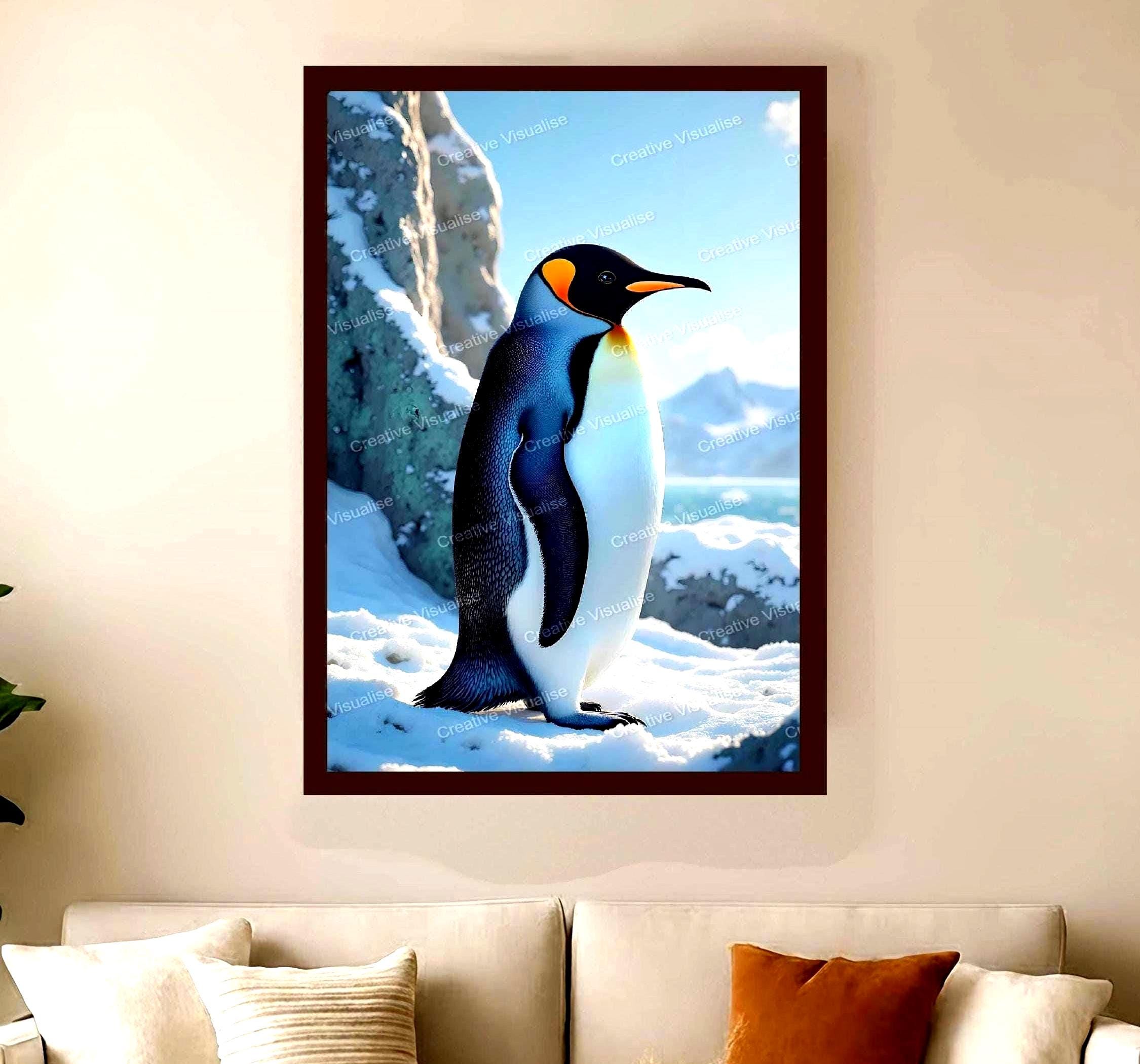 A penguin wallpaper digital photo that can be easily downloaded and printed (not a physical item for delivery). The details of the digitally received image are about 11000 × 16000 pixels, 300 DPI, JPEG and PDF formats, AI artwork, very high resolution without a watermark, and large enough for professional posters, canvas prints, and wall decor. Please send me a message if you need another file format after the original files' delivery. This price is for personal use! For commercial use, please send me a message.