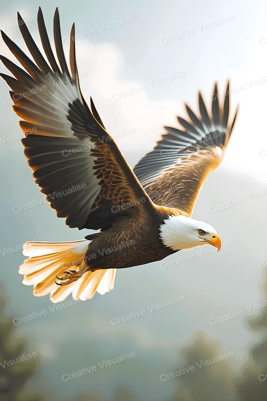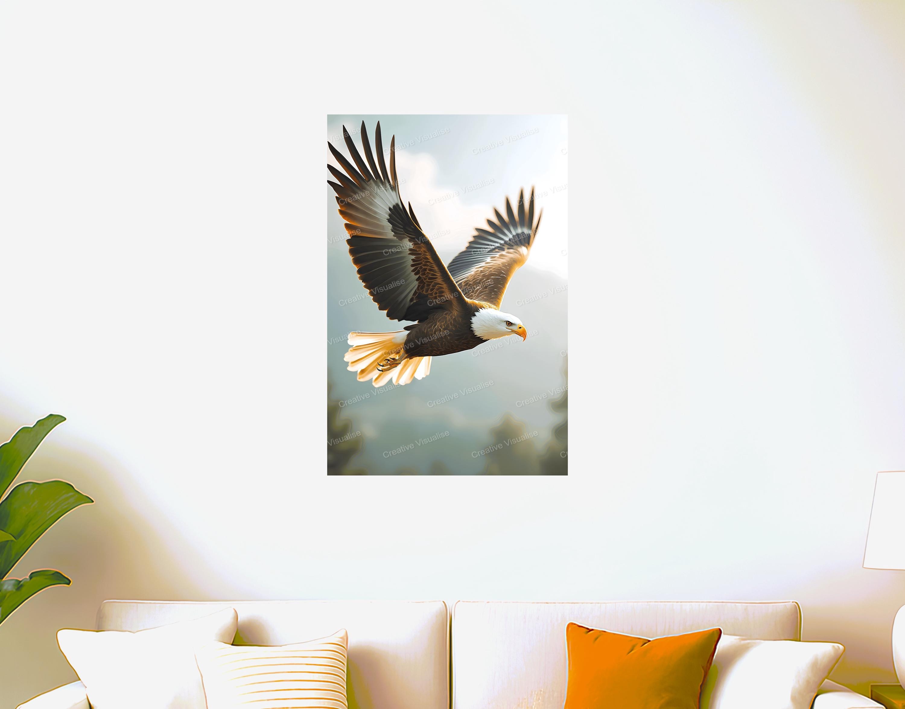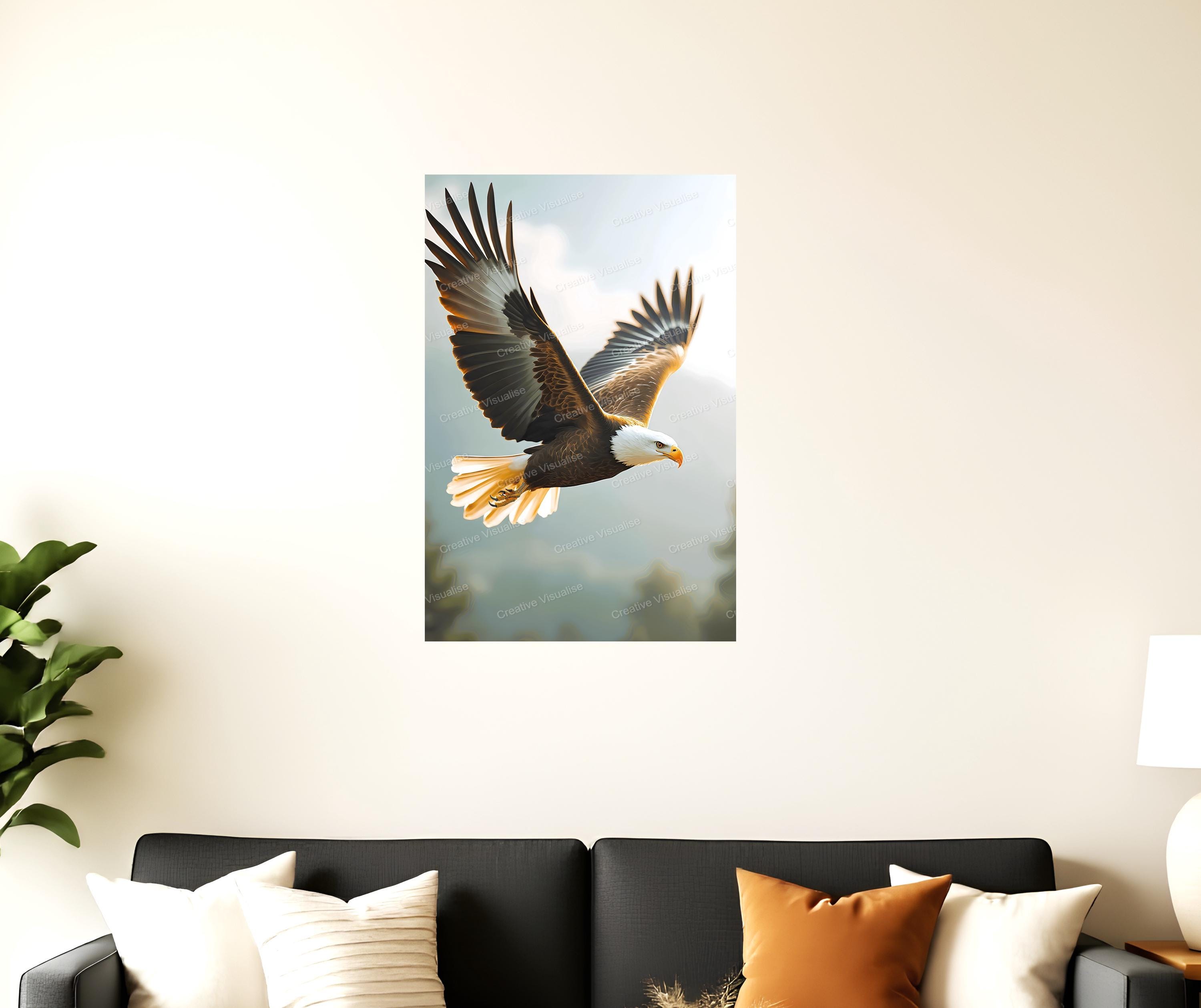A digital photo of an eagle in flight that can be easily downloaded and printed. It is large enough for professional posters, canvas prints, and wall decor. The sizes of received digital files: 1. PNG file, 4700×7000 pixels 2. PDF file, 16×20 (8×10 and 4×6) inches 3. PDF file, 18×24 (12×16 and 6×8) inches 4. PDF file, A2 (16.5×23.4 inches) 5. PDF file, 16×16 inches All files are high-resolution 300 DPI professional quality, ensuring crisp and clear prints at every size.