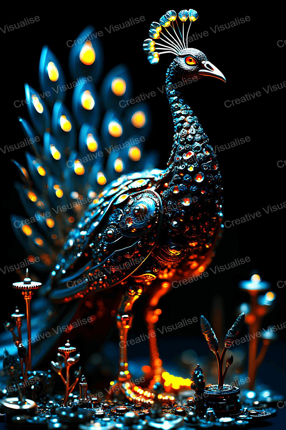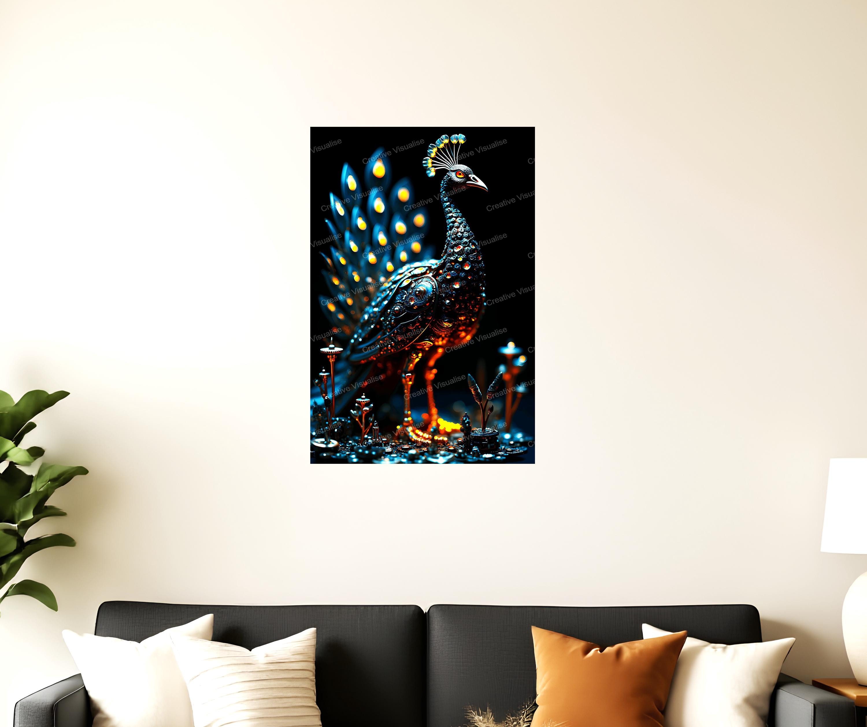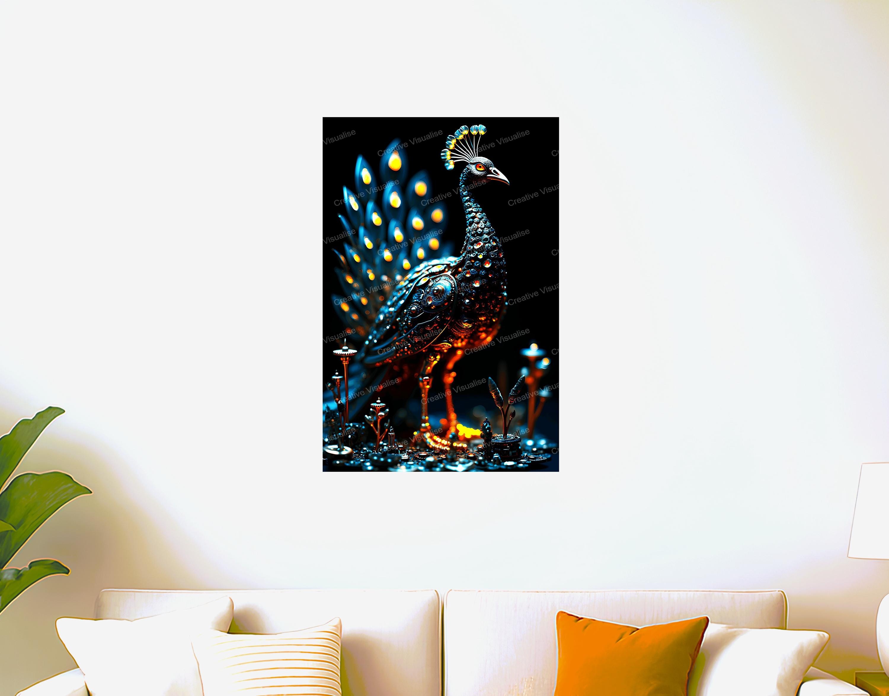 A digital photo of robot peacock wallpaper that can be easily downloaded and printed. It is large enough for professional posters, canvas prints, and wall decor. The sizes of received digital files: 1. PNG file, 4700×7000 pixels 2. PDF file, 16×20 (8×10 and 4×6) inches 3. PDF file, 18×24 (12×16 and 6×8) inches 4. PDF file, A2 (16.5×23.4 inches) 5. PDF file, 16×16 inches All files are high-resolution 300 DPI professional quality, ensuring crisp and clear prints at every size.
