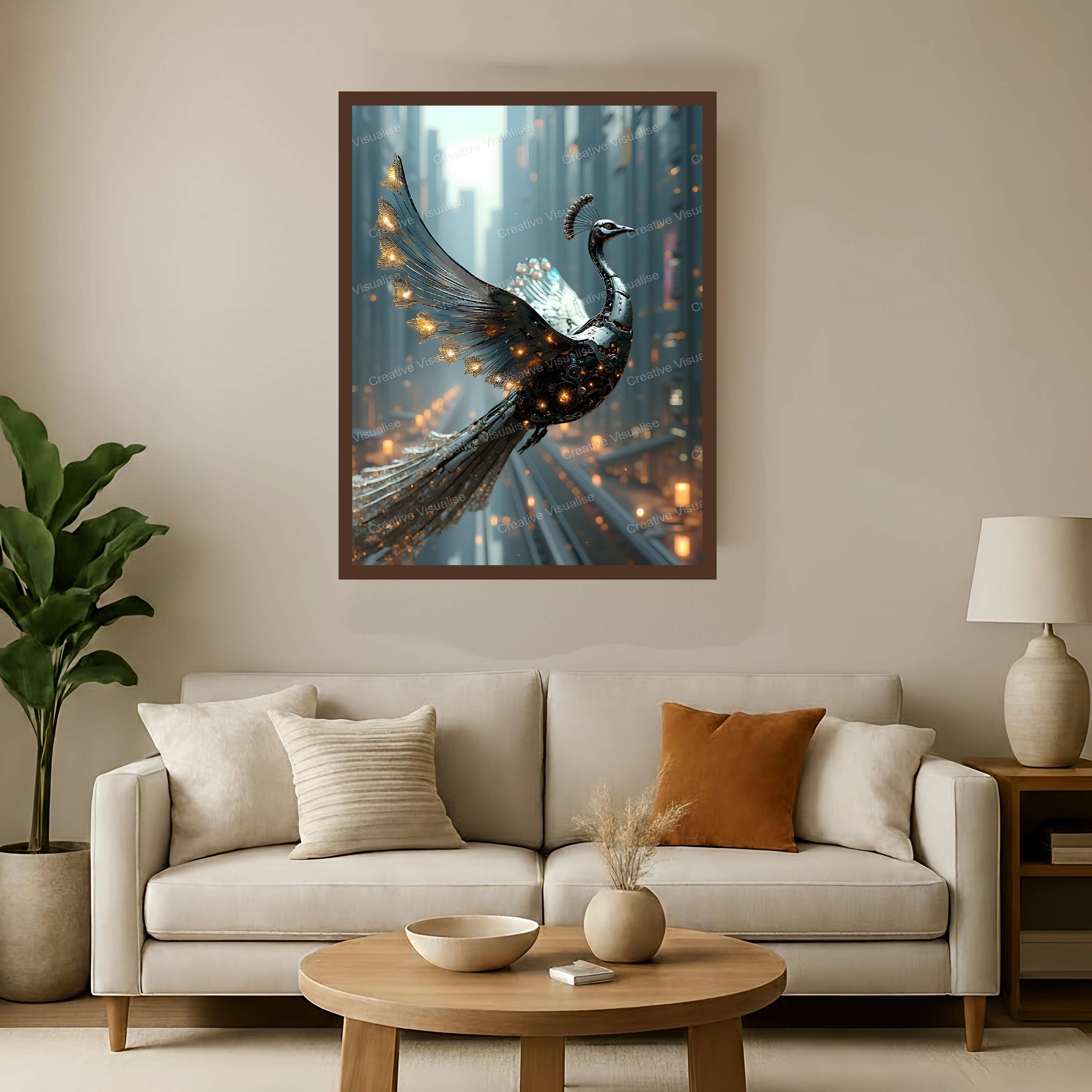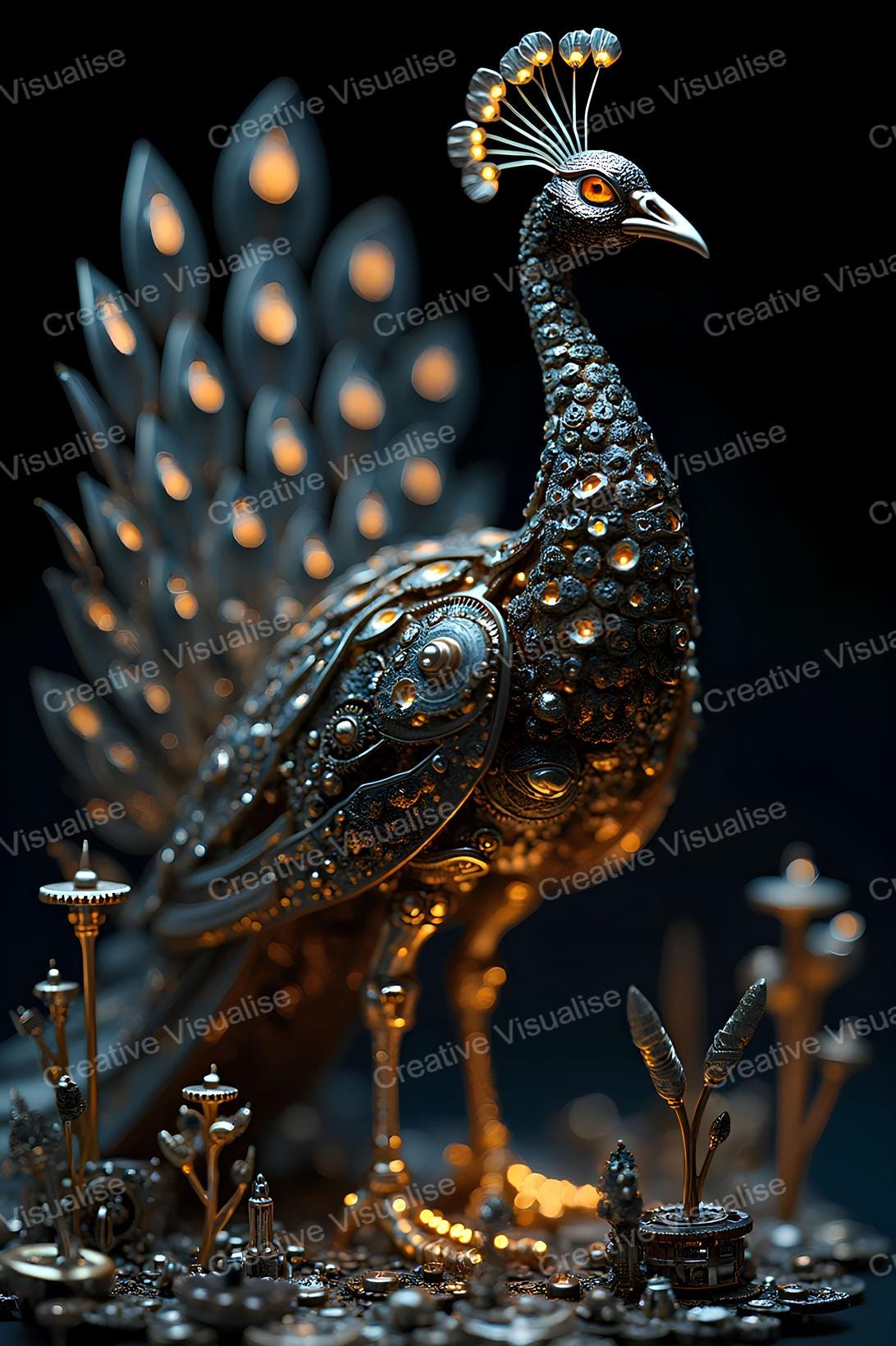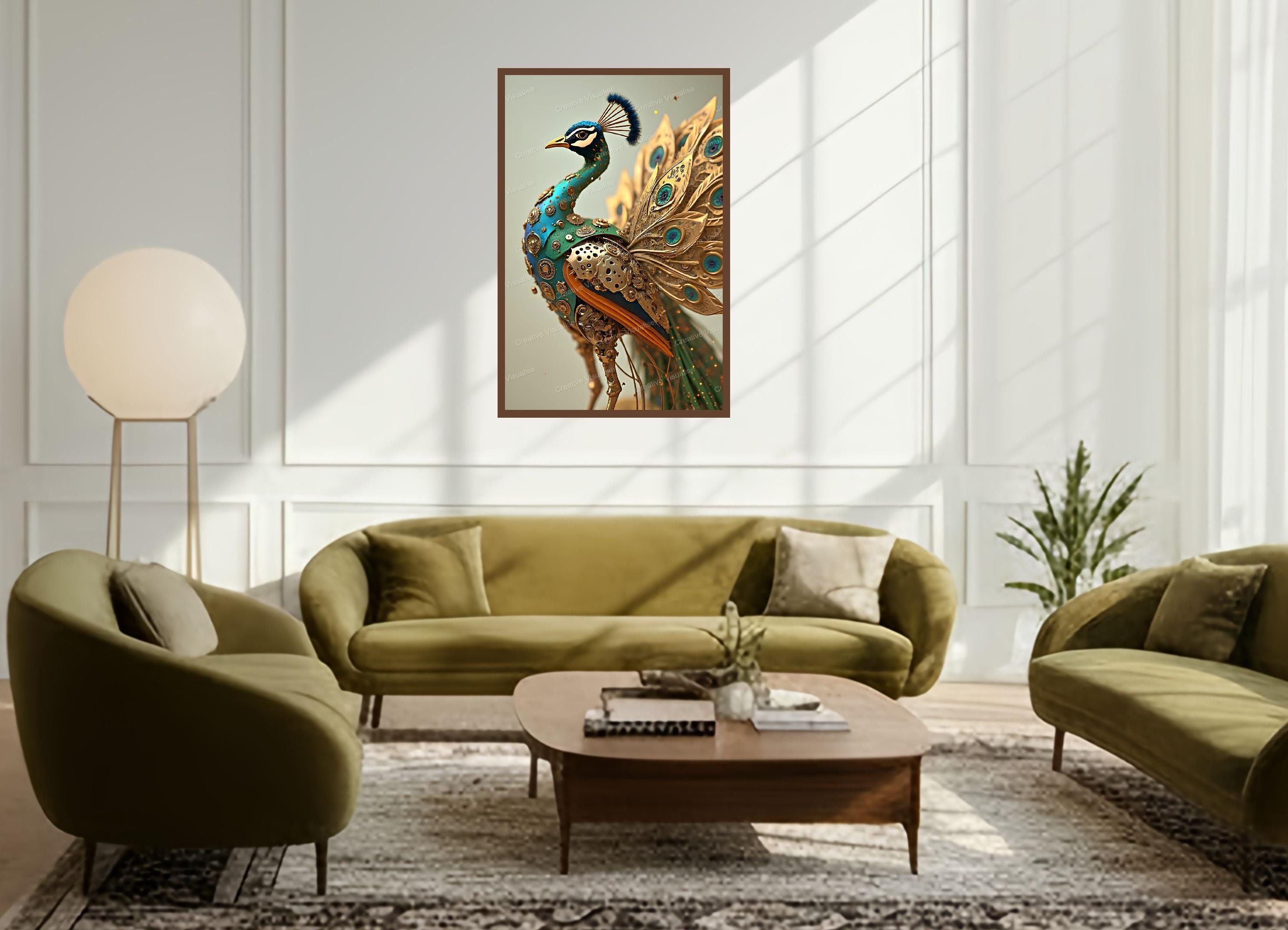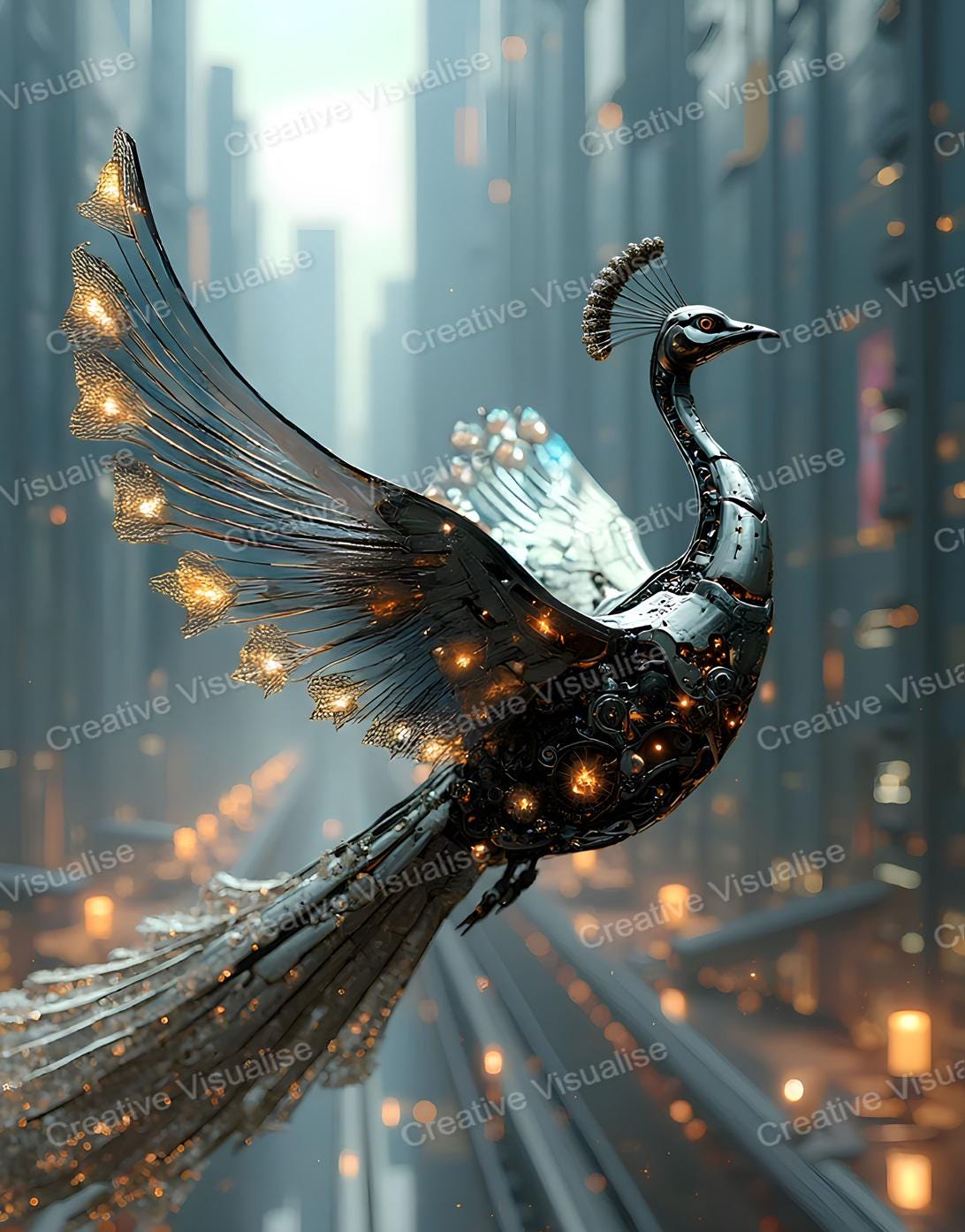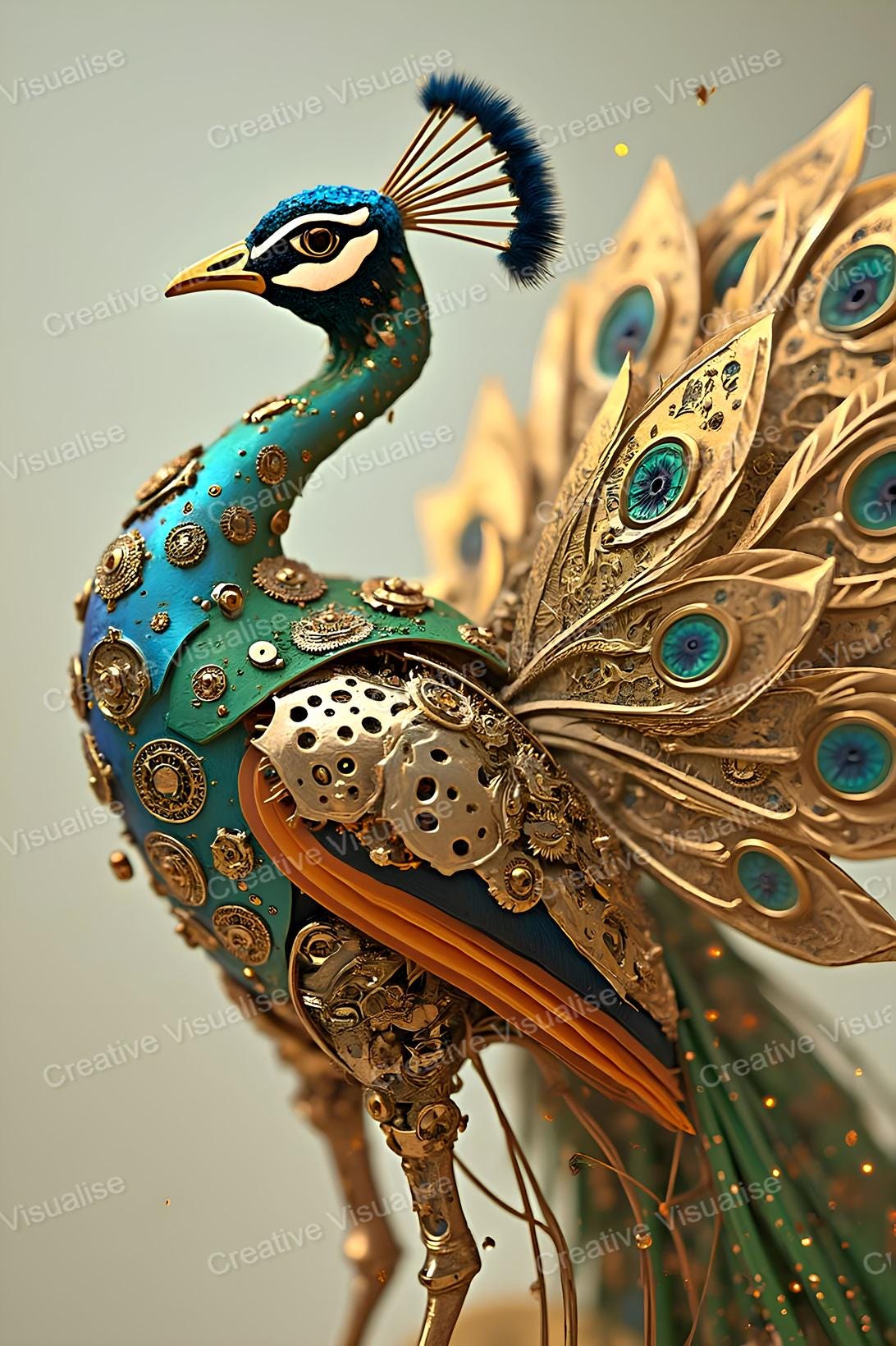 Set of 5 digital photos of robot peacock wallpaper that can be easily downloaded and printed (not a physical item for delivery). The details of the digitally received image are about 11000 × 16000 pixels, 300 DPI, JPEG and PDF formats, AI artwork, very high resolution without a watermark, and large enough for professional posters, canvas prints, and wall decor. Please send me a message if you need another file format after the original files' delivery. This price is for personal use! For commercial use, please send me a message.