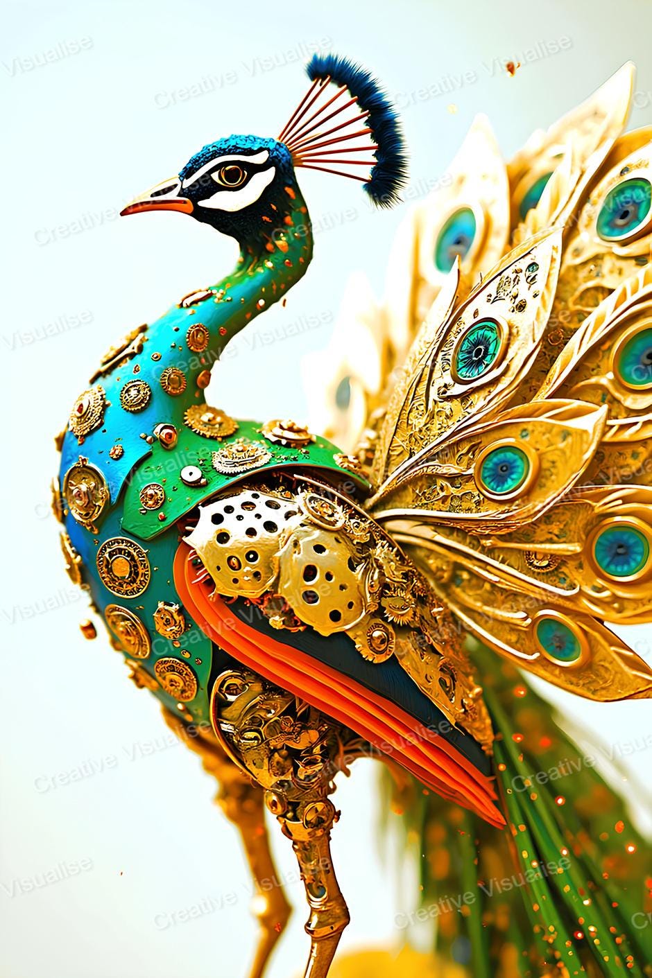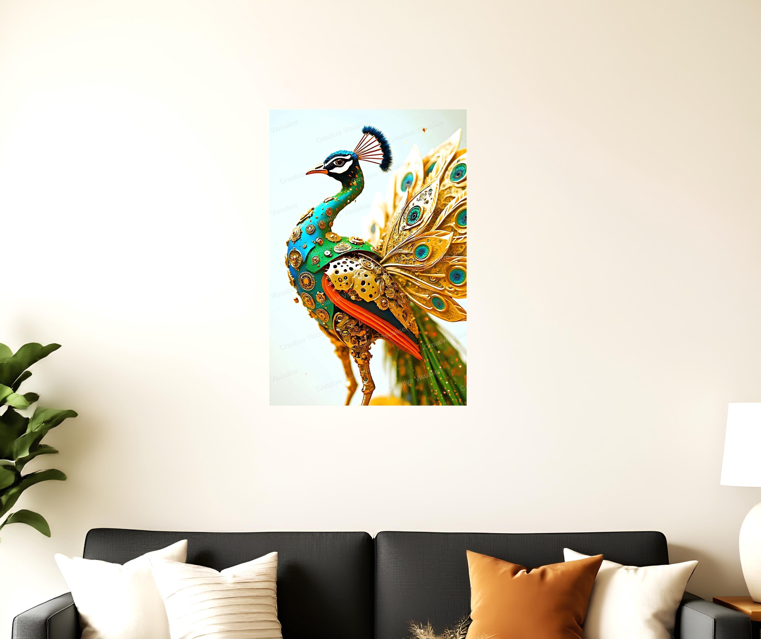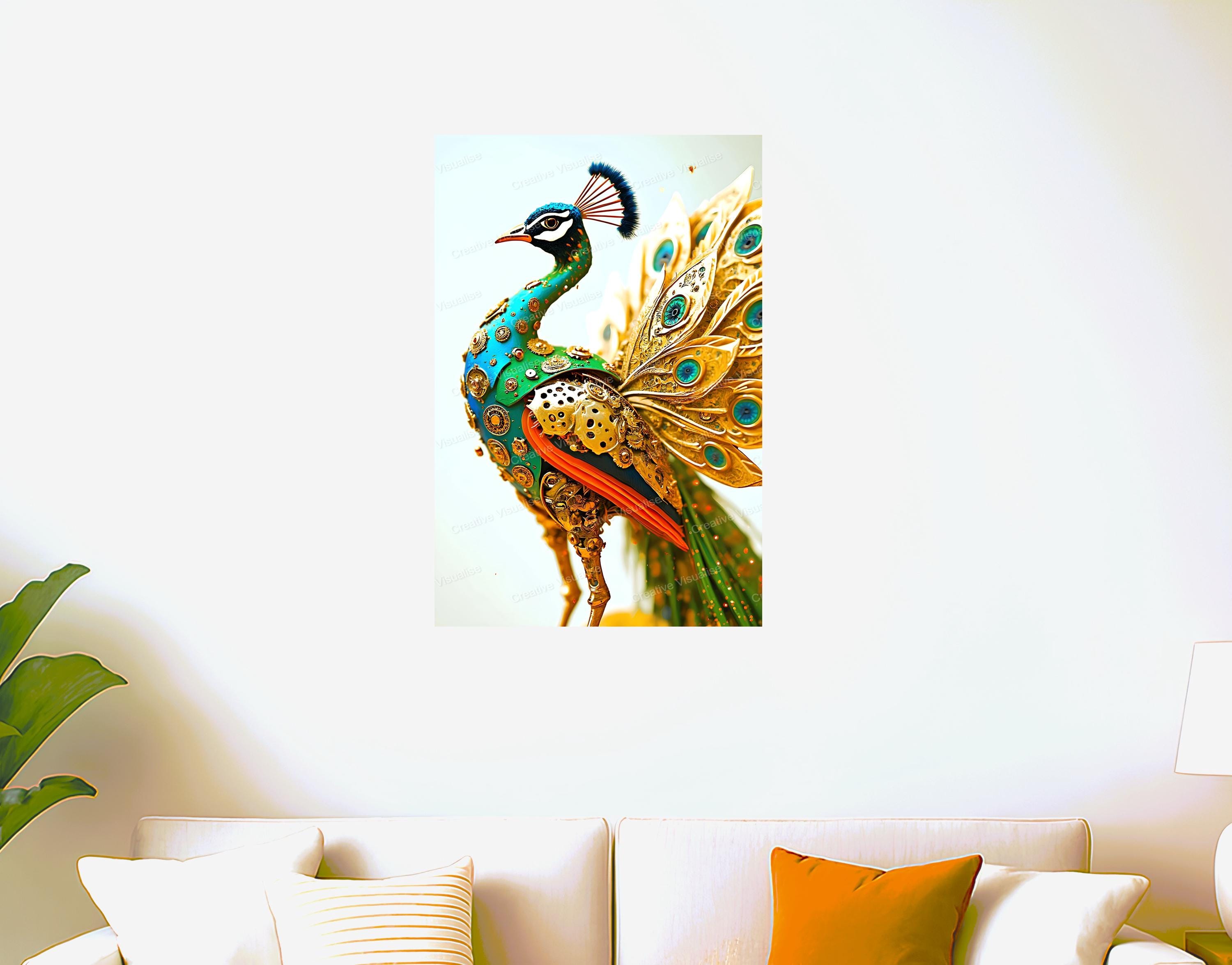 Digital photo of a metal peacock that can be easily downloaded and printed. It is large enough for professional posters, canvas prints, and wall decor. The sizes of received digital files: 1. PNG file, 4700×7000 pixels 2. PDF file, 16×20 (8×10 and 4×6) inches 3. PDF file, 18×24 (12×16 and 6×8) inches 4. PDF file, A2 (16.5×23.4 inches) 5. PDF file, 16×16 inches All files are high-resolution 300 DPI professional quality, ensuring crisp and clear prints at every size.