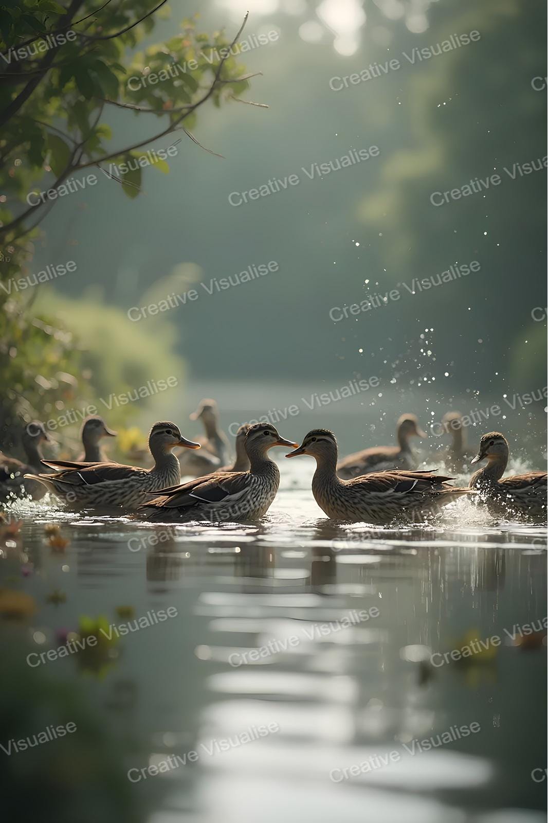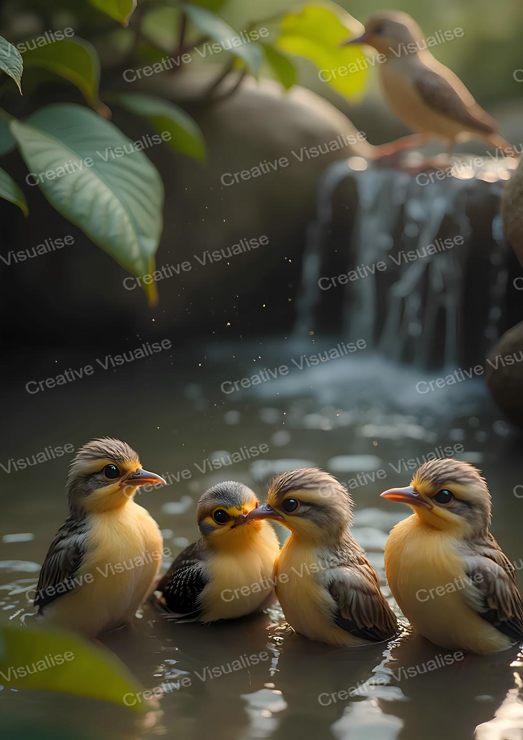 Set of 5 digital photos about bathing birds in a river that can be easily downloaded and printed (not a physical item for delivery). The details of the digitally received image are about 11000 × 16000 pixels, 300 DPI, JPEG and PDF formats, AI artwork, very high resolution without a watermark, and large enough for professional posters, canvas prints, and wall decor. Please send me a message if you need another file format after the original files' delivery. This price is for personal use! For commercial use, please send me a message.
