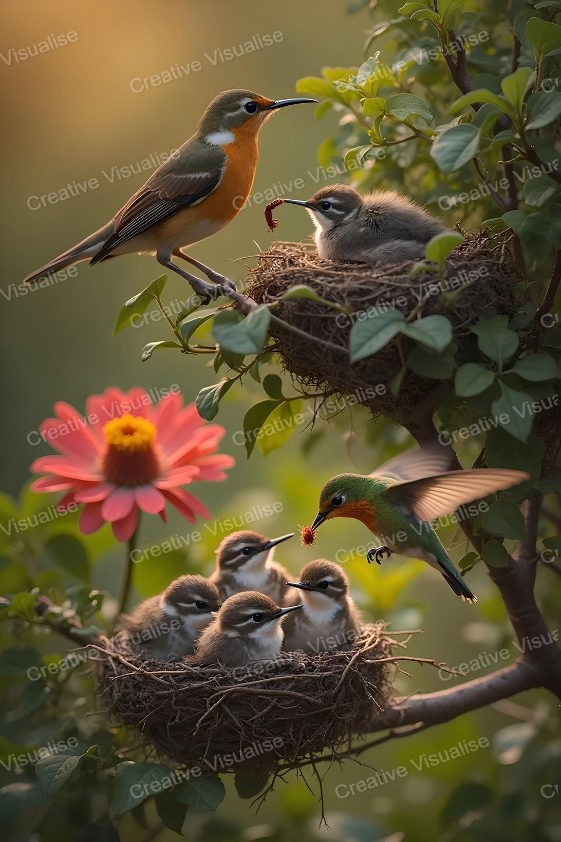 Set of 5 Digital Printable Photos about Birds Feeding their Fledglings that can be easily downloaded and printed (not a physical item for delivery). The details of the digitally received image are about 11000 × 16000 pixels, 300 DPI, JPEG and PDF formats, AI artwork, very high resolution without a watermark, and large enough for professional posters, canvas prints, and wall decor. Please send me a message if you need another file format after the original files' delivery. This price is for personal use! For commercial use, please send me a message.