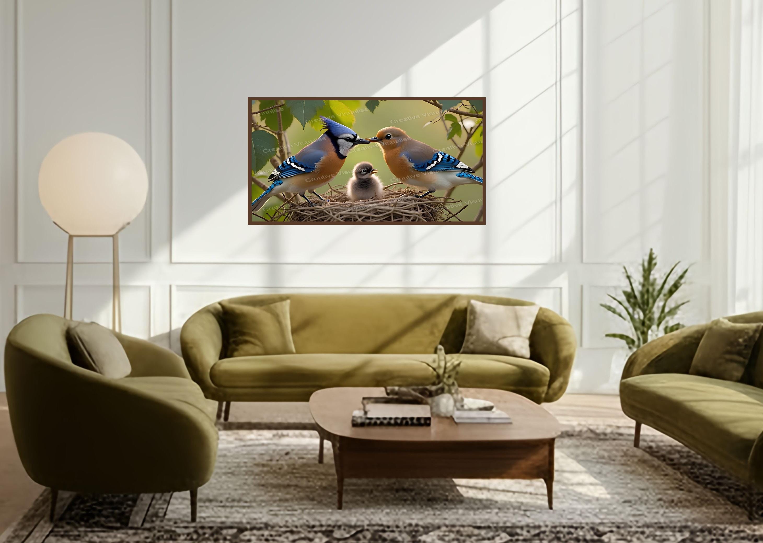 A digital photo of birds feeding their fledgling that can be easily downloaded and printed (not a physical item for delivery). The details of the digitally received image are about 11000 × 16000 pixels, 300 DPI, JPEG and PDF formats, AI artwork, very high resolution without a watermark, and large enough for professional posters, canvas prints, and wall decor. Please send me a message if you need another file format after the original files' delivery. This price is for personal use! For commercial use, please send me a message.