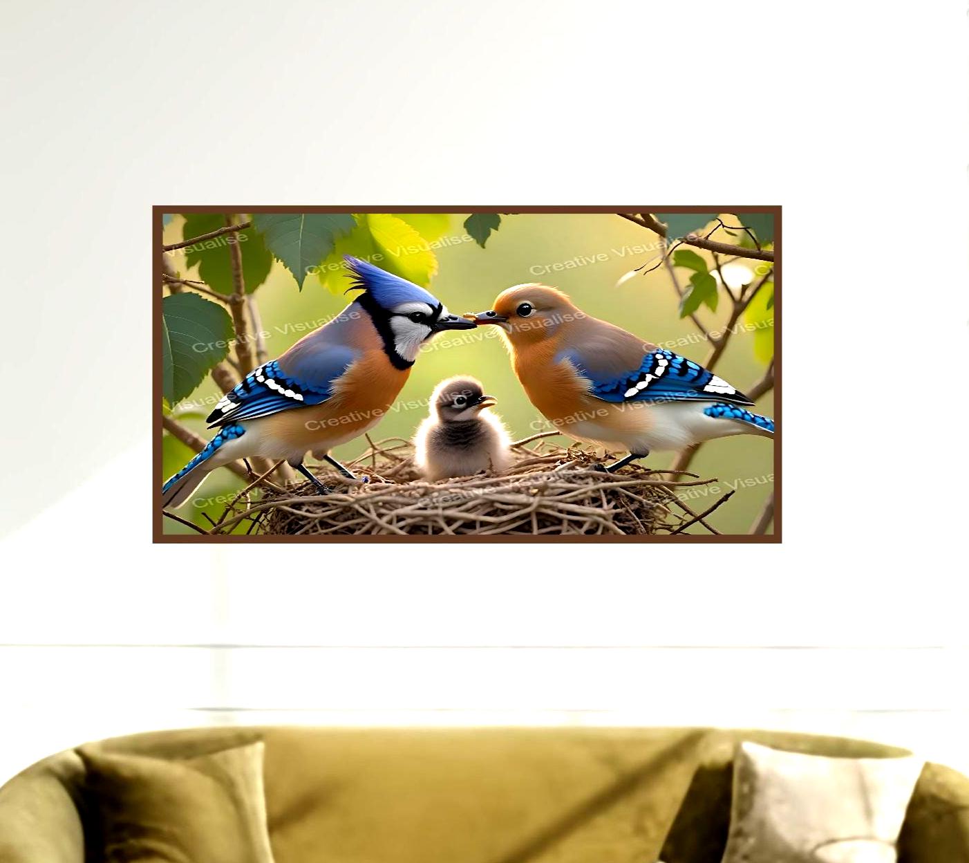 A digital photo of birds feeding their fledgling that can be easily downloaded and printed (not a physical item for delivery). The details of the digitally received image are about 11000 × 16000 pixels, 300 DPI, JPEG and PDF formats, AI artwork, very high resolution without a watermark, and large enough for professional posters, canvas prints, and wall decor. Please send me a message if you need another file format after the original files' delivery. This price is for personal use! For commercial use, please send me a message.