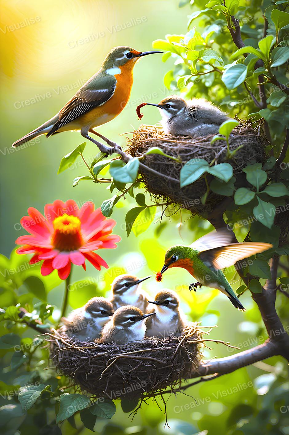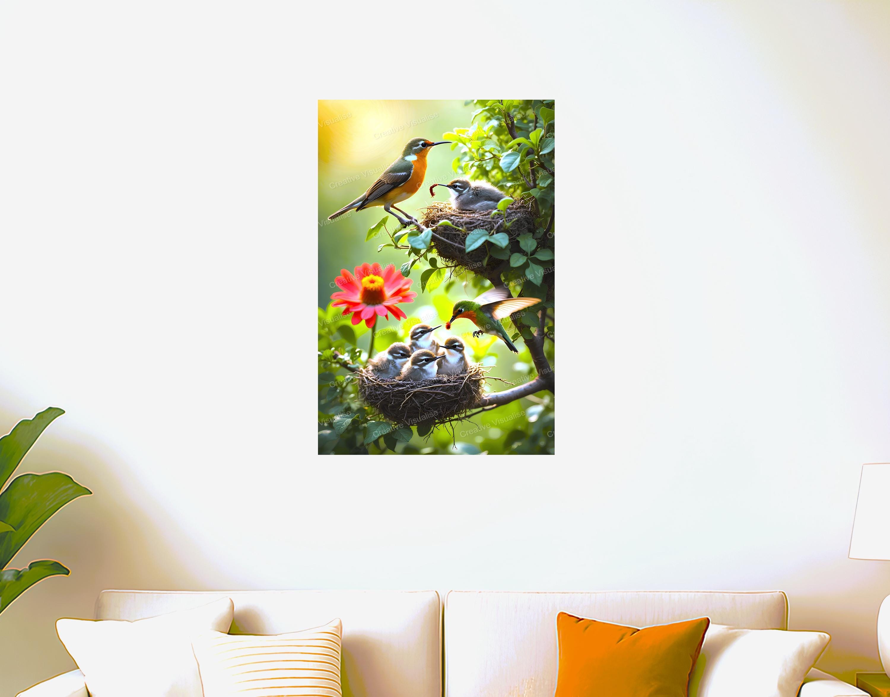 A digital photo of birds feeding fledglings that can be easily downloaded and printed. It is large enough for professional posters, canvas prints, and wall decor. The sizes of received digital files: 1. PNG file, 4700×7000 pixels 2. PDF file, 16×20 (8×10 and 4×6) inches 3. PDF file, 18×24 (12×16 and 6×8) inches 4. PDF file, A2 (16.5×23.4 inches) 5. PDF file, 16×16 inches All files are high-resolution 300 DPI professional quality, ensuring crisp and clear prints at every size. For commercial use, please send me a message.