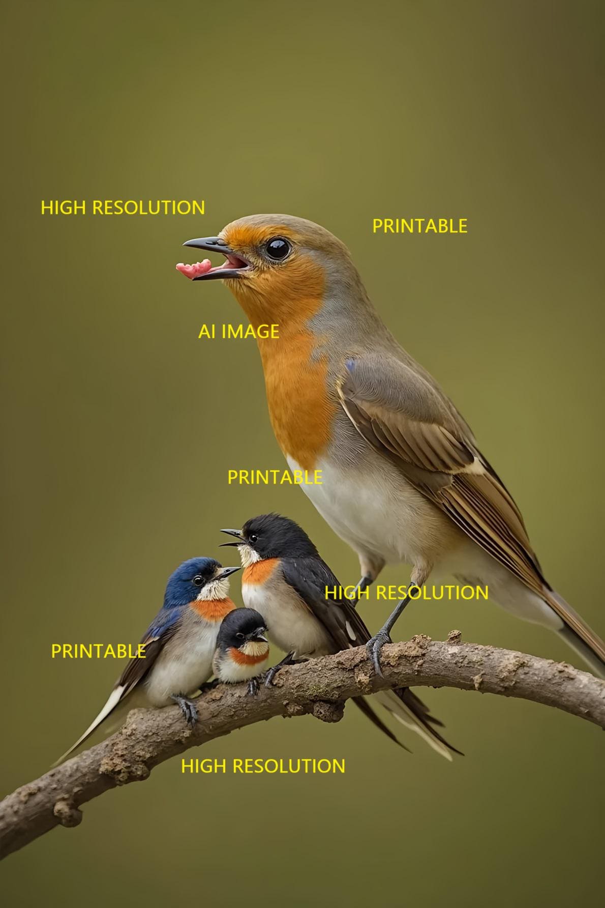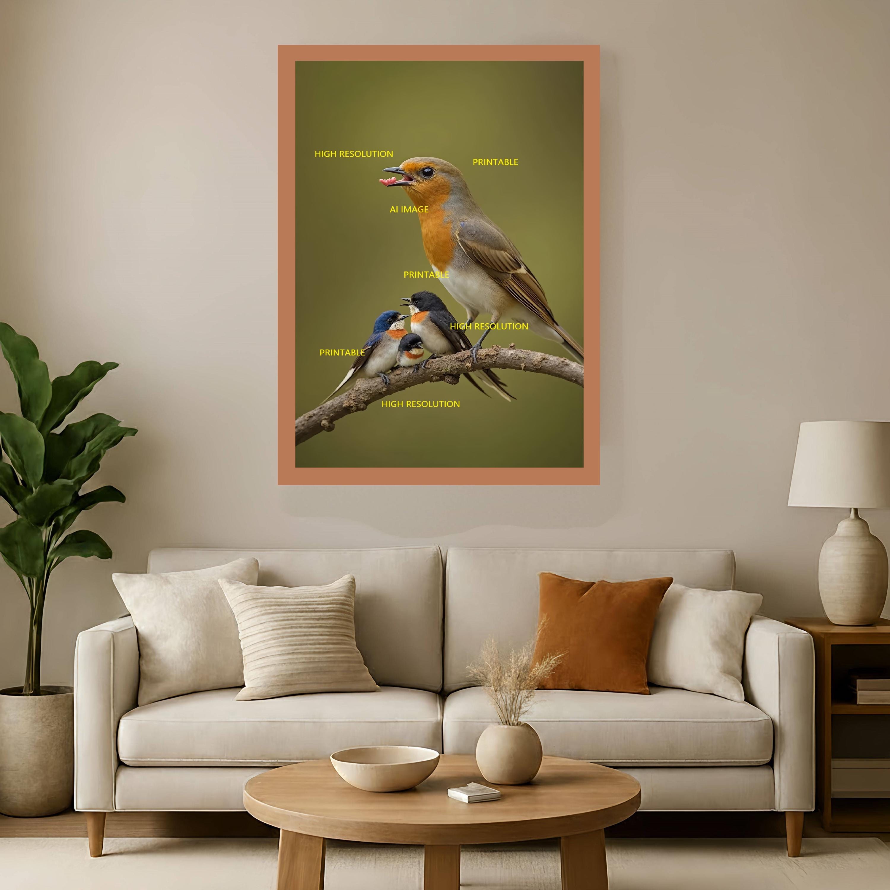 Digital photo of a bird with its fledglings that can be easily downloaded and printed (not a physical item for delivery).