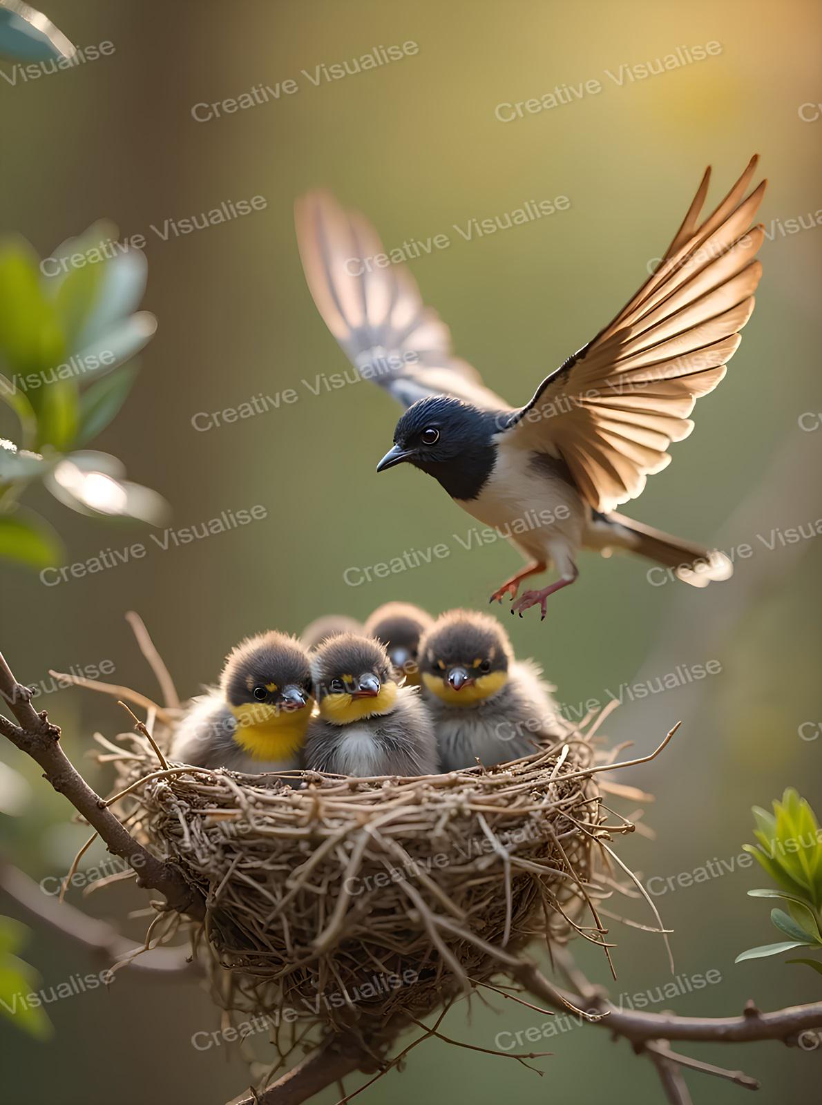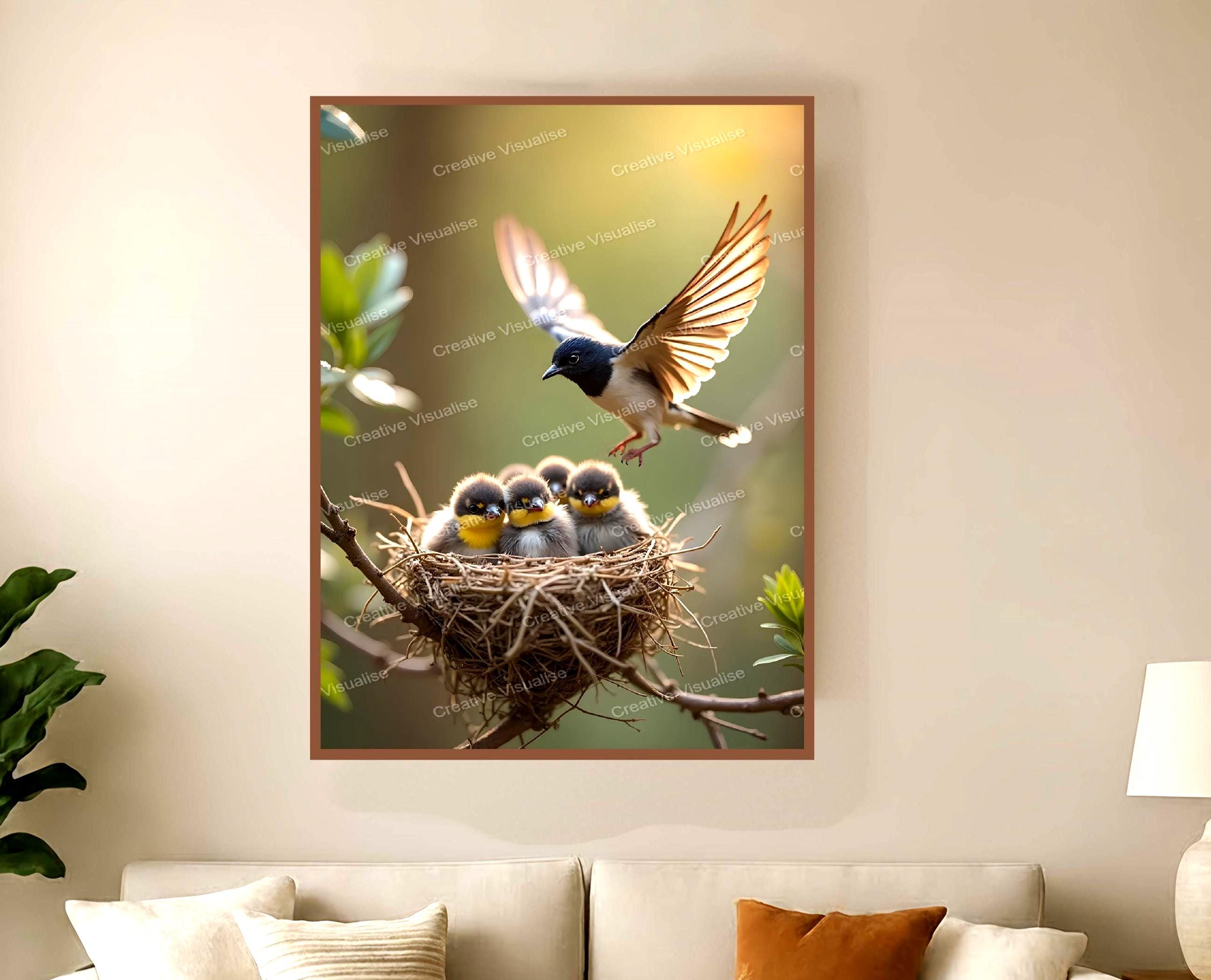 Bird with its Fledglings High-Resolution Digital Print, 11000 x 16000 Pixels 300 DPI JPEG