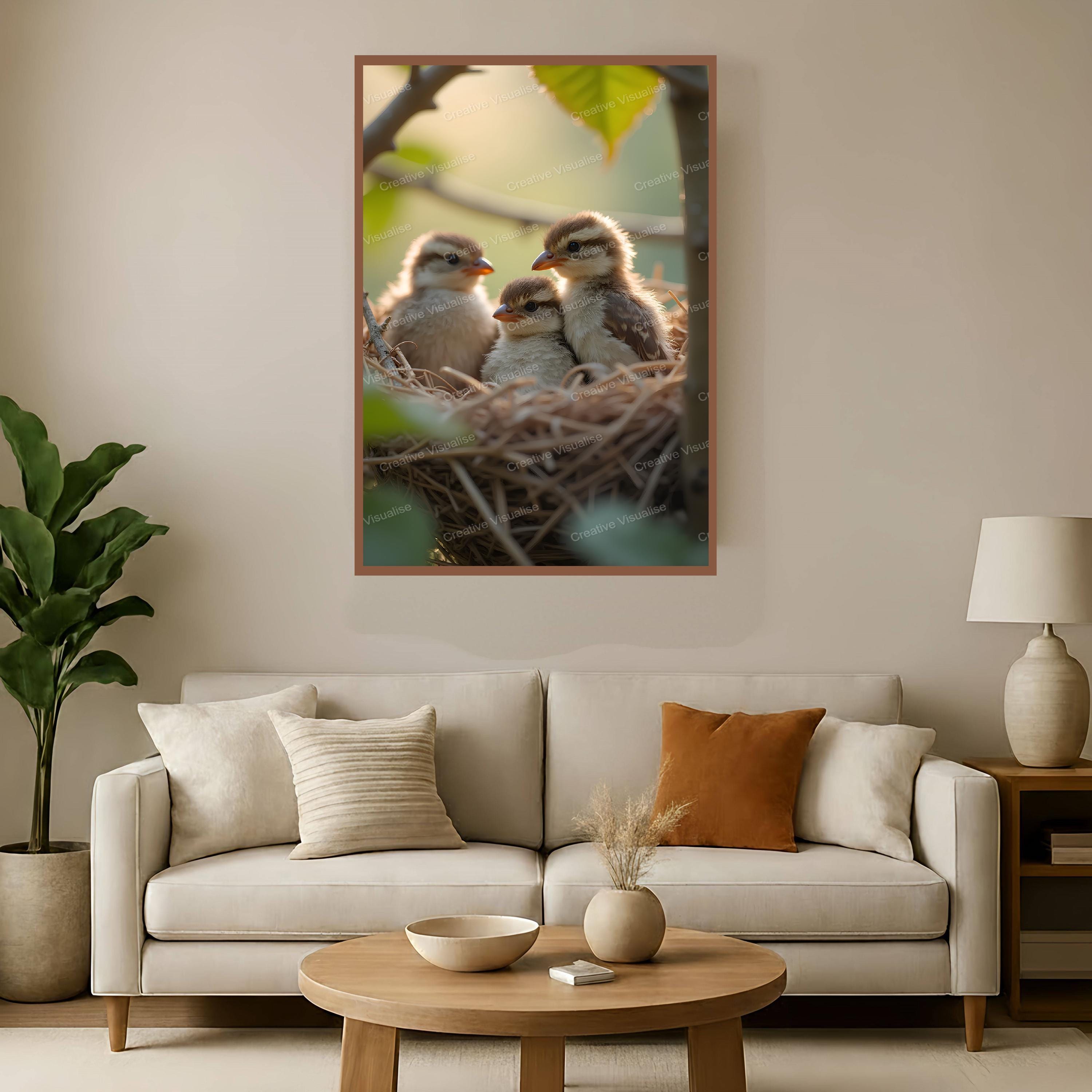 Digital photo of fledglings that can be easily downloaded and printed (not a physical item for delivery). The details of the digitally received image are about 11000 × 16000 pixels, 300 DPI, JPEG and PDF formats, AI artwork, very high resolution without a watermark, and large enough for professional posters, canvas prints, and wall decor. Please send me a message if you need another file format after the original files' delivery. This price is for personal use! For commercial use, please send me a message.