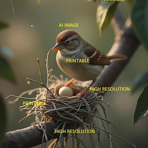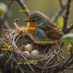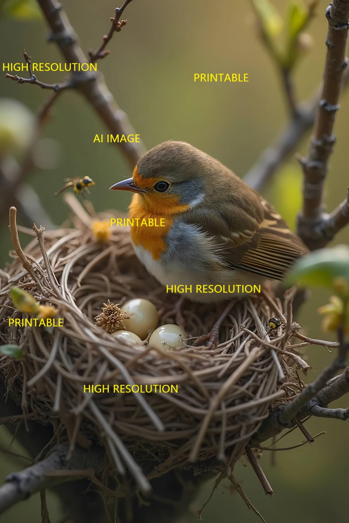 5 digital photos about birds nesting that can be easily downloaded and printed (not a physical item for delivery). The details of the digitally received images are about 5000 × 8000 pixels, 300 DPI, AI artwork, very high resolution without a watermark, and large enough for professional posters, canvas prints, and wall decor. This price is for personal use! For commercial use, please send me a message.