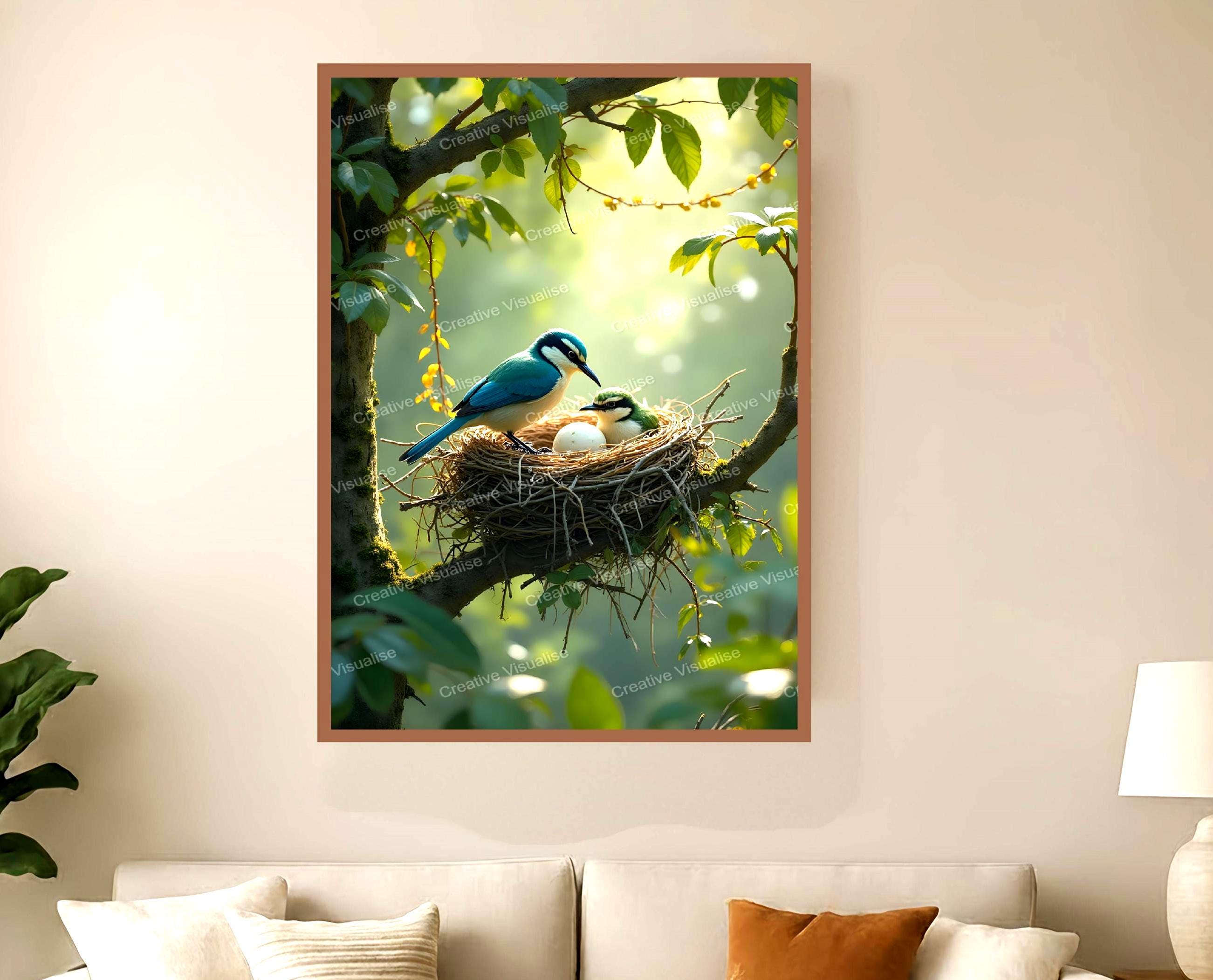 Digital photo about bird nesting that can be easily downloaded and printed (not a physical item for delivery). The details of the digitally received image are about 11000 × 16000 pixels, 300 DPI, JPEG and PDF formats, AI artwork, very high resolution without a watermark, and large enough for professional posters, canvas prints, and wall decor. Please send me a message if you need another file format after the original files' delivery. This price is for personal use! For commercial use, please send me a message.