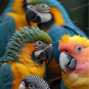 Digital photo of colorful Goura Victoria crowned pigeons that can be easily downloaded and printed (not a physical item for delivery).