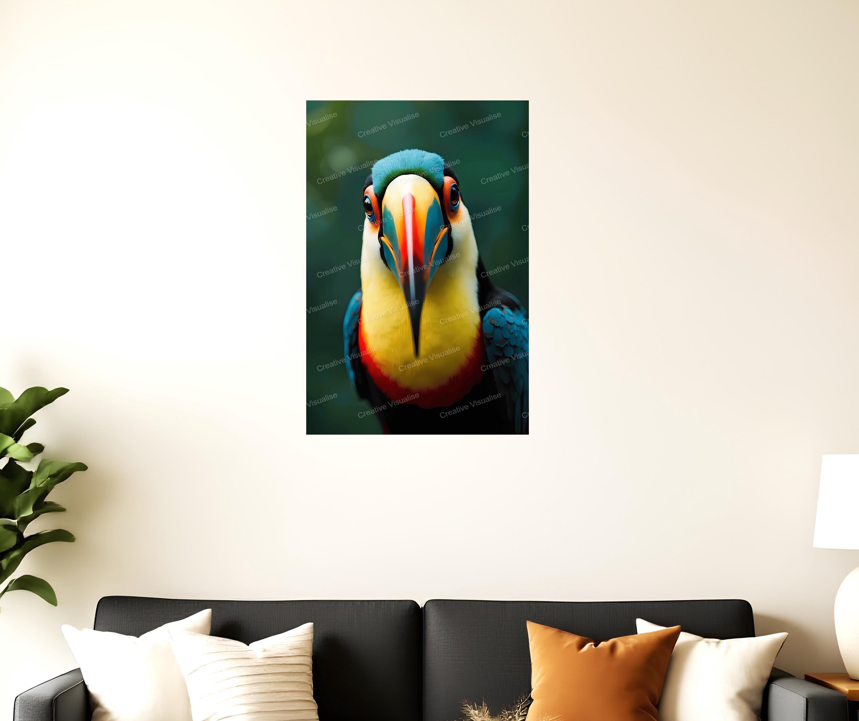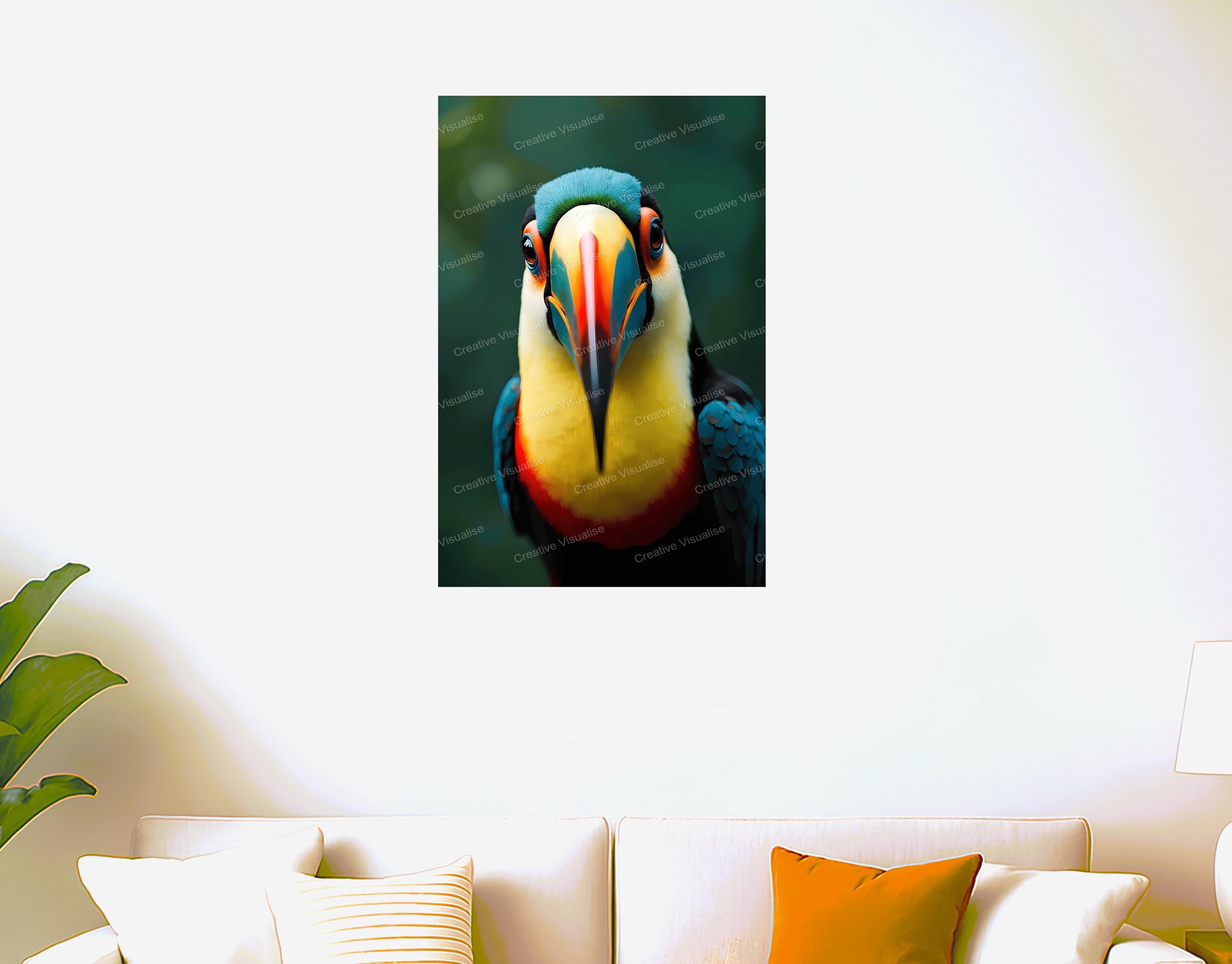 A digital photo of a toucan bird that can be easily downloaded and printed. It is large enough for professional posters, canvas prints, and wall decor. The sizes of received digital files: 1. PNG file, 4700×7000 pixels 2. PDF 4:5 ratio, 16×20 (8×10 and 4×5) inches 3. PDF 3:4 ratio, 18×24 (12×16 and 6×8) inches 4. PDF 2:3 ratio, 16×24 (12×18, 8×12, and 4×6) inches 5. PDF file, A2 (16.5×23.4 inches) All files are high-resolution 300 DPI professional quality, ensuring crisp and clear prints at every size. For commercial use, please send me a message.