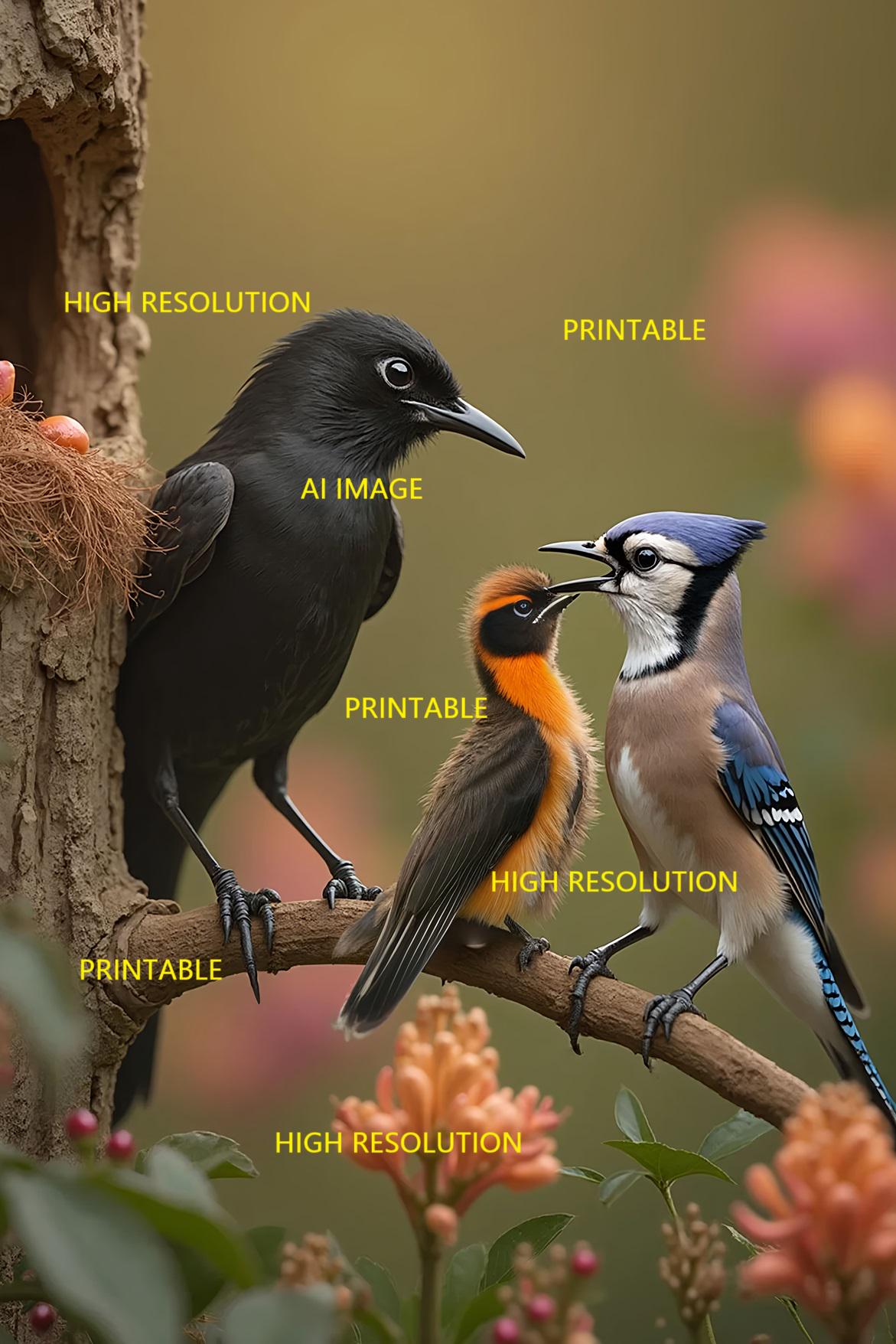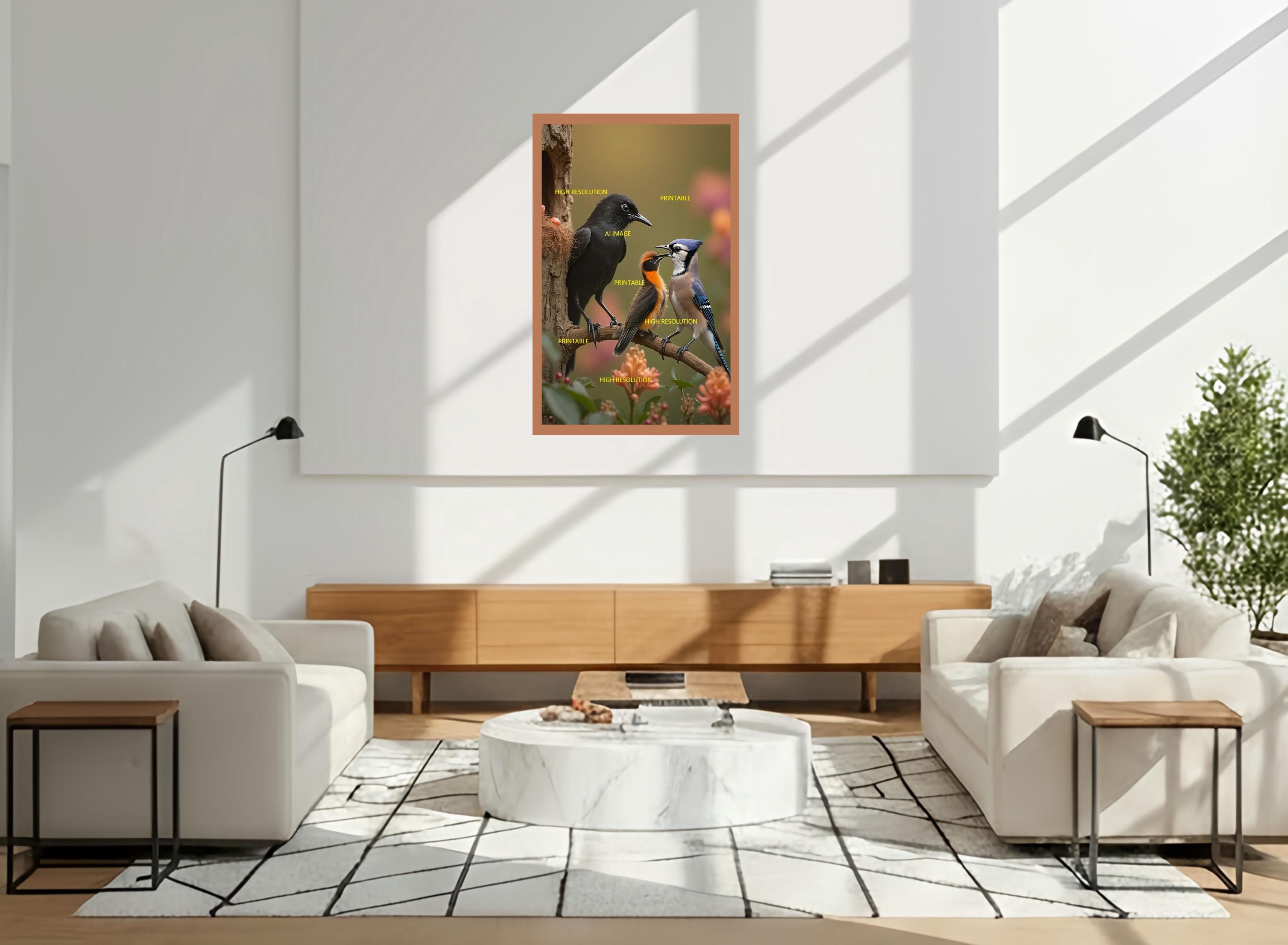 Digital photo of lovely birds that can be easily downloaded and printed (not a physical item for delivery). The details of the digitally received image are about 5000 × 8000 pixels, 300 DPI, AI artwork, very high resolution without a watermark, and large enough for professional posters, canvas prints, and wall decor. This price is for personal use, not for commercial use!