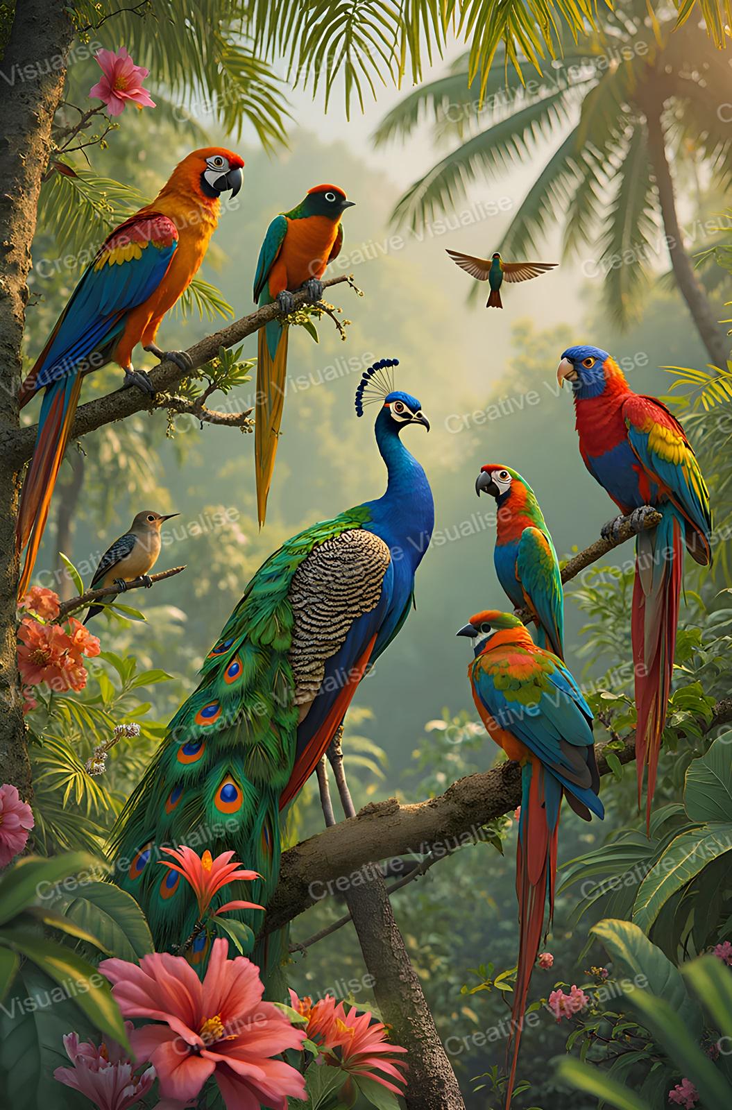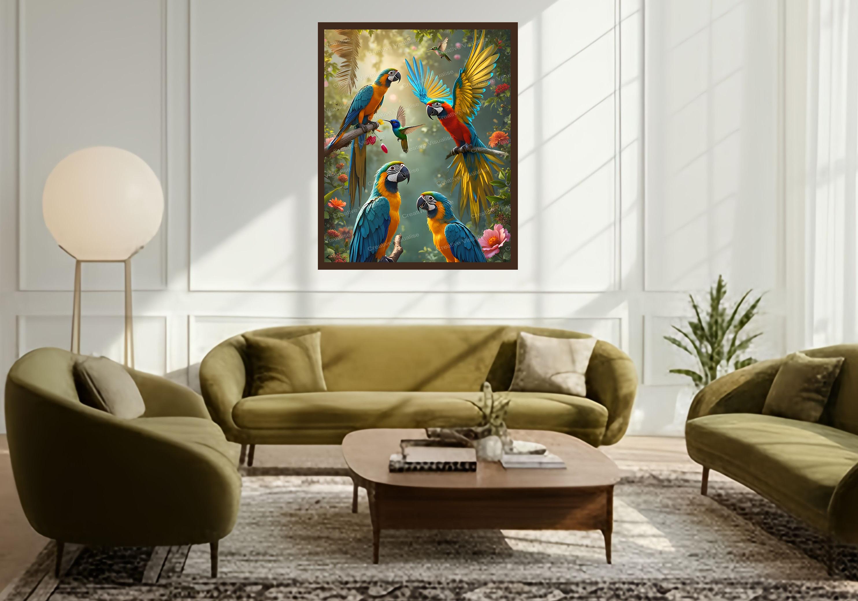 Set of 5 digital photos of beautiful exotic birds that can be easily downloaded and printed (not a physical item for delivery). The details of the digitally received image are about 11000 × 16000 pixels, 300 DPI, JPEG and PDF formats, AI artwork, very high resolution without a watermark, and large enough for professional posters, canvas prints, and wall decor. Please send me a message if you need another file format after the original files' delivery. This price is for personal use! For commercial use, please send me a message.