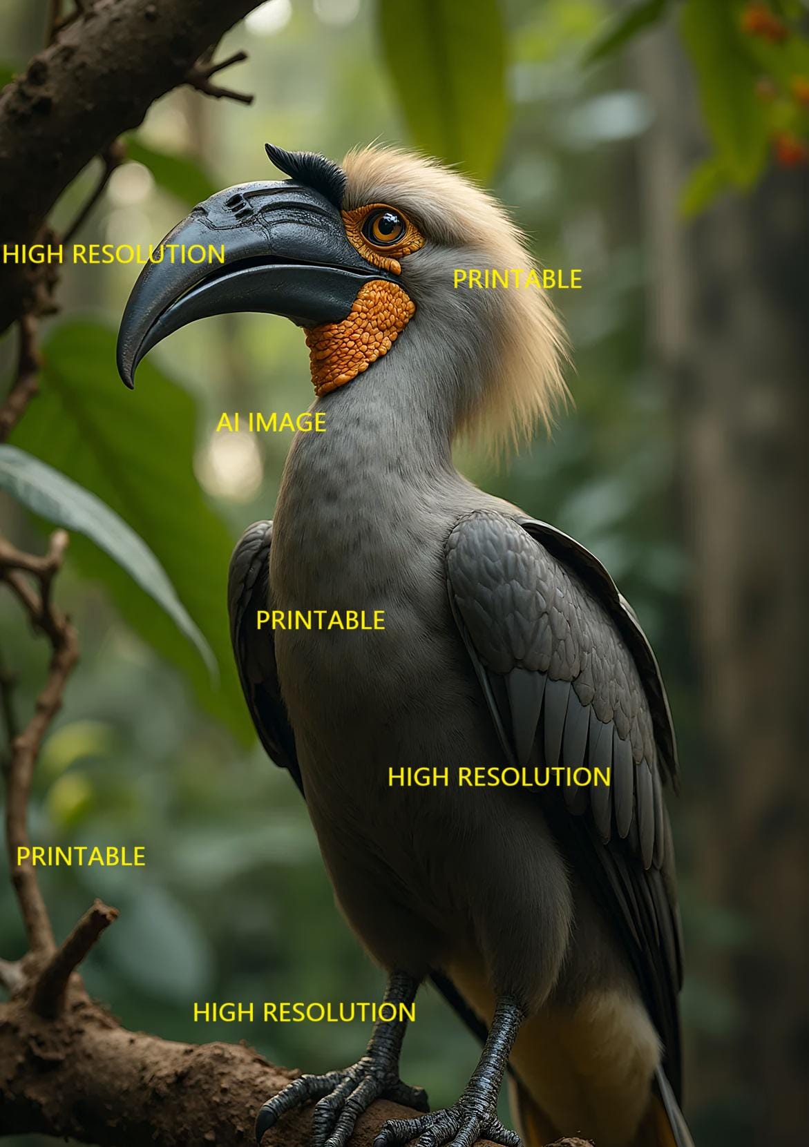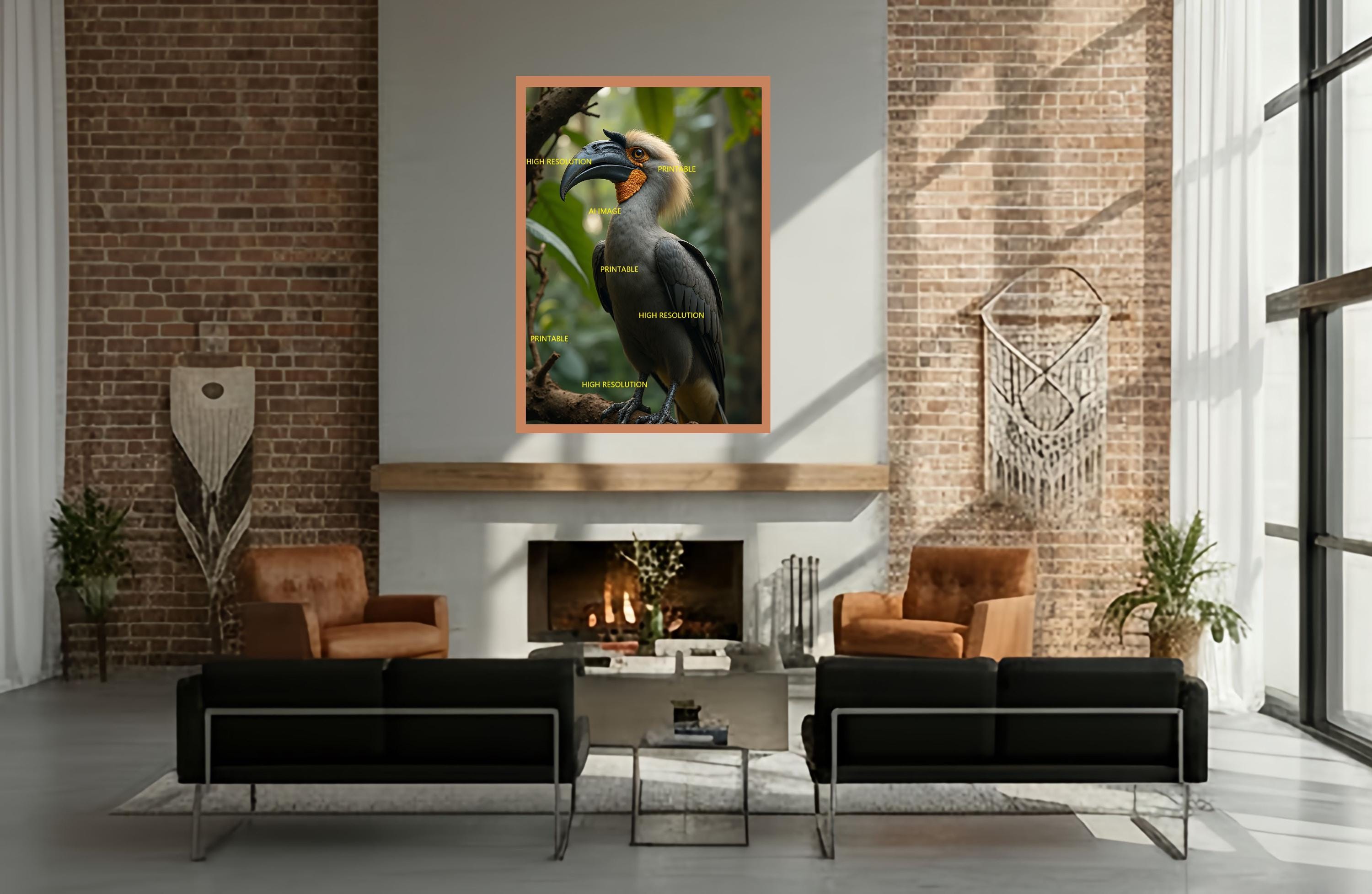 Digital photo of a Malabar grey hornbill bird that can be easily downloaded and printed (not a physical item for delivery). The details of the digitally received image are about 5000 × 8000 pixels, 300 DPI, AI artwork, very high resolution without a watermark, and large enough for professional posters, canvas prints, and wall decor. This price is for personal use, not for commercial use!