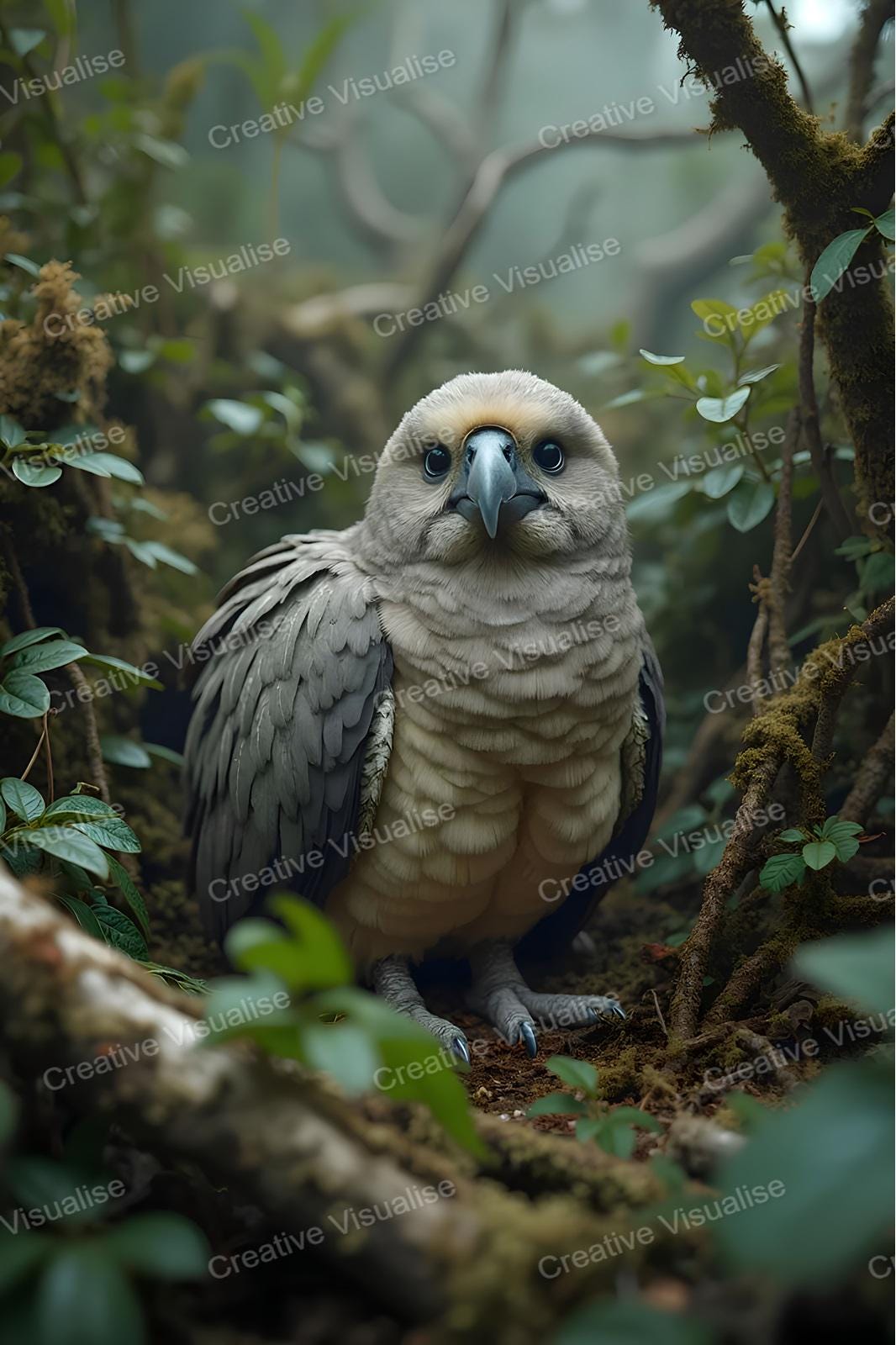 Digital photo of a beautiful kakapo falcon that can be easily downloaded and printed (not a physical item for delivery). The details of the digitally received image are about 11000 × 16000 pixels, 300 DPI, JPEG and PDF formats, AI artwork, very high resolution without a watermark, and large enough for professional posters, canvas prints, and wall decor. Please send me a message if you need another file format after the original files' delivery. This price is for personal use! For commercial use, please send me a message.