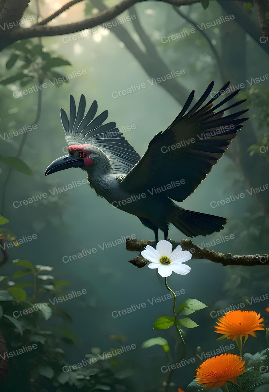 Digital photo of a Malabar grey hornbill bird that can be easily downloaded and printed (not a physical item for delivery). The details of the digitally received image are about 11000 × 16000 pixels, 300 DPI, JPEG and PDF formats, AI artwork, very high resolution without a watermark, and large enough for professional posters, canvas prints, and wall decor. Please send me a message if you need another file format after the original files' delivery. This price is for personal use! For commercial use, please send me a message.