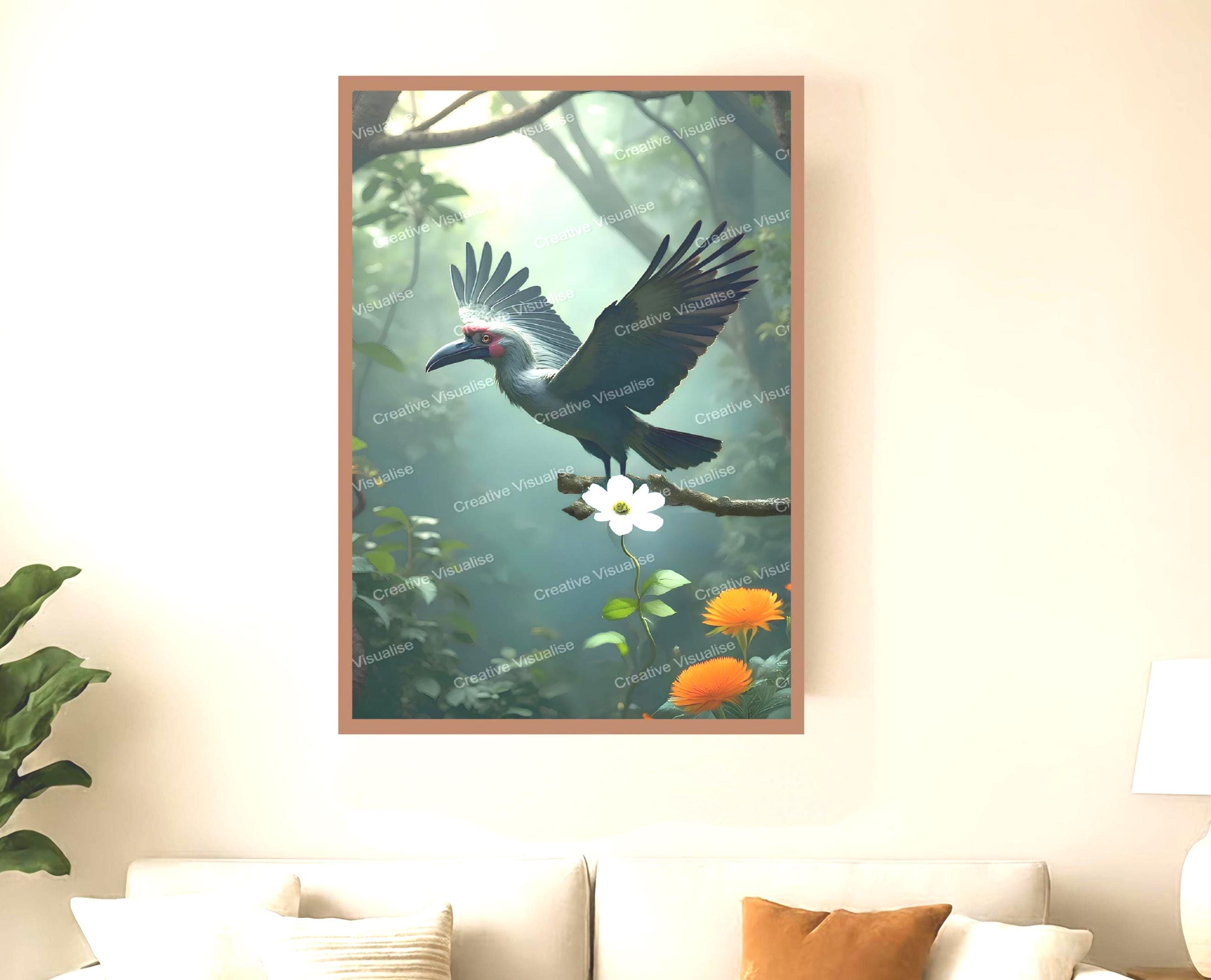 Digital photo of a Malabar grey hornbill bird that can be easily downloaded and printed (not a physical item for delivery). The details of the digitally received image are about 11000 × 16000 pixels, 300 DPI, JPEG and PDF formats, AI artwork, very high resolution without a watermark, and large enough for professional posters, canvas prints, and wall decor. Please send me a message if you need another file format after the original files' delivery. This price is for personal use! For commercial use, please send me a message.