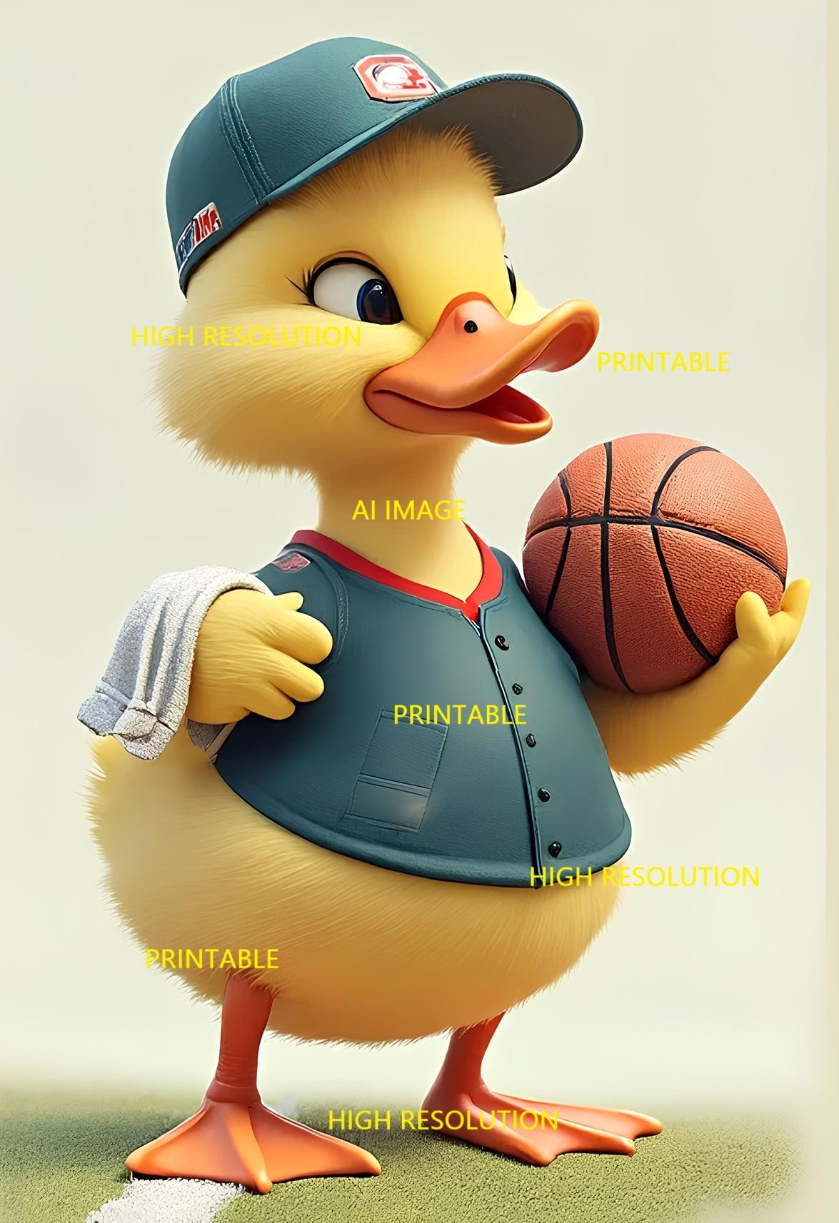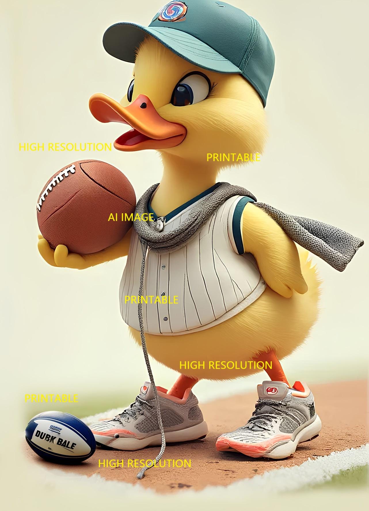 Digital photos of cute ducks Quacks yay sports that can be easily downloaded and printed (not a physical item for delivery). The details of the digitally received images are about 5000 × 8000 pixels, 300 DPI, AI artwork, very high resolution without a watermark, and large enough for professional posters, canvas prints, and wall decor. This price is for personal use, not for commercial use!