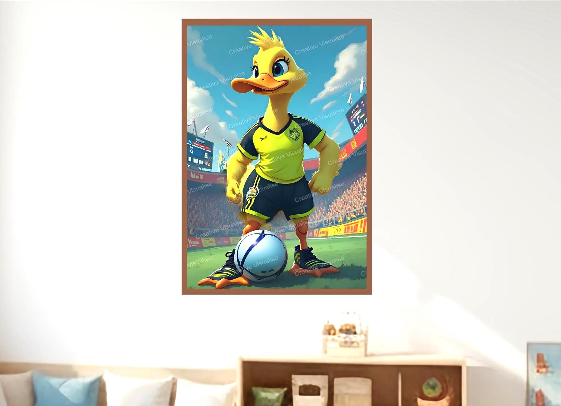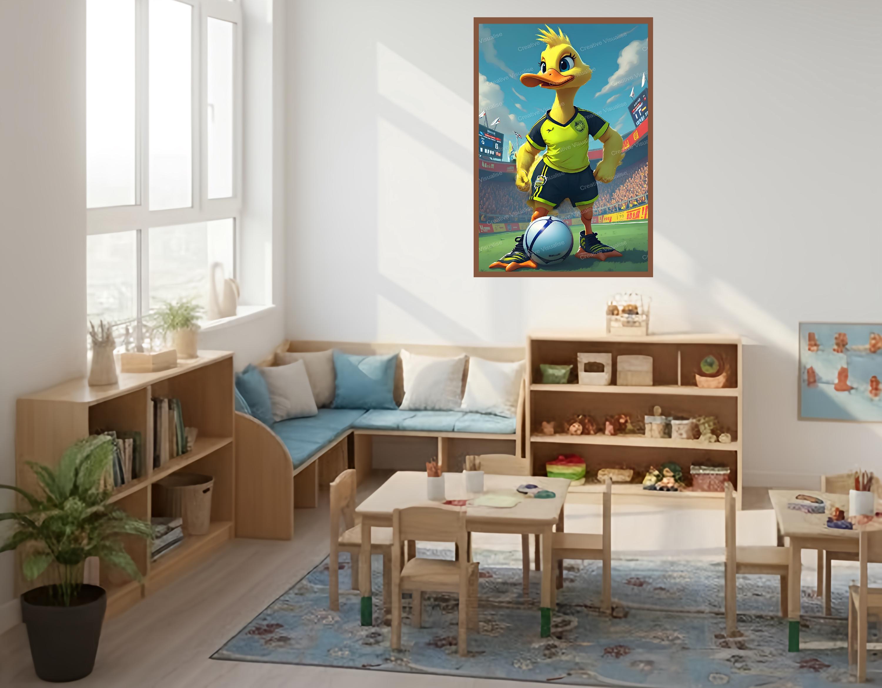 Digital photo of a quack football duck that can be easily downloaded and printed (not a physical item for delivery). The details of the digitally received image are about 11000 × 16000 pixels, 300 DPI, JPEG and PDF formats, AI artwork, very high resolution without a watermark, and large enough for professional posters, canvas prints, and wall decor. Please send me a message if you need another file format after the original files' delivery. This price is for personal use! For commercial use, please send me a message.