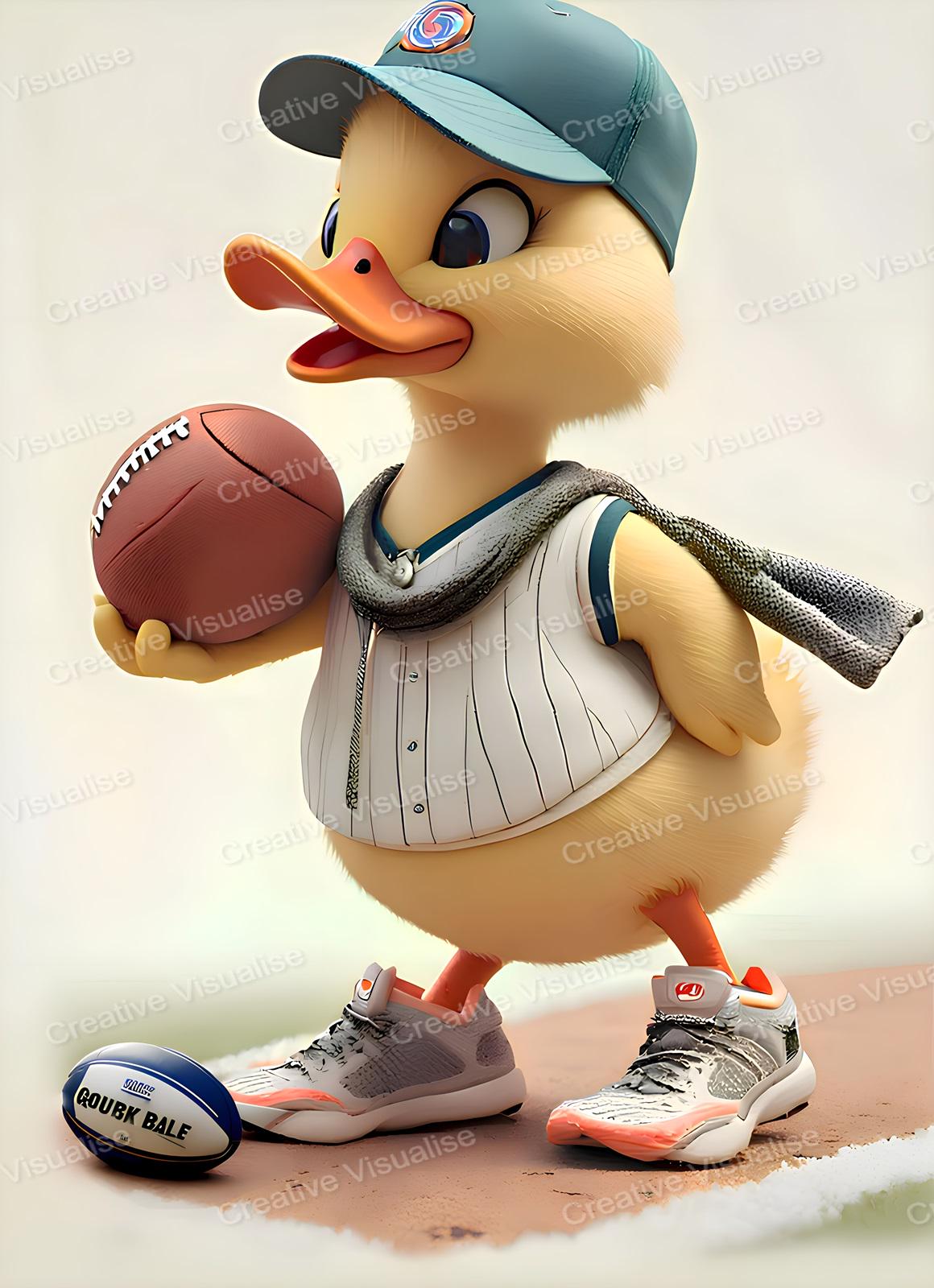 Digital photo of a cute duck with a rugby ornament that can be easily downloaded and printed (not a physical item for delivery). The details of the digitally received image are about 11000 × 16000 pixels, 300 DPI, JPEG and PDF formats, AI artwork, very high resolution without a watermark, and large enough for professional posters, canvas prints, and wall decor. Please send me a message if you need another file format after the original files' delivery. This price is for personal use! For commercial use, please send me a message.