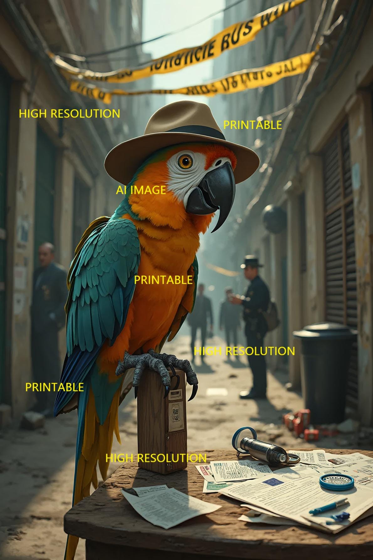 High-Resolution Digital Image of Macaw Parrot as an Inspector and Security Staff