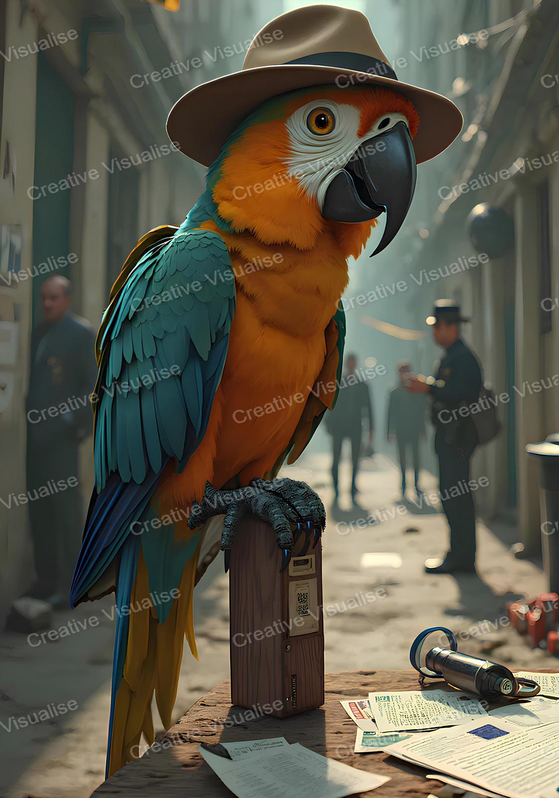 Macaw Parrot as an Inspector High-Resolution Digital Print, 11000 x 16000 Pixels 300 DPI JPEG