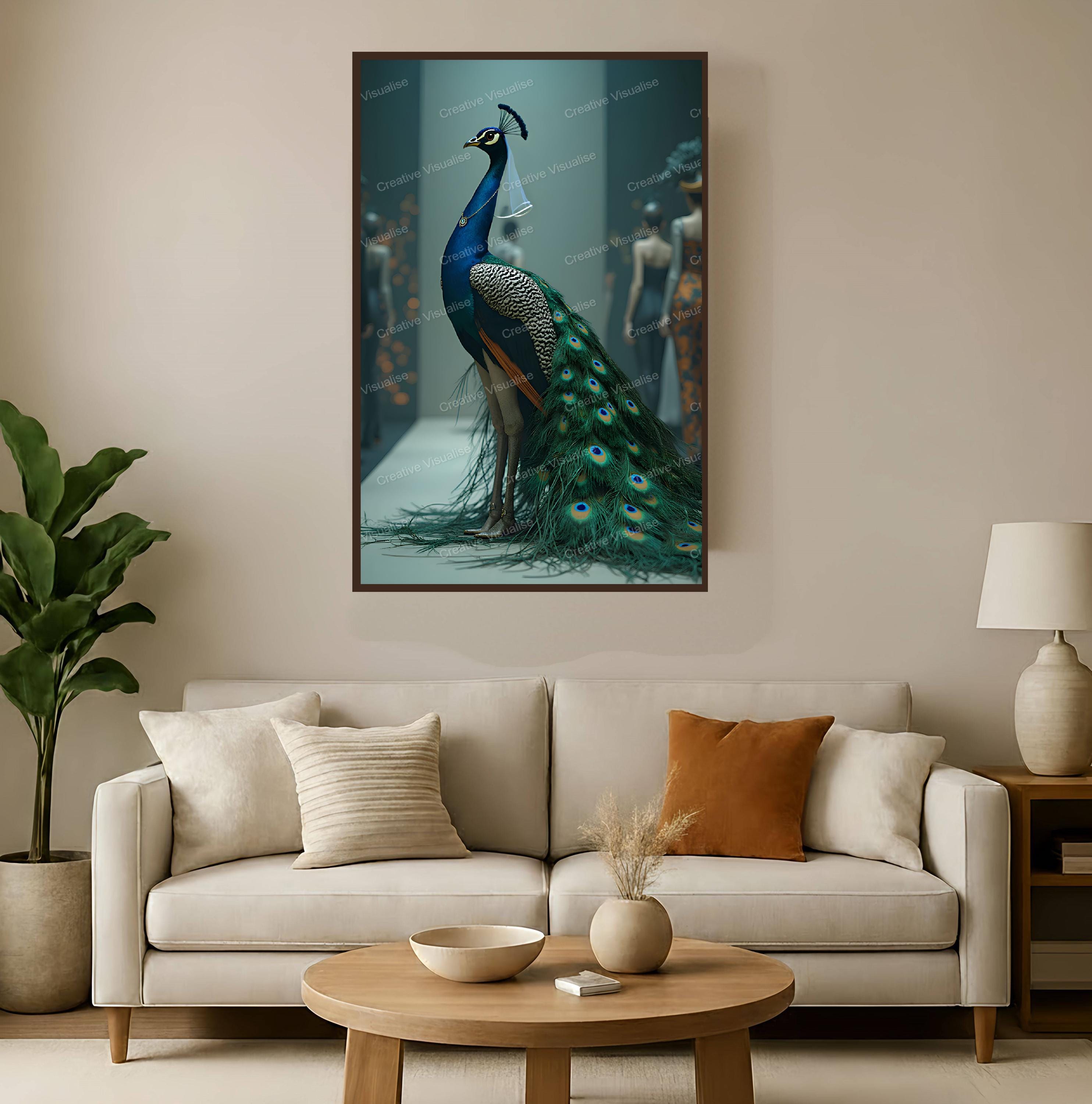 Digital photo of a peacock dress fashion model poster that can be easily downloaded and printed (not a physical item for delivery).