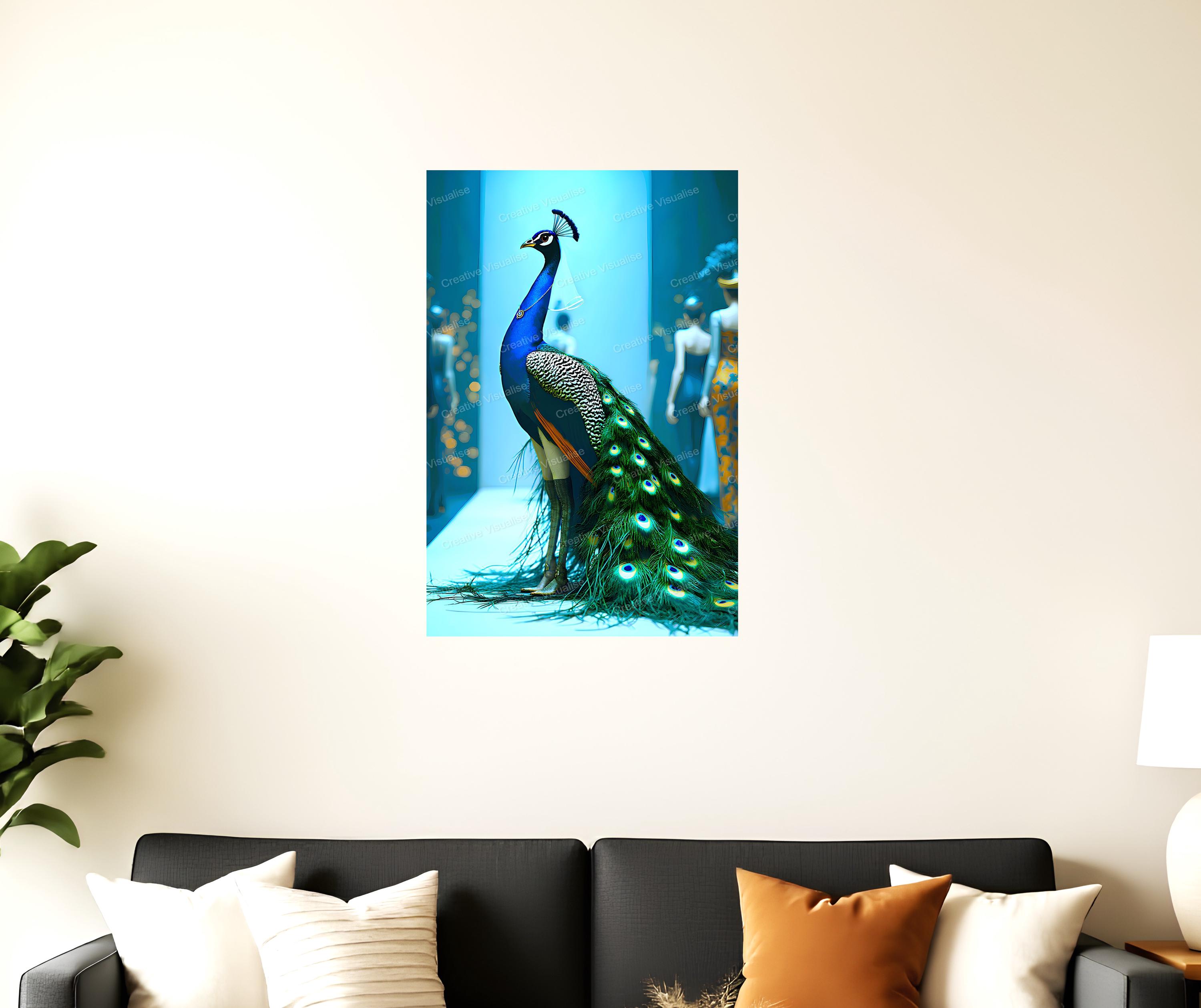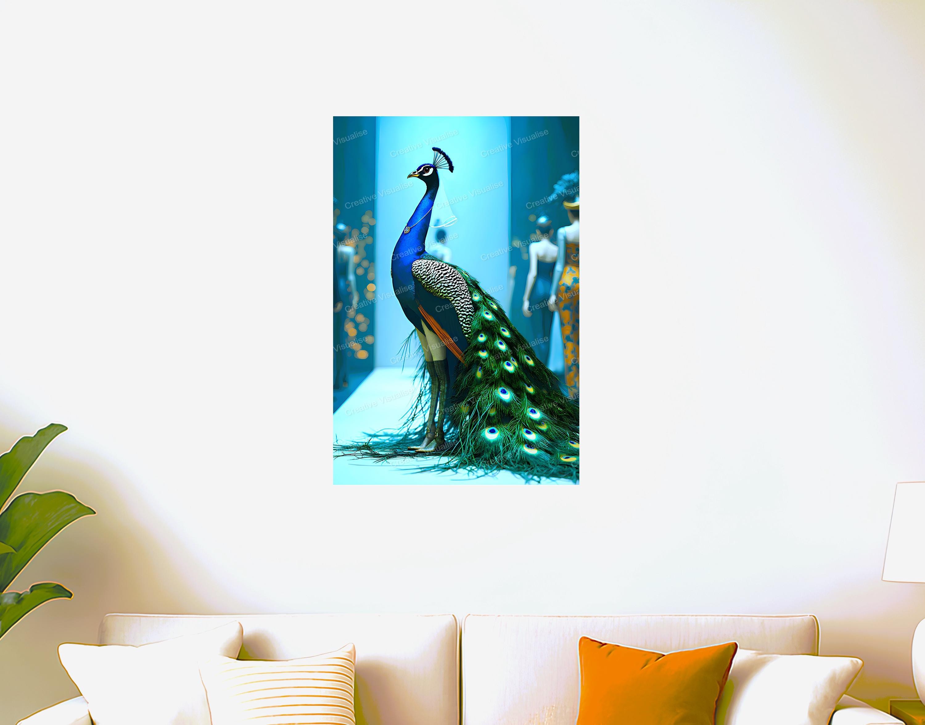 Digital photo of a peacock dress fashion model poster that can be easily downloaded and printed.