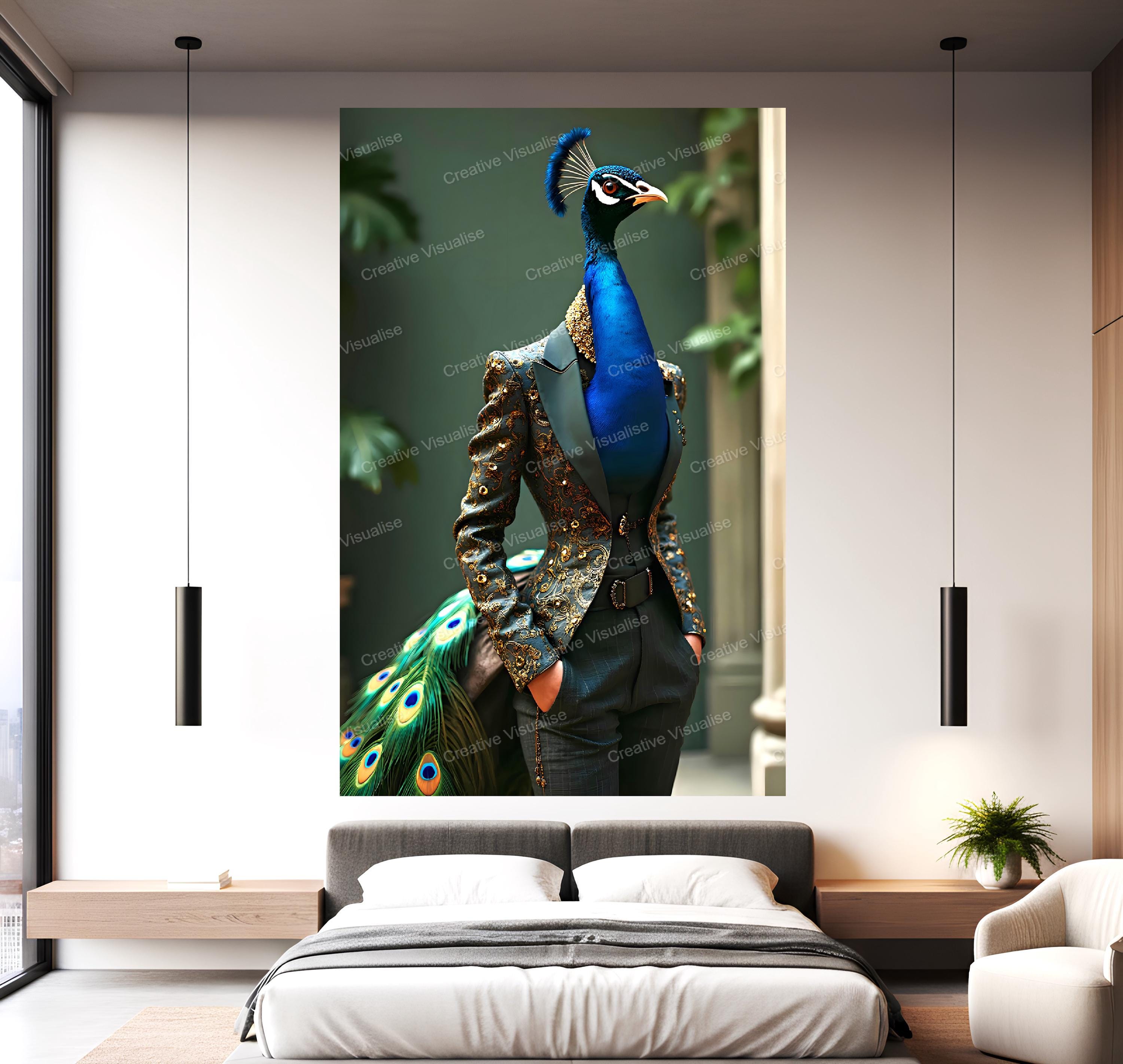 Digital photo of a peacock dress fashion model poster that can be easily downloaded and printed (not a physical item for delivery).