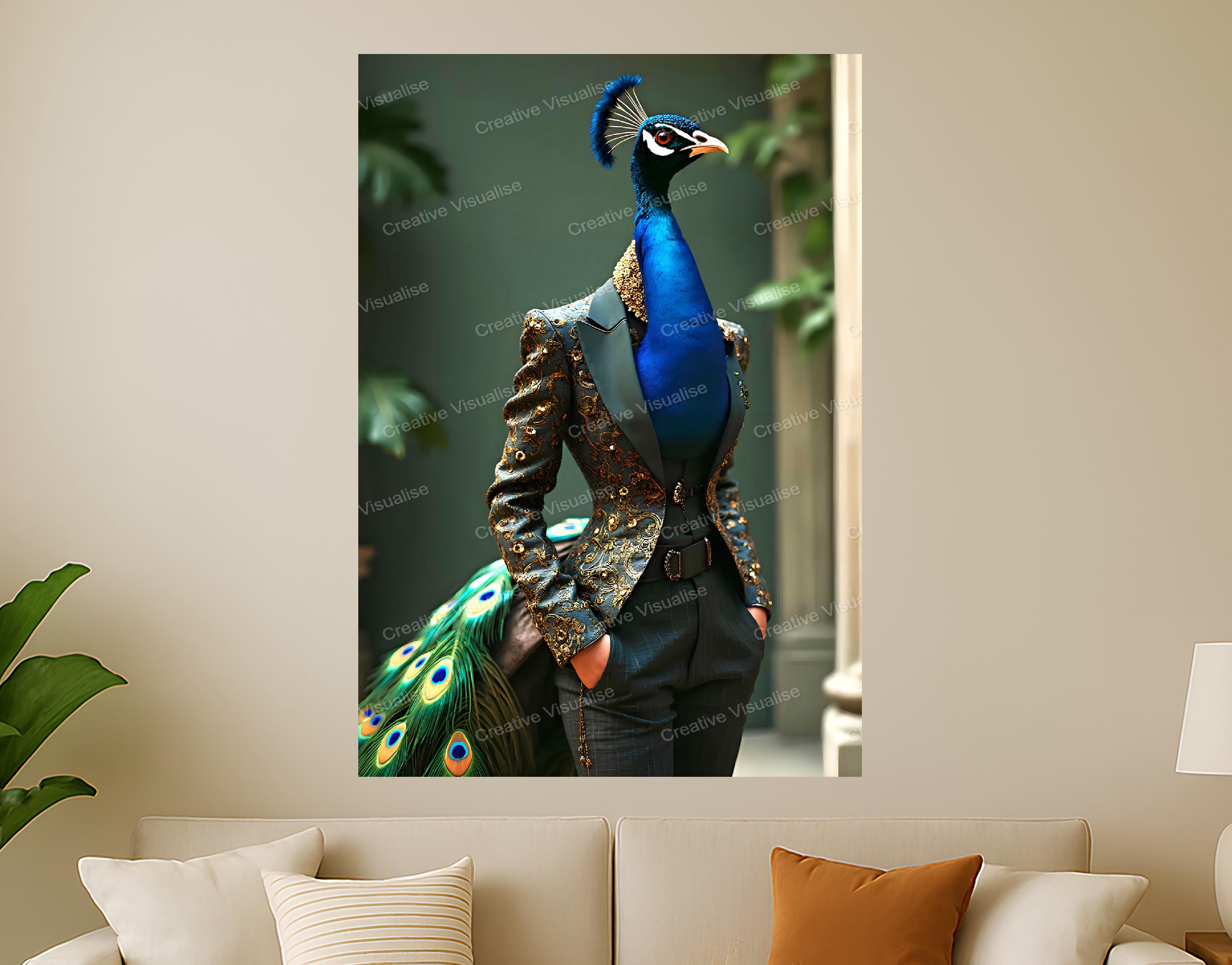 A Peacock Dress Fashion Model High-Resolution Digital Print, 11000 x 16000 Pixels 300 DPI JPEG