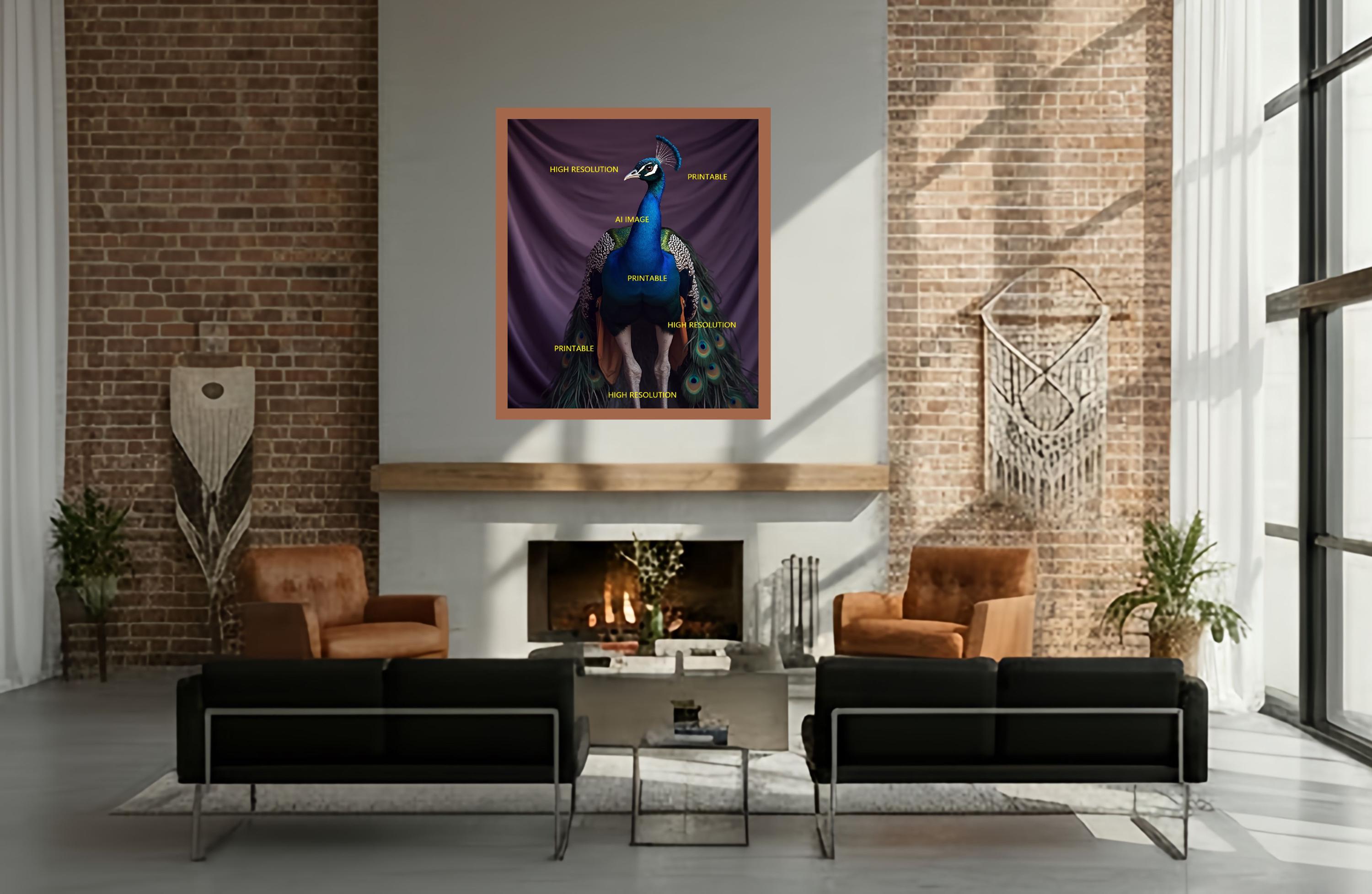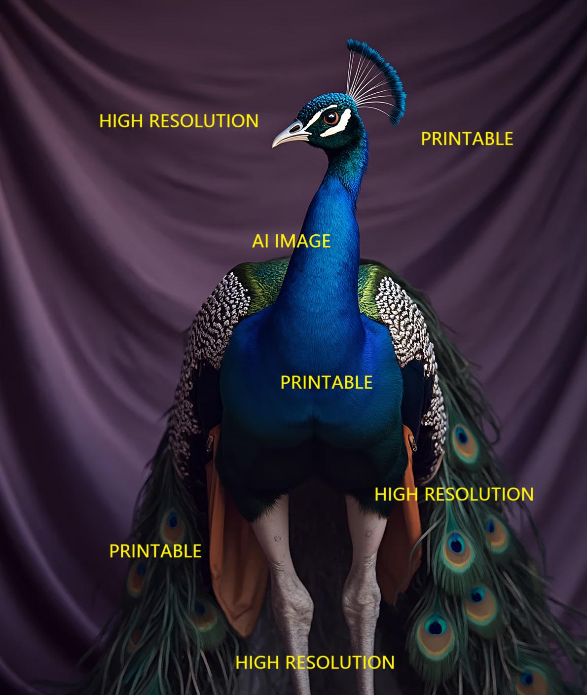 Digital photo of a peacock dress fashion model that can be easily downloaded and printed (not a physical item for delivery). The details of the digitally received image are about 5000 × 8000 pixels, 300 DPI, AI artwork, very high resolution without a watermark, and large enough for professional posters, canvas prints, and wall decor. This price is for personal use, not for commercial use!