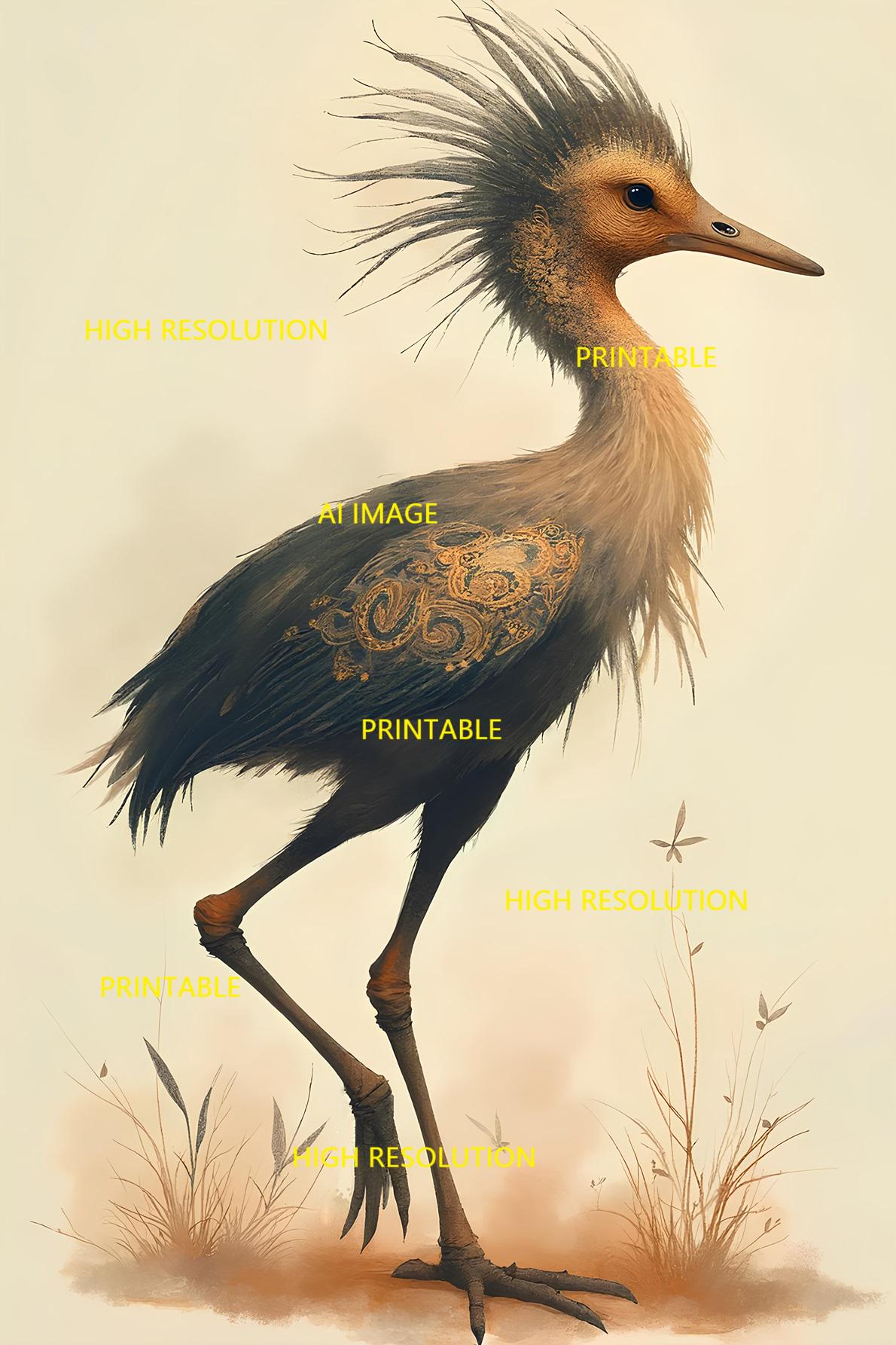 Digital photo of a cute baby stork that can be easily downloaded and printed (not a physical item for delivery). The details of the digitally received image are about 5000 × 8000 pixels, 300 DPI, AI artwork, very high resolution without a watermark, and large enough for professional posters, canvas prints, and wall decor. This price is for personal use, not for commercial use!