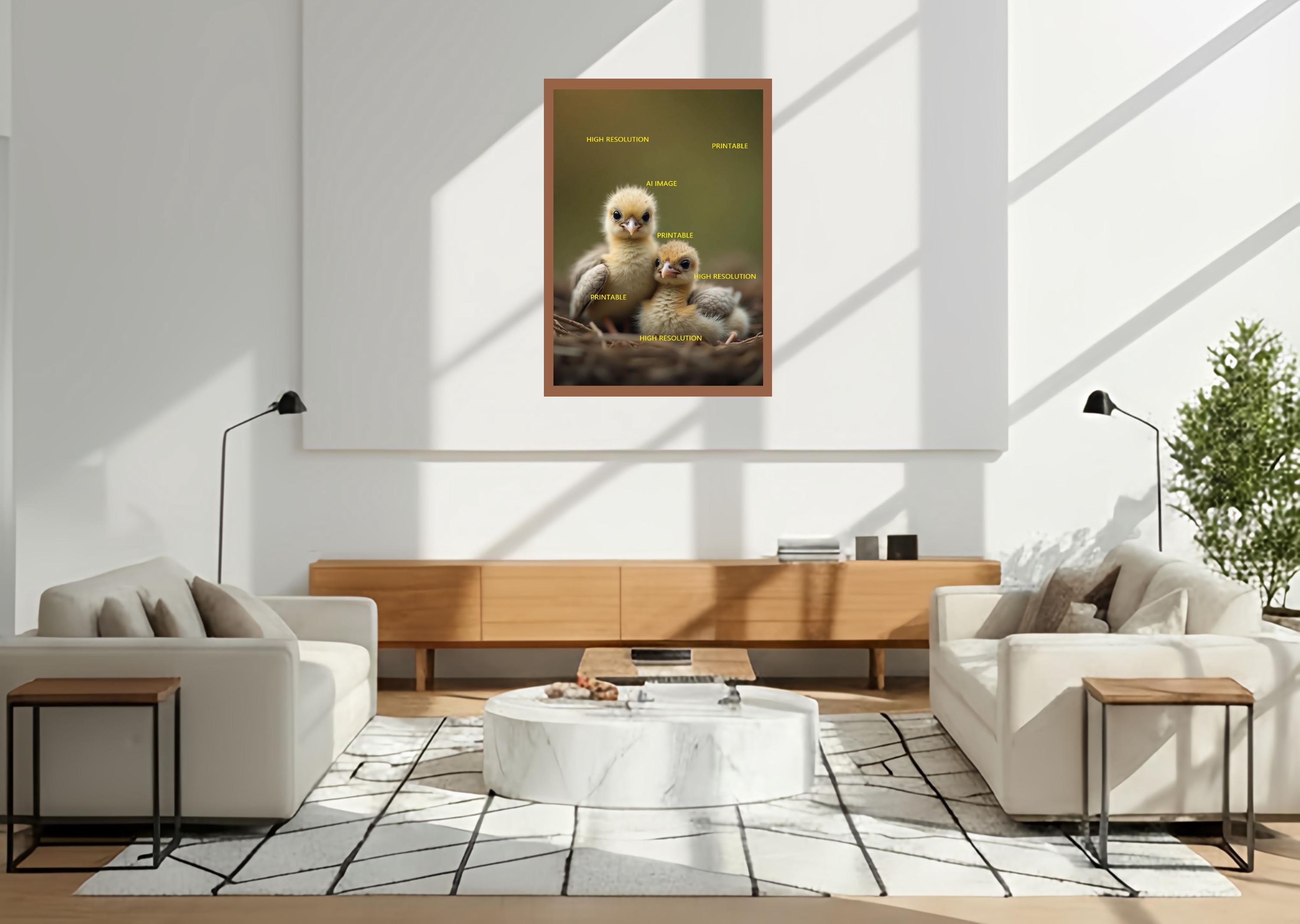Digital photo of chicks bird that can be easily downloaded and printed (not a physical item for delivery). The details of the digitally received image are about 5000 × 8000 pixels, 300 DPI, AI artwork, very high resolution without a watermark, and large enough for professional posters, canvas prints, and wall decor. This price is for personal use, not for commercial use!