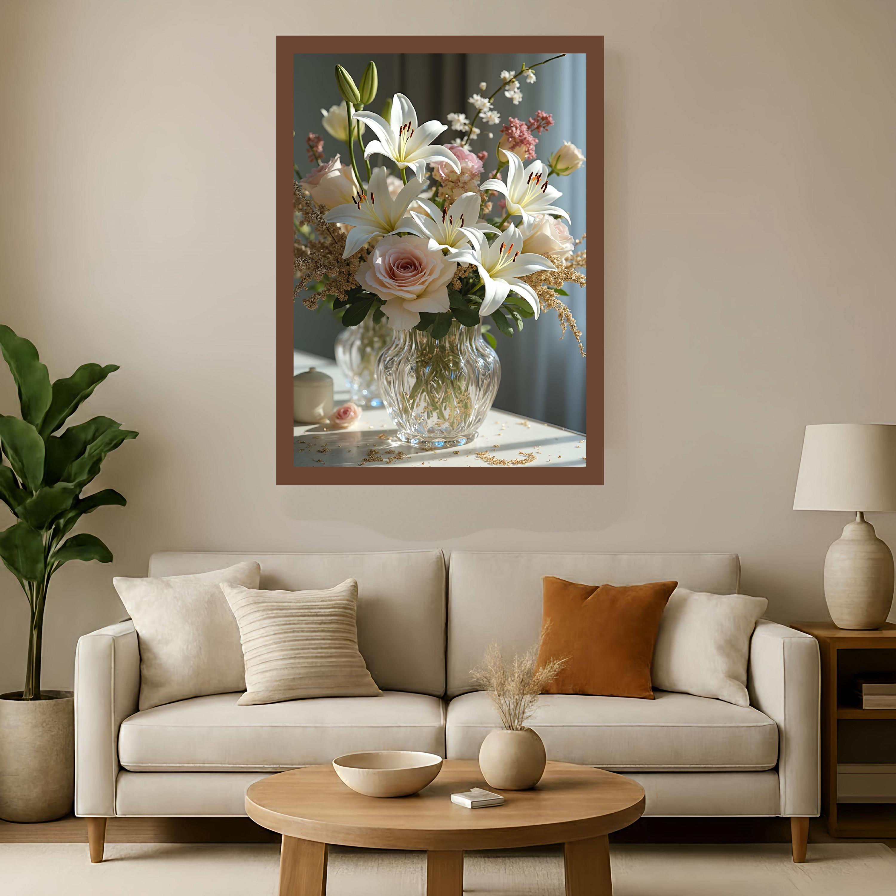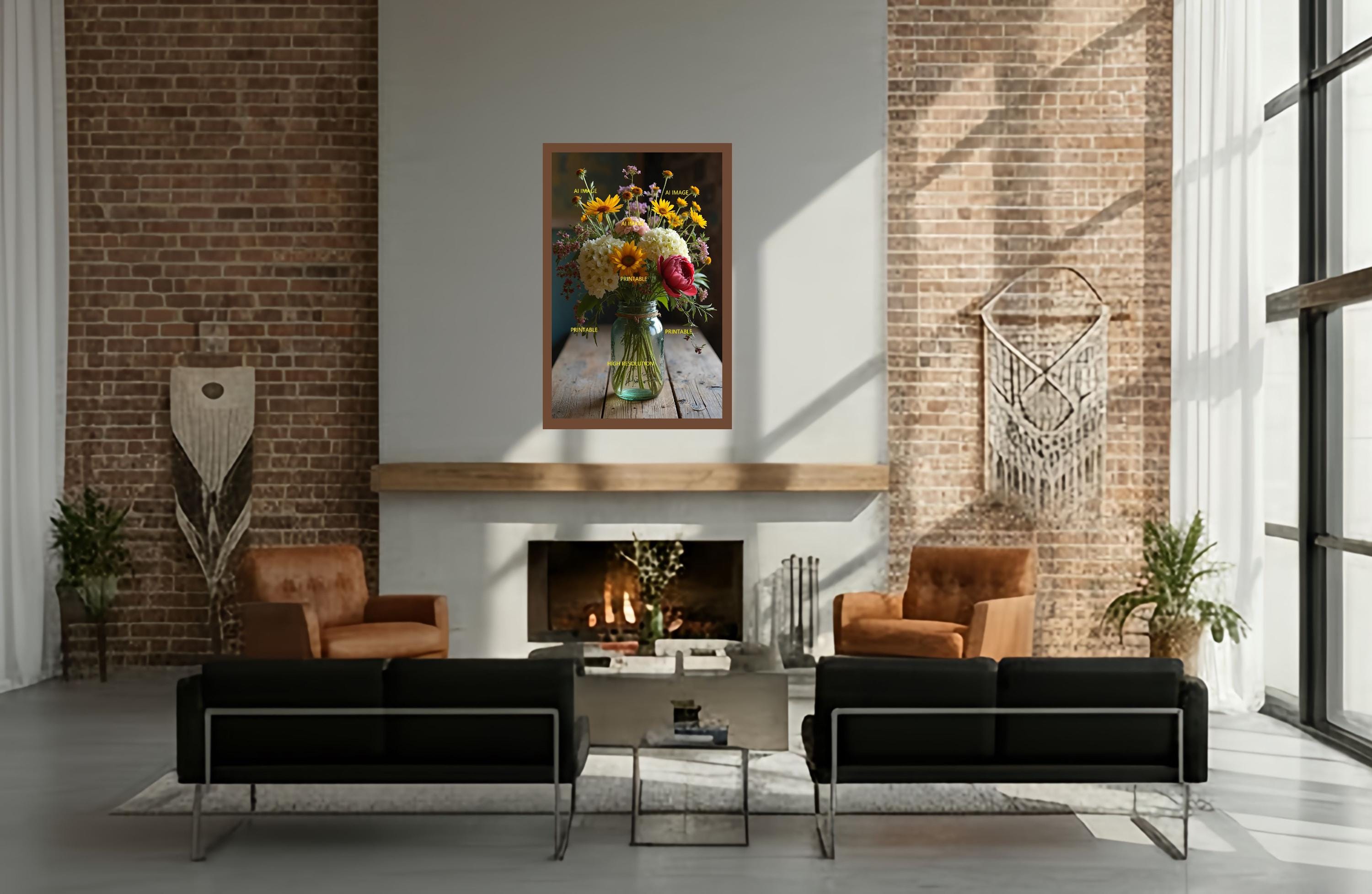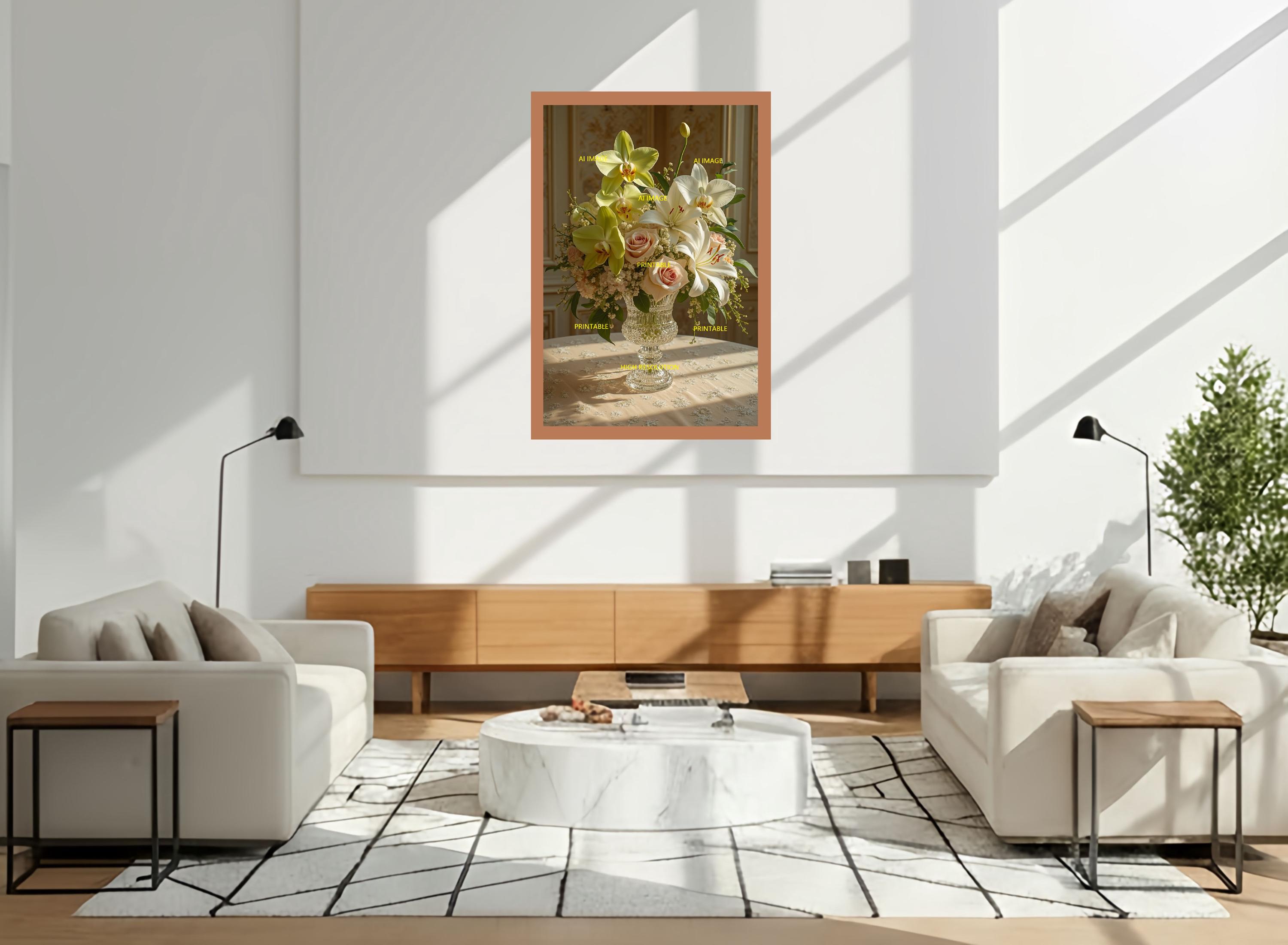 5 digital photos of a bouquet of flowers in a glass jar that can be easily downloaded and printed (not a physical item for delivery). The details of the digitally received images are about 5000 × 8000 pixels, 300 DPI, AI artwork, very high resolution without a watermark, and large enough for professional posters, canvas prints, and wall decor. This price is for personal use, not for commercial use!