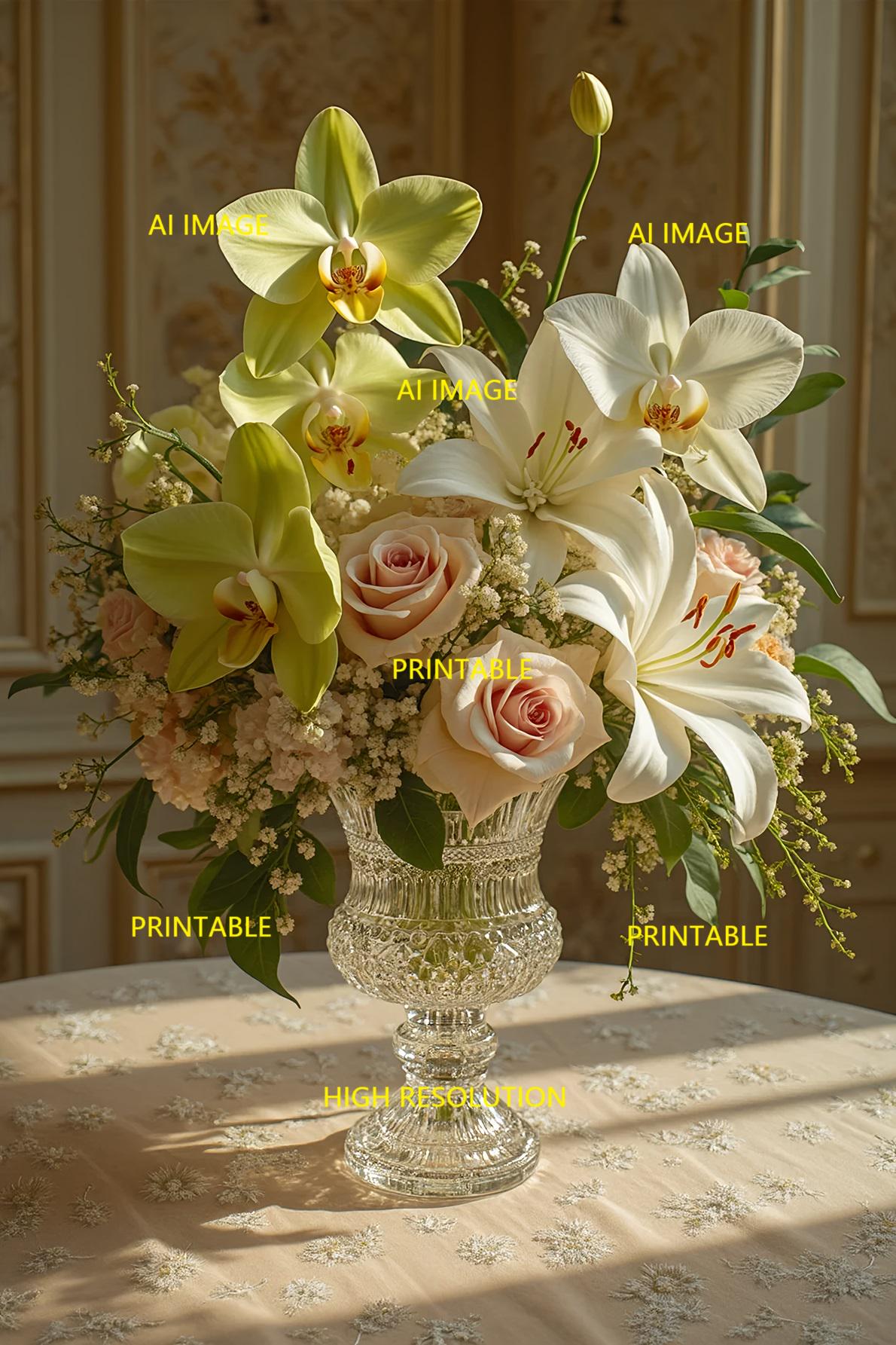 A digital photo of a bouquet of flowers in a glass jar that can be easily downloaded and printed (no physical item for delivery). The details of the digitally received image are about 5000 × 8000 pixels, 300 DPI, AI artwork, very high resolution without a watermark, and large enough for professional posters, canvas prints, and wall decor. This price is for personal use, not for commercial use!