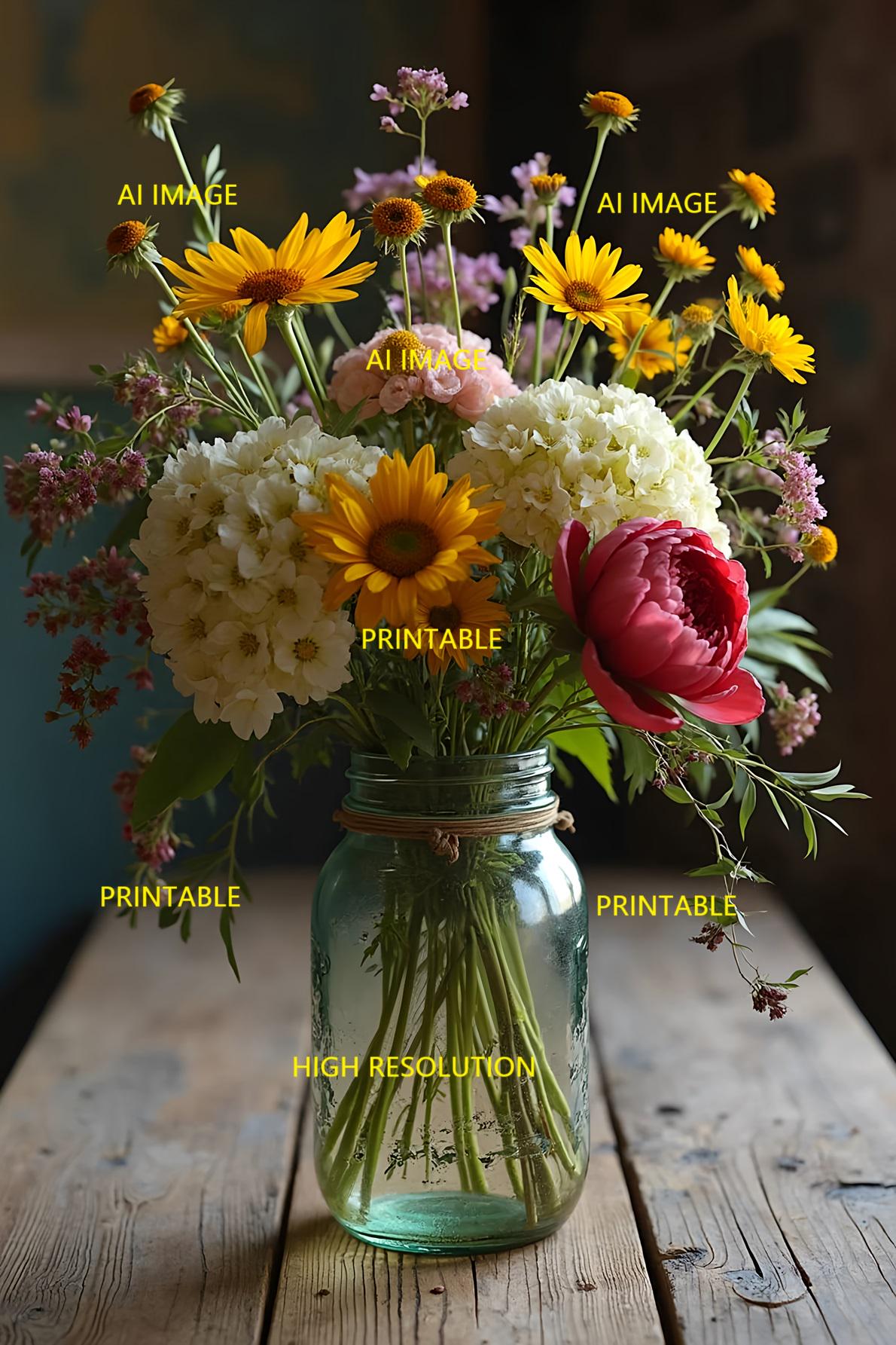 A digital photo of a bouquet of flowers in a glass jar that can be easily downloaded and printed (no physical item for delivery).