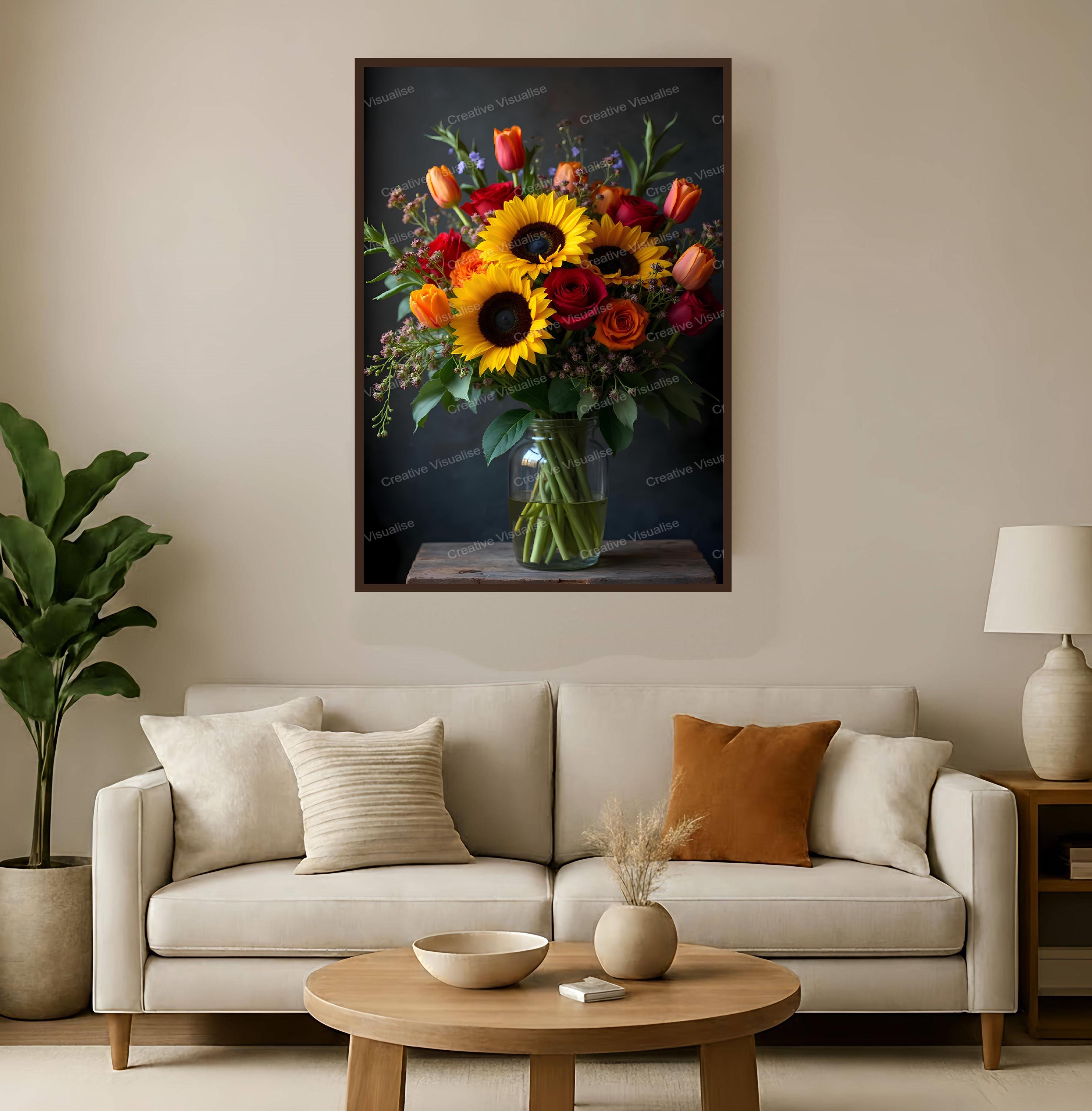 A Digital High-Resolution Download of Bouquet of Flowers in a Glass Jar